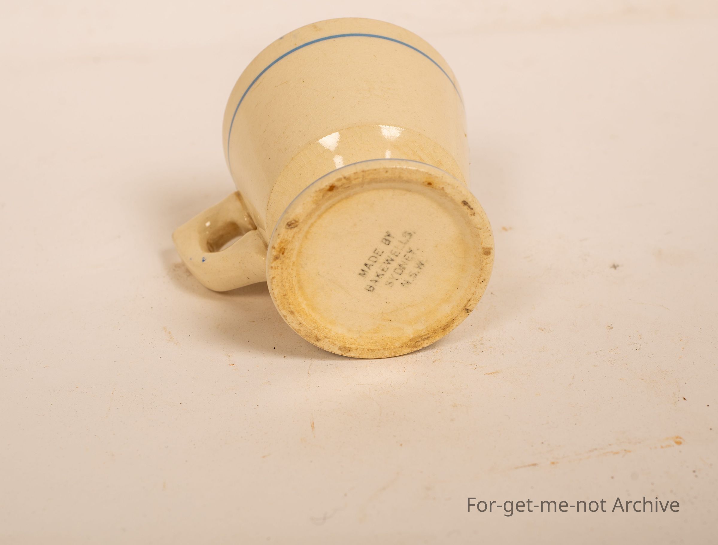 Is a ceramic cup. Advertising Bonnox is better. Very good condition. Made by Bakewell Sydney.