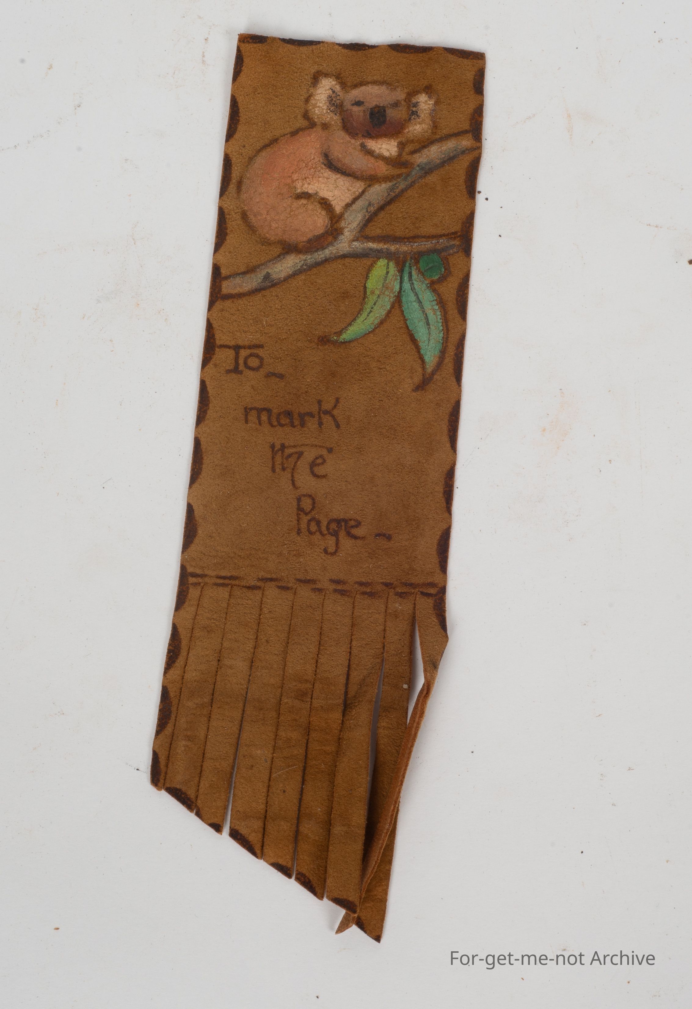 Leather Book Mark, pokerwork/ paint featuring Koala