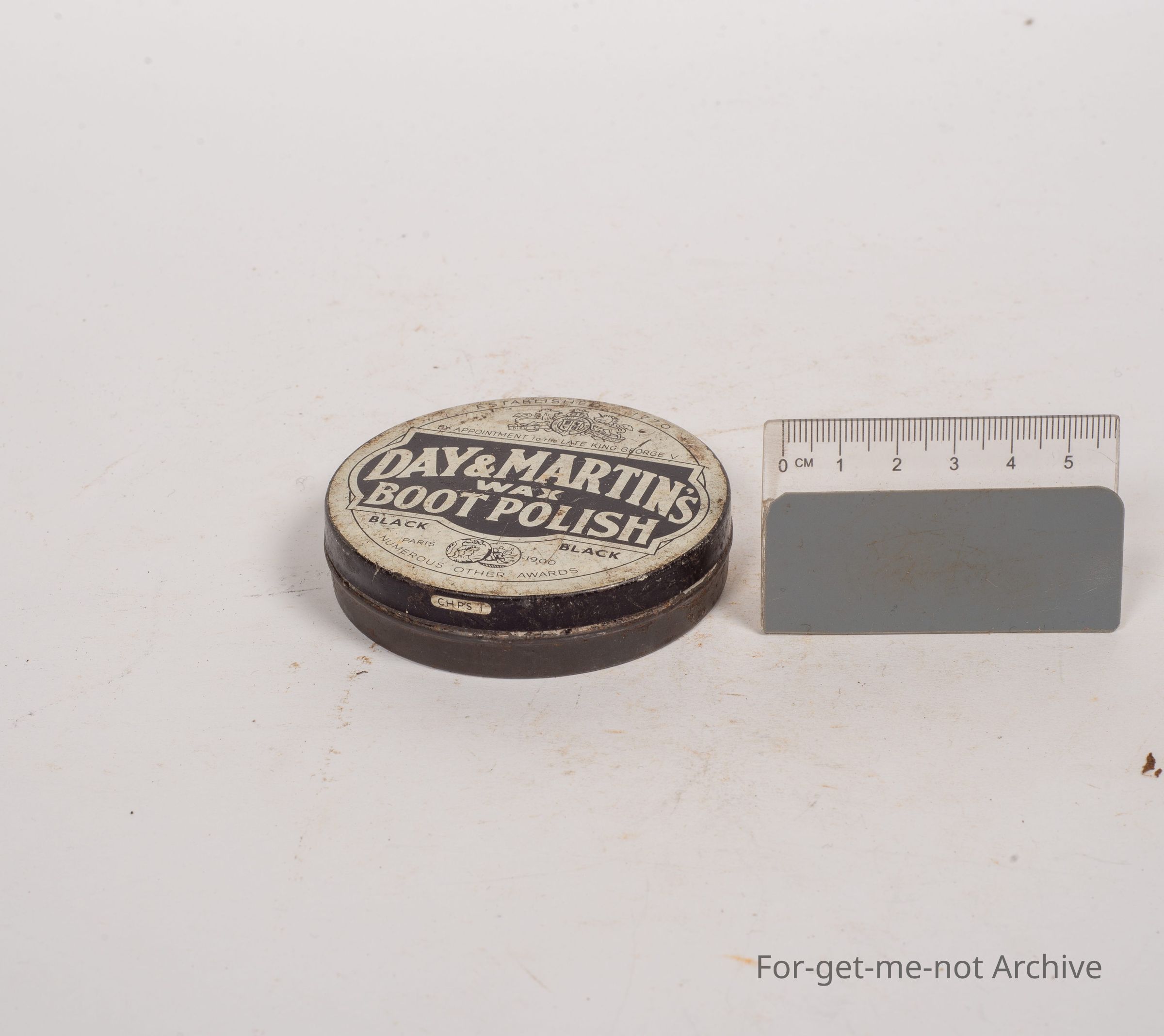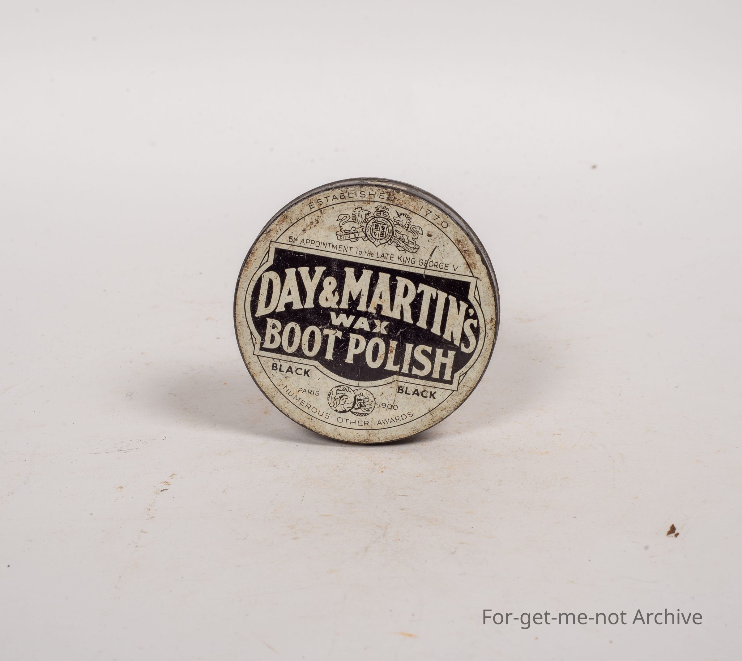 Boot polish tin, Day and Martin's wax boot polish, black.
