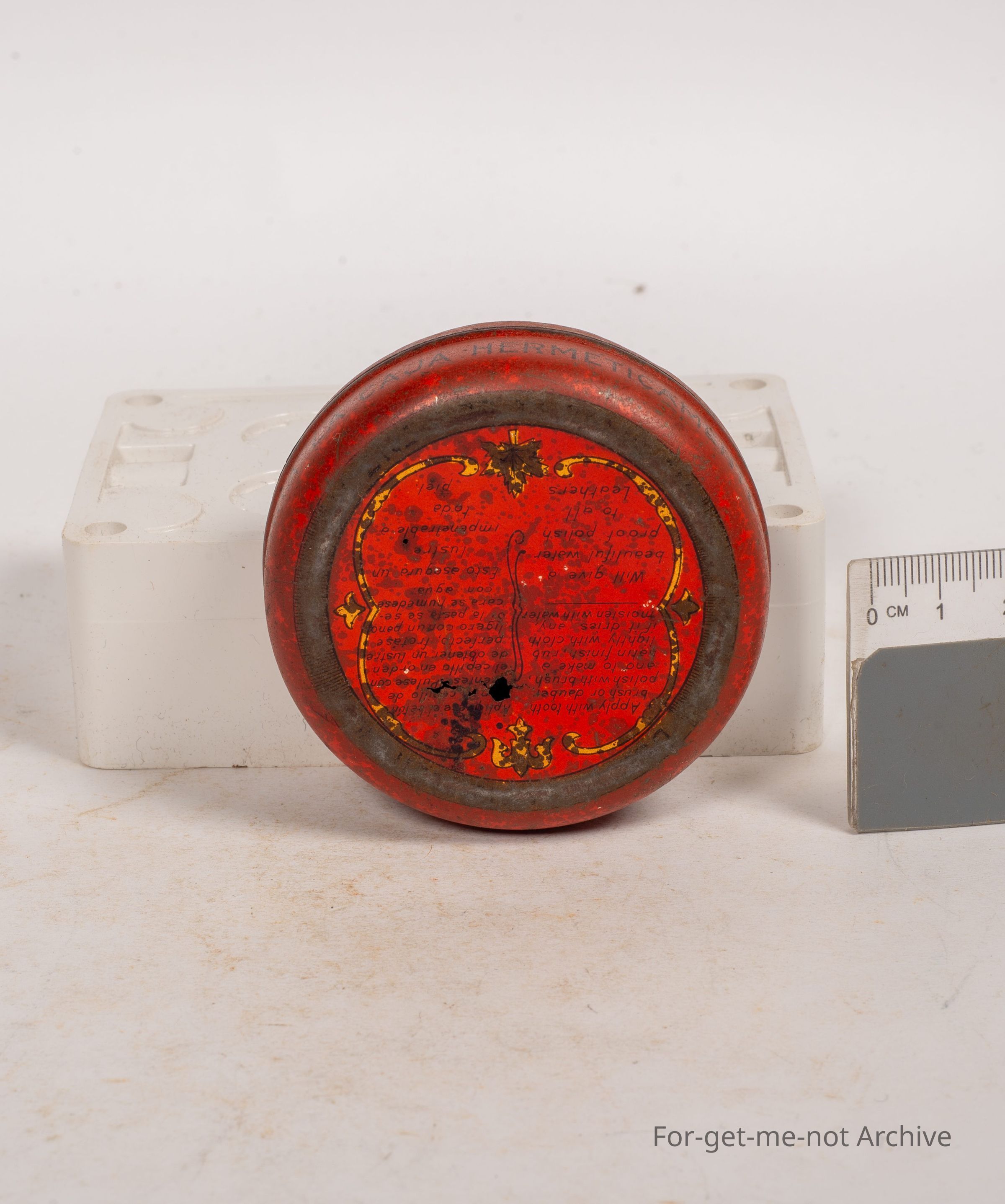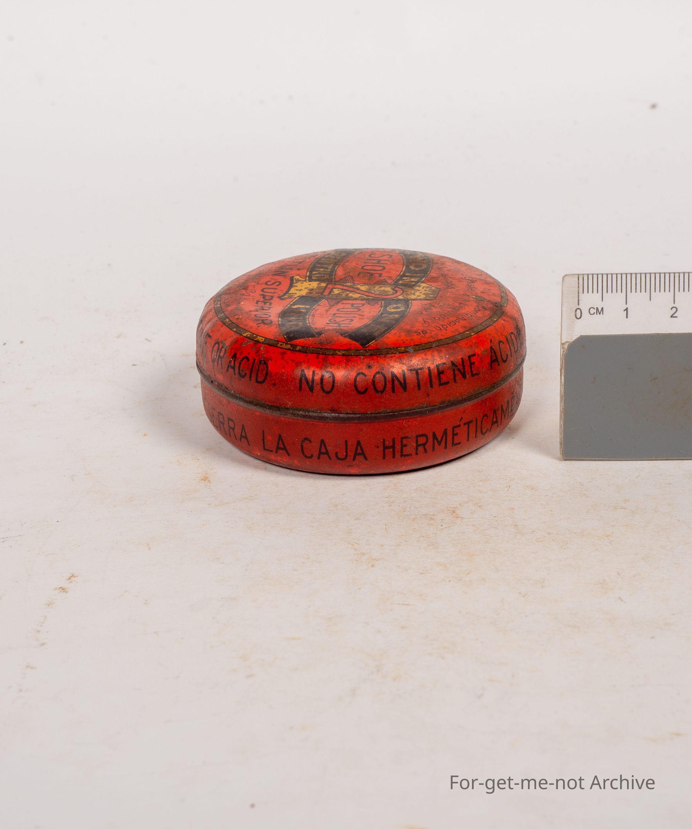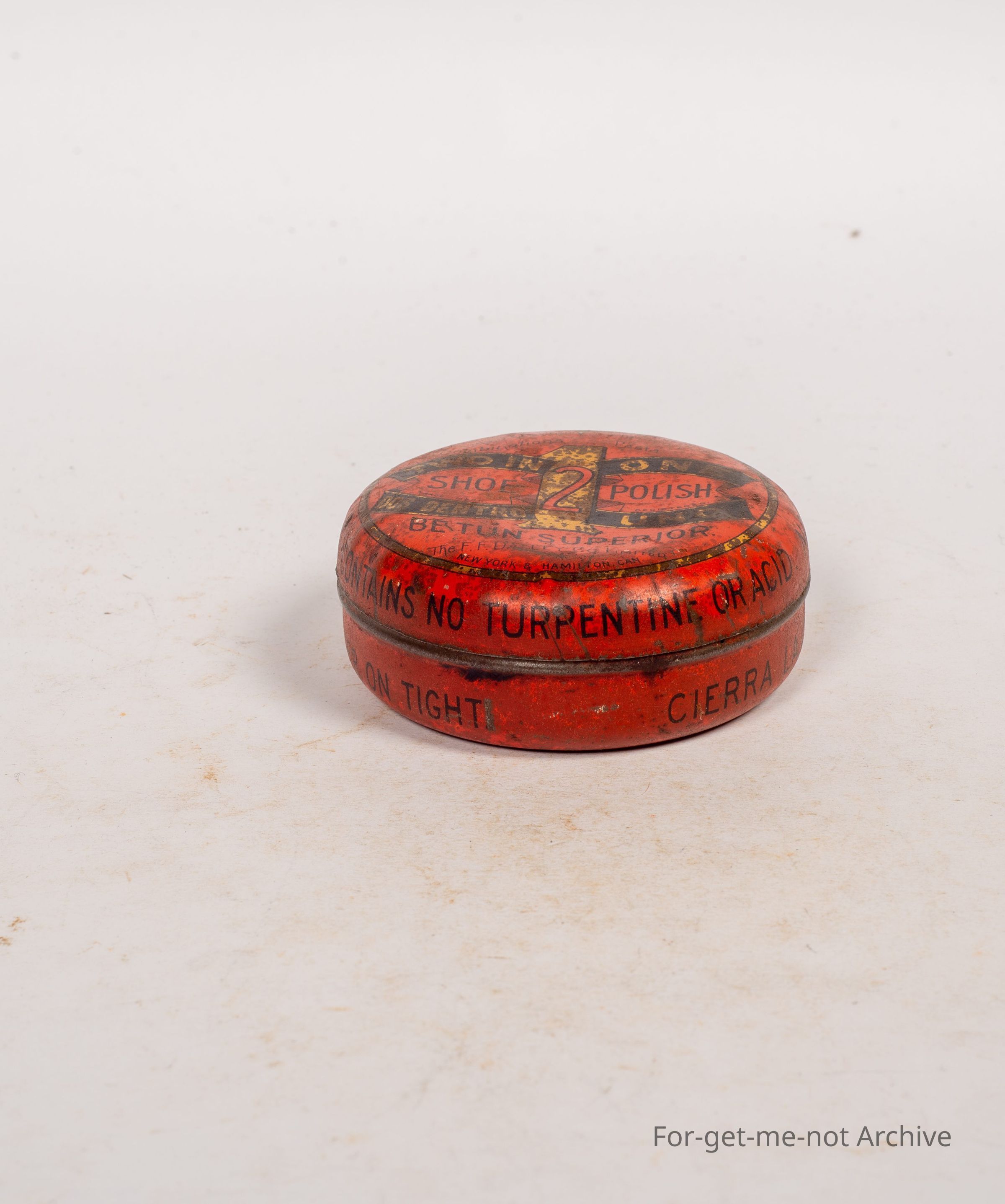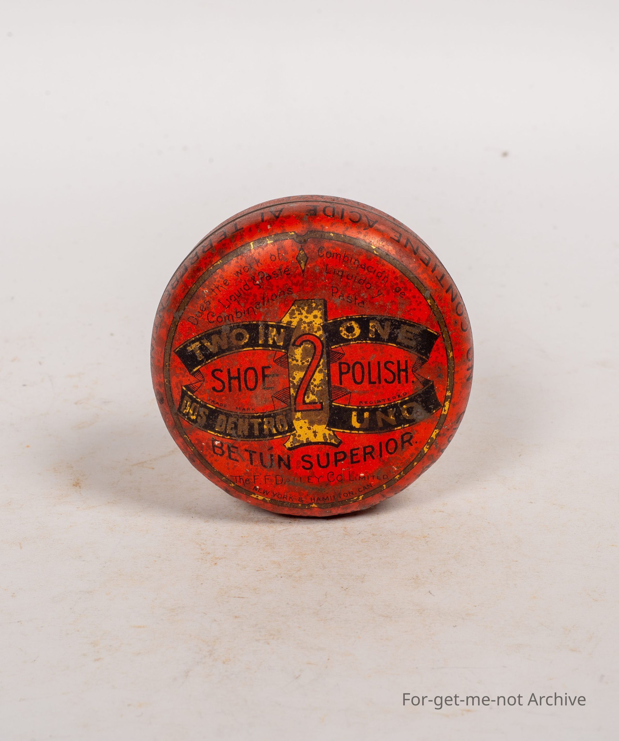 A boot polish tin. Two in One shoe polish , Dos dentro uno, The FF Daley Co. New York
