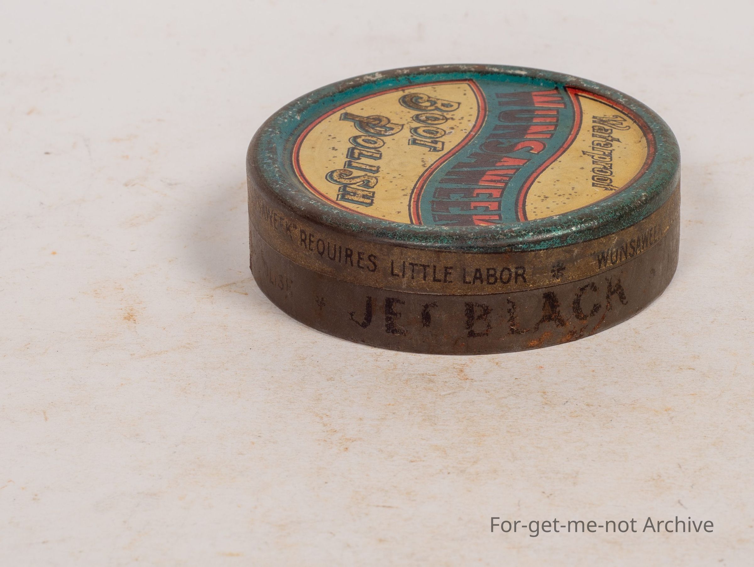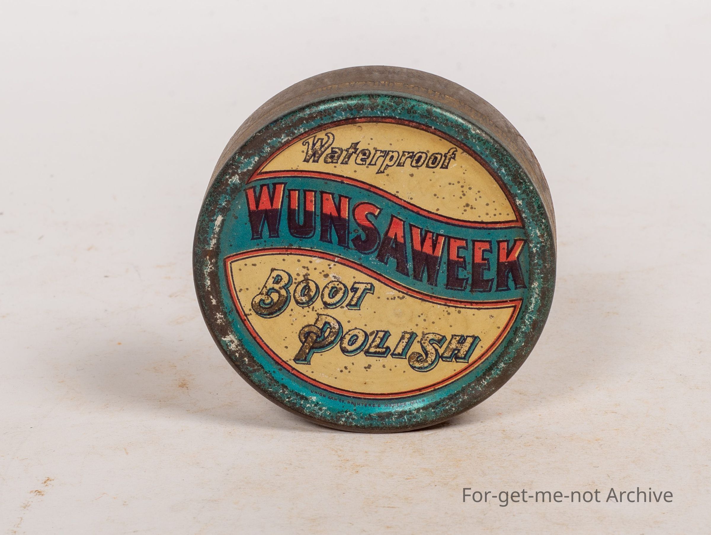 Boot polish tin, Waterproof. Wunsaweek. Boot polish. This would be an Australian tin, very hard to find, in pretty reasonable 85% condition.