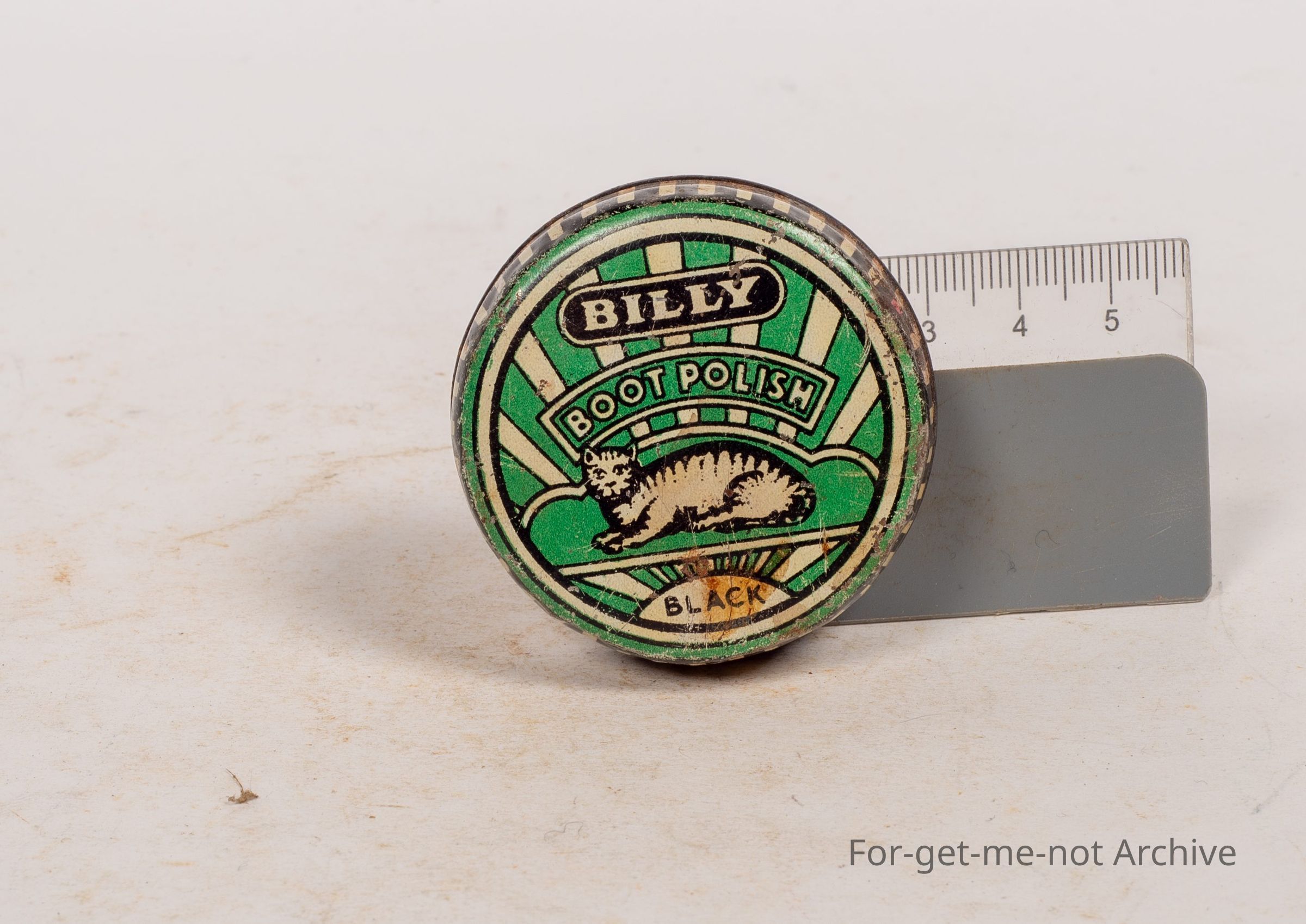 Boot polish tin, this is only a small tin called Billy, boot polish image of a cat. Nice graphics. Country of origin not mentioned.