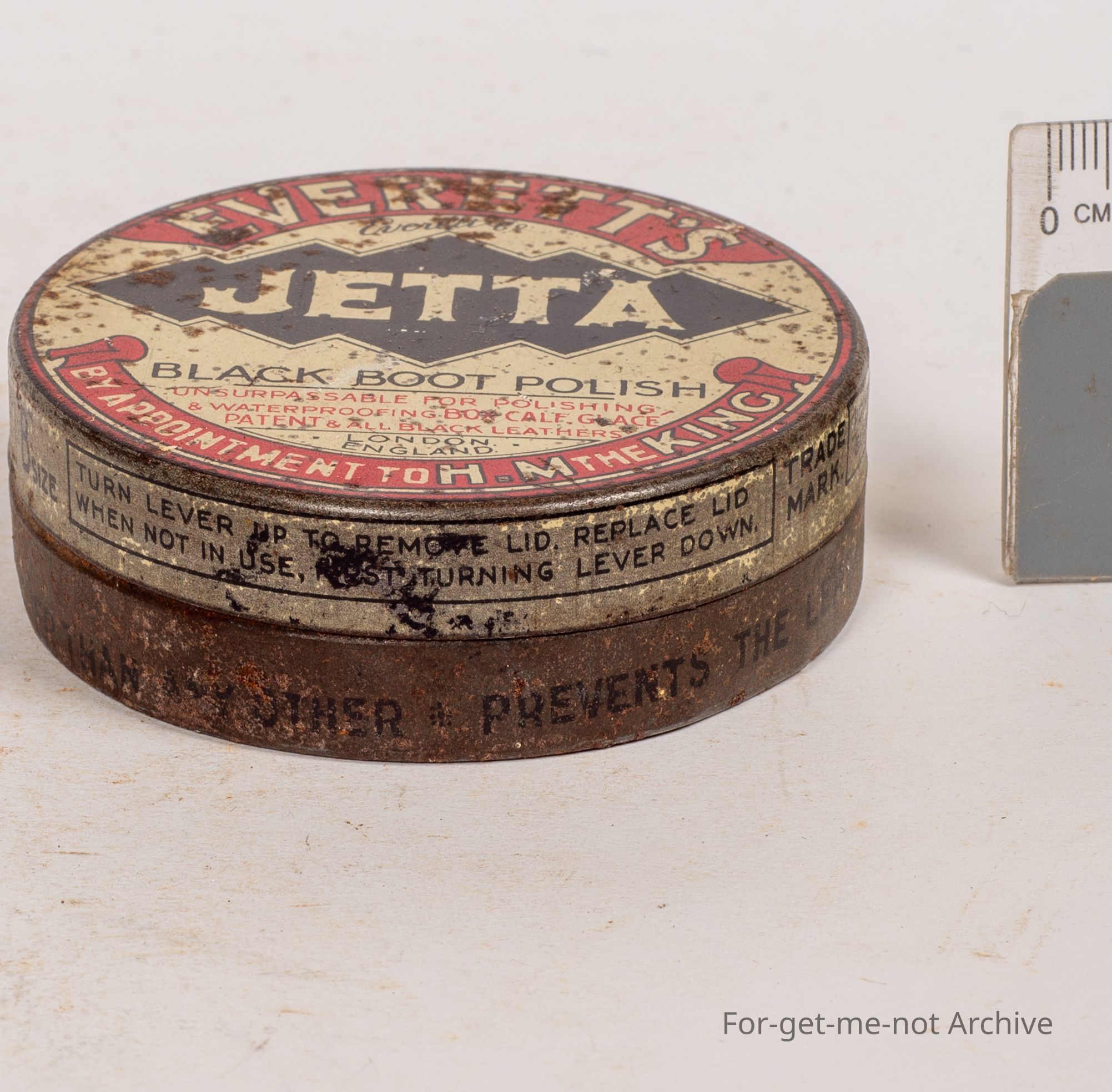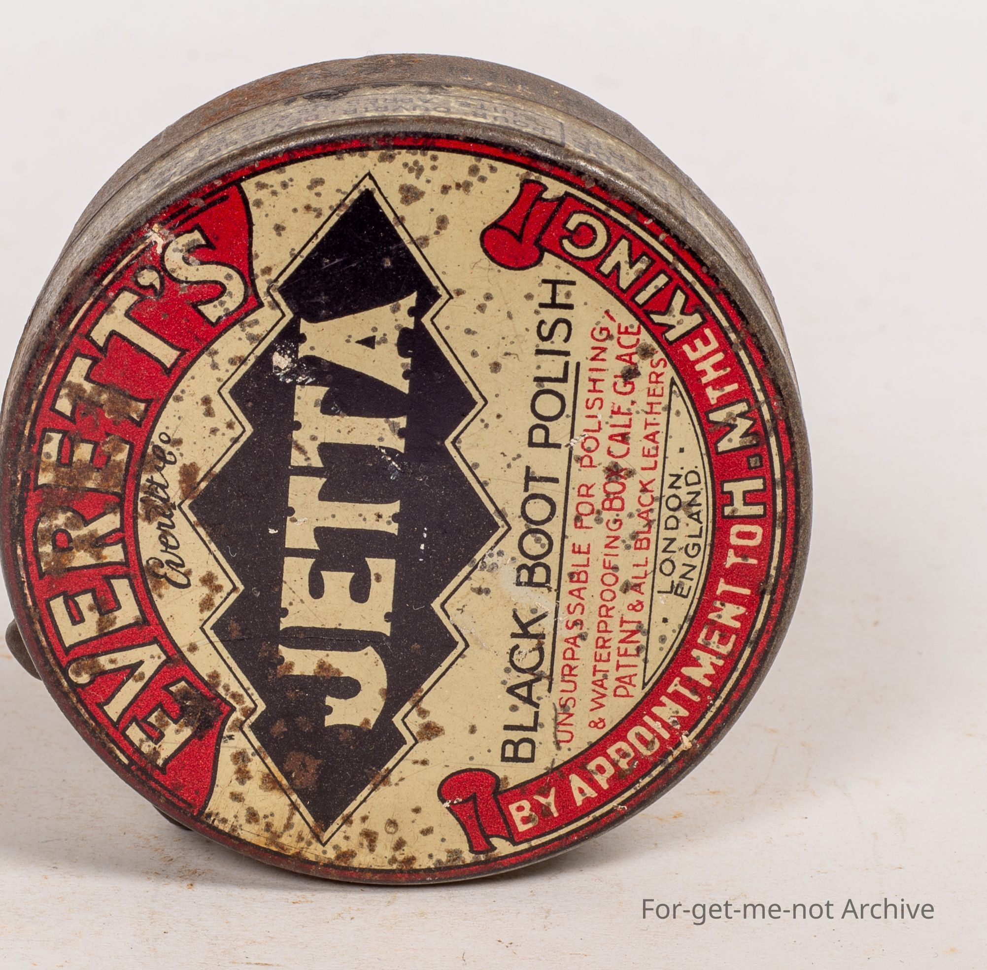 Boot polish tin. Everett's. Jetter, black boot polish by appointment to the King.
