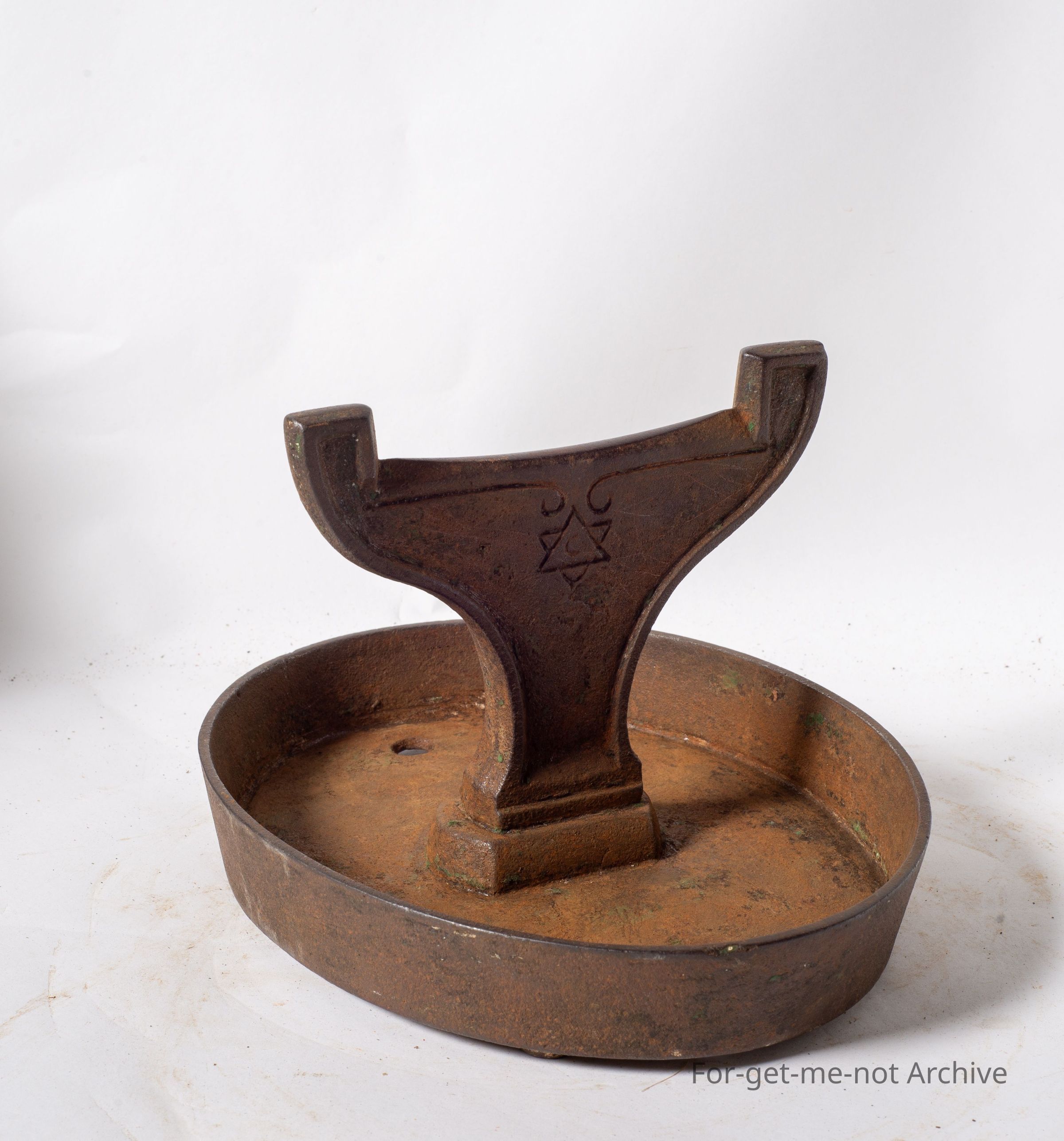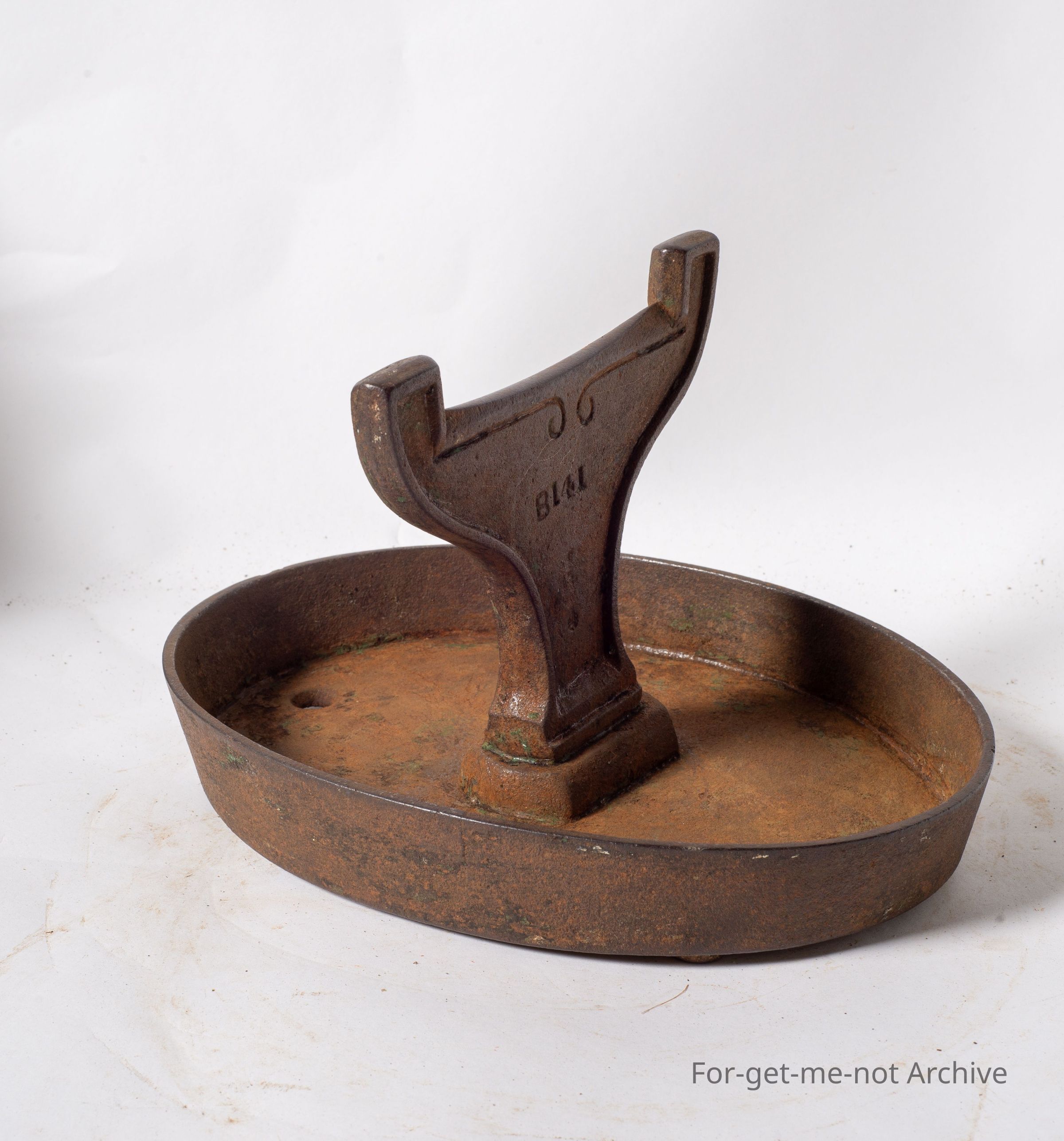 This is an oval shaped dish with a boot scraper protruding from the centre. The stamping on the back is very interesting, as it is a star within a circle and A C, which is the first registered British trade symbol for Thomas Clark. So this is a piece of cast ironware from ClarkCollection