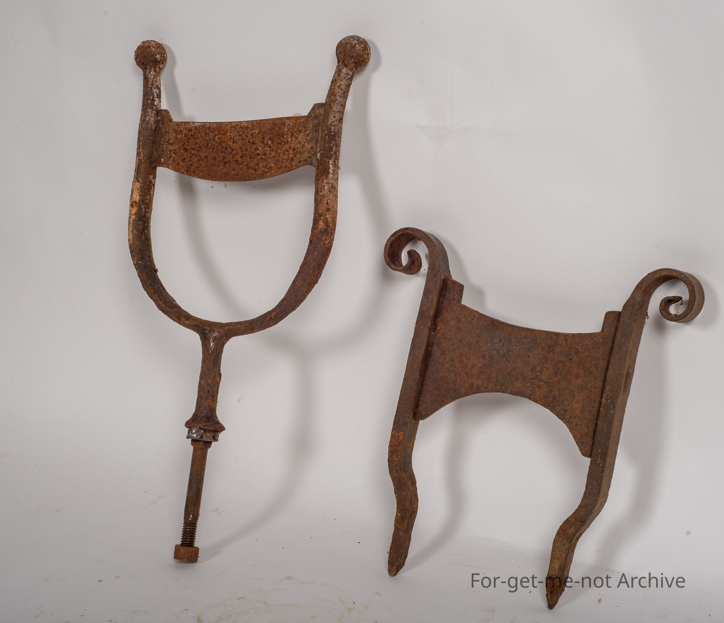 These are wonderful, blacksmith made boot scrapers. These would have been put into either a piece of stone or a large piece of wood at the back door of a house to clean your boots before coming in. One of these, originated from the front door of the, Kalgoorlie Town Hall.Collection