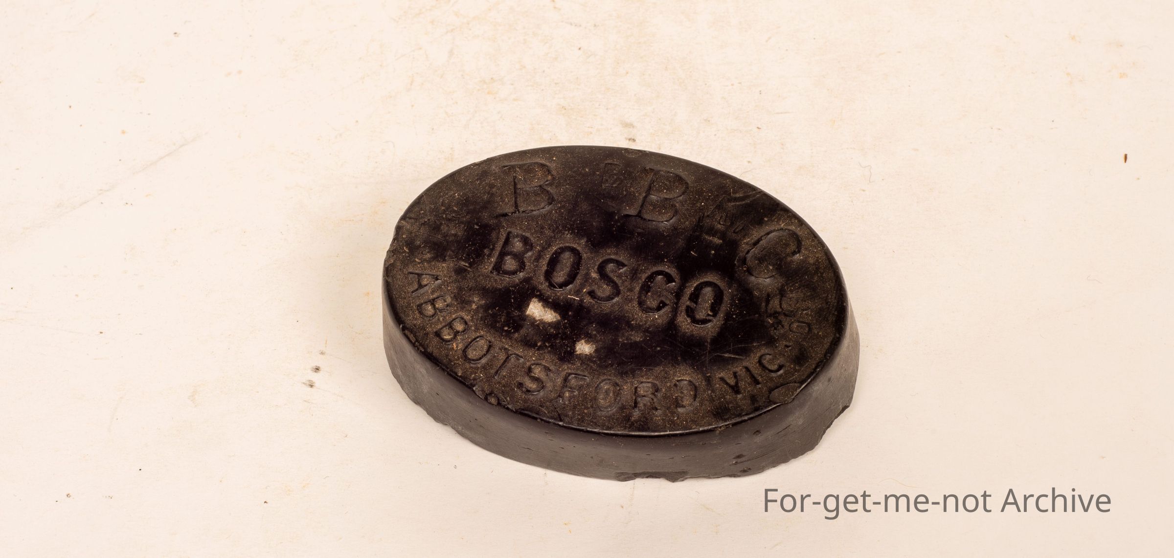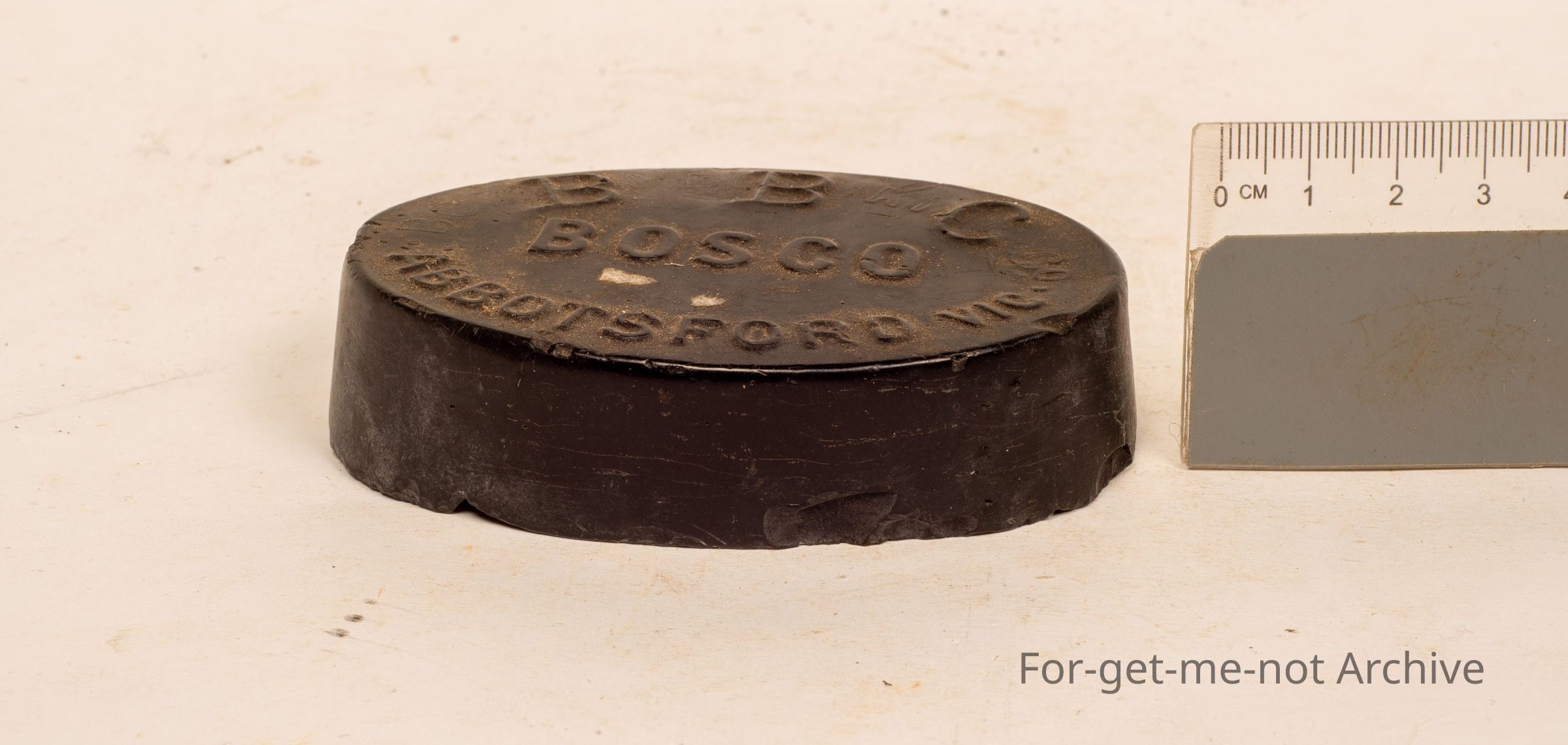 This is a cake of Bosco blacking Bosco blacking, probably made for stencils from Abbotsford, Victoria.