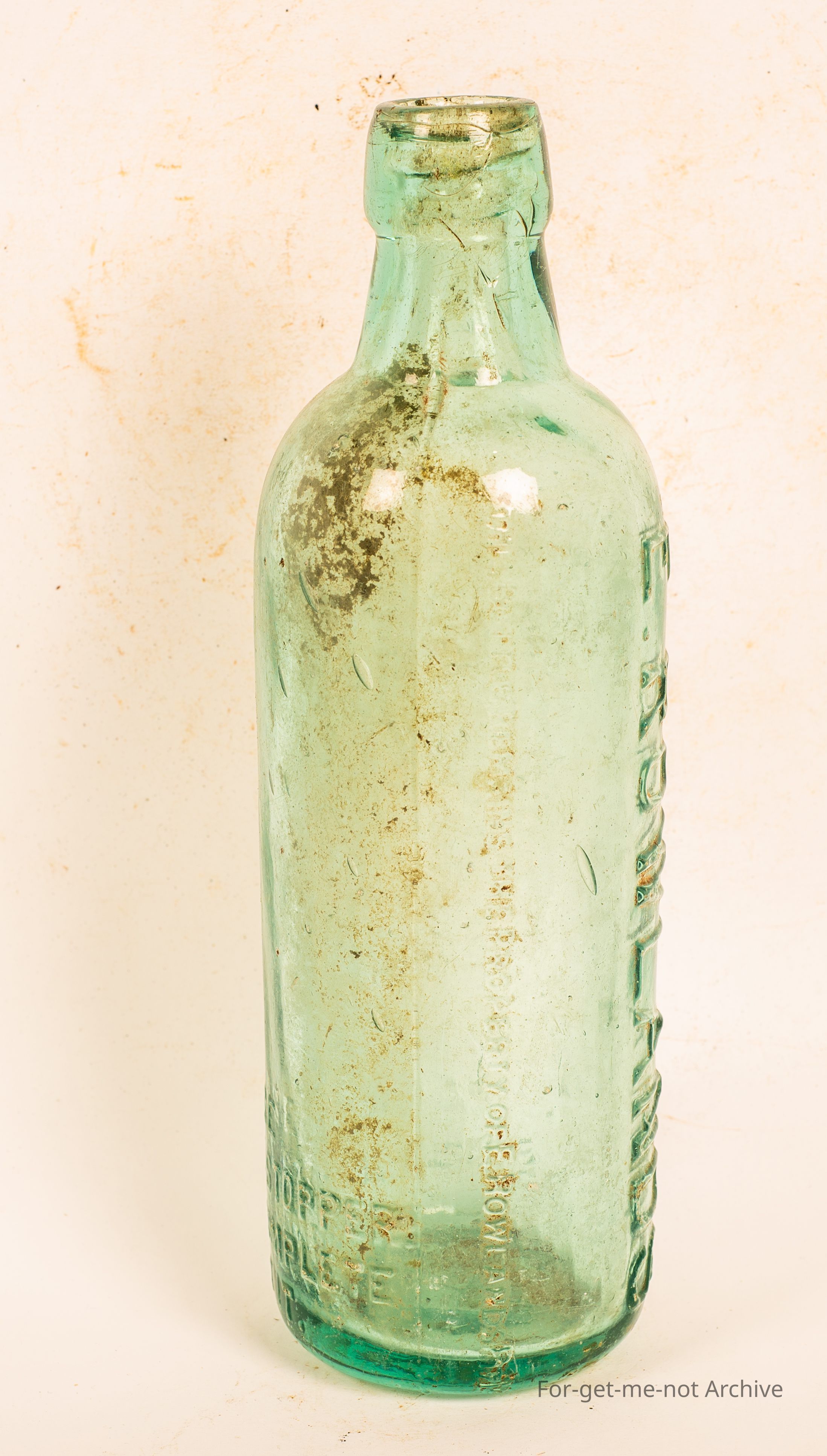 An early screw in top, large bottle 26 ounce just with E Rowlands, glass with bubbles. Probably quite old.