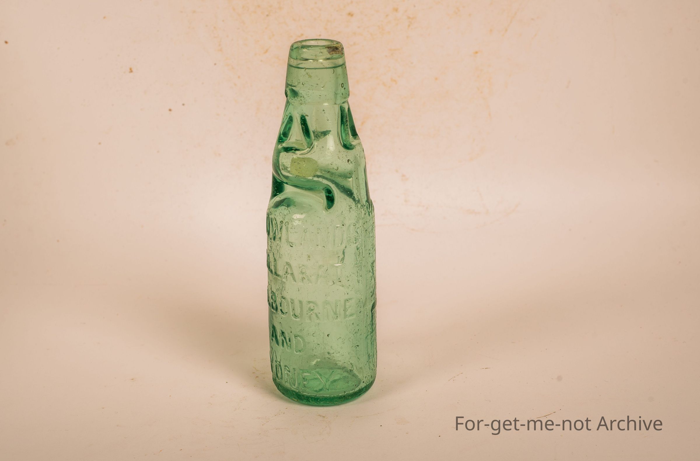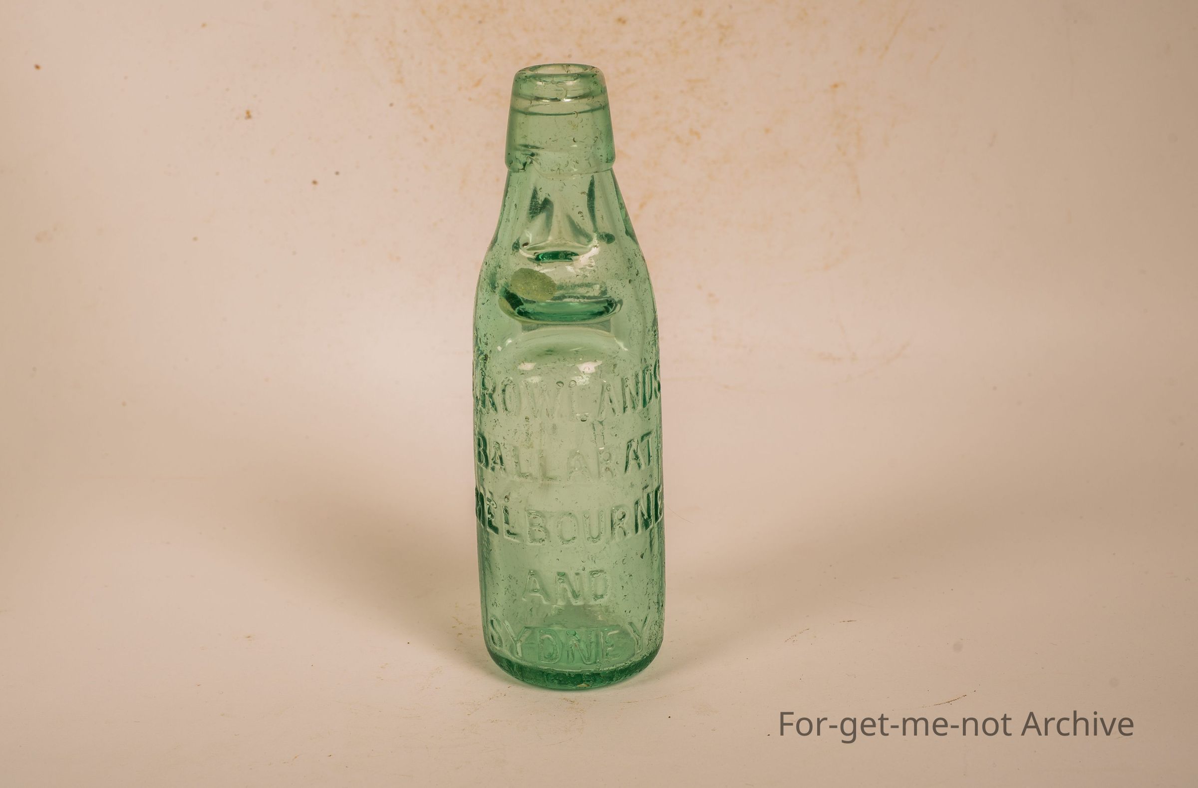 Glass bottle from Rowlands, Ballarat, Melbourne and Sydney. Alley bottle