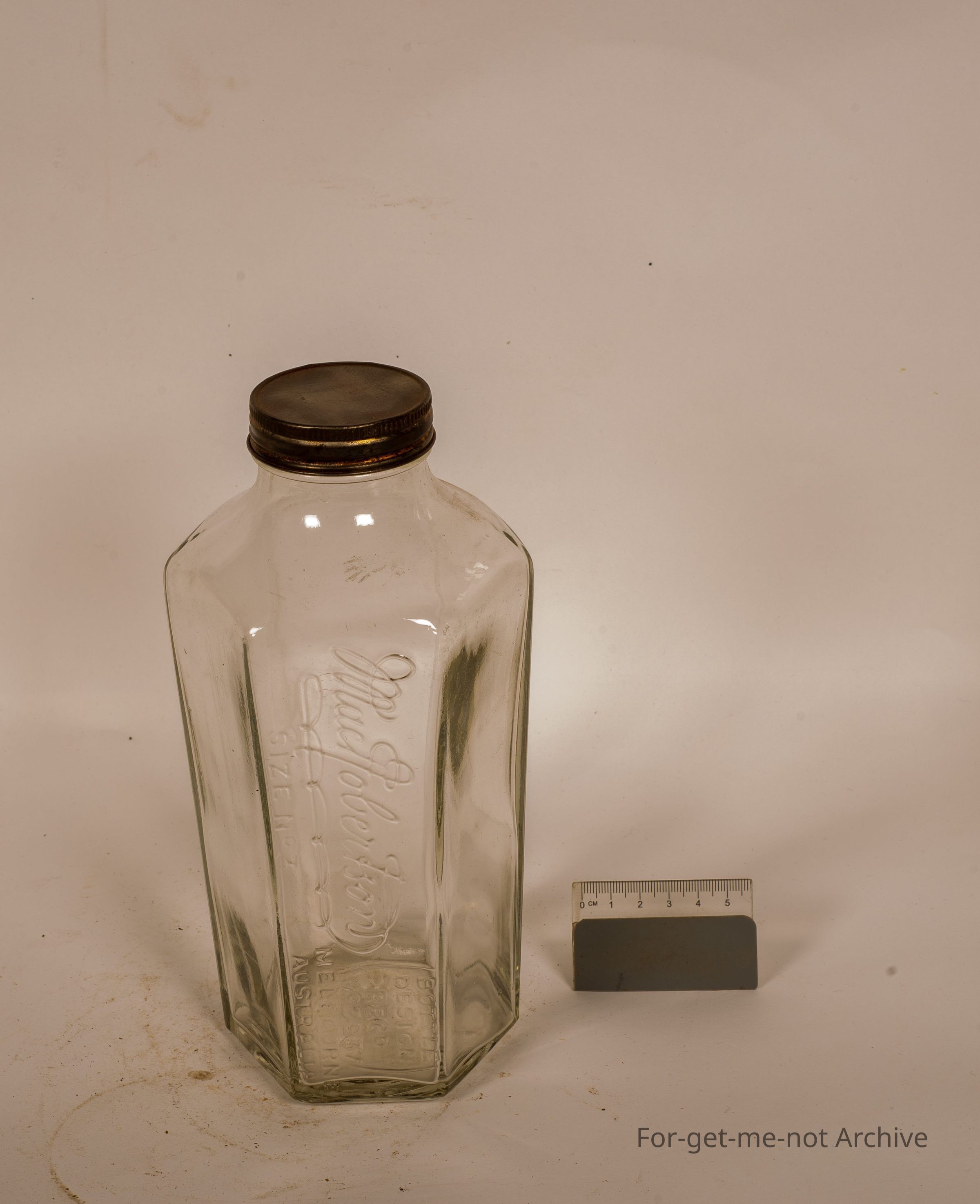 A Mac Robinson. Size number 3, design and registration, Melbourne, Australia. This one has its lid, but no graphics on the top of the lid.