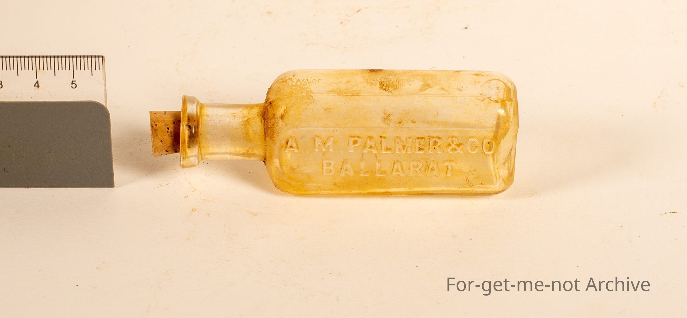 Very small Glass Chemist Bottle from AM Palmer and Co. Ballarat. Quite a rare bottle
