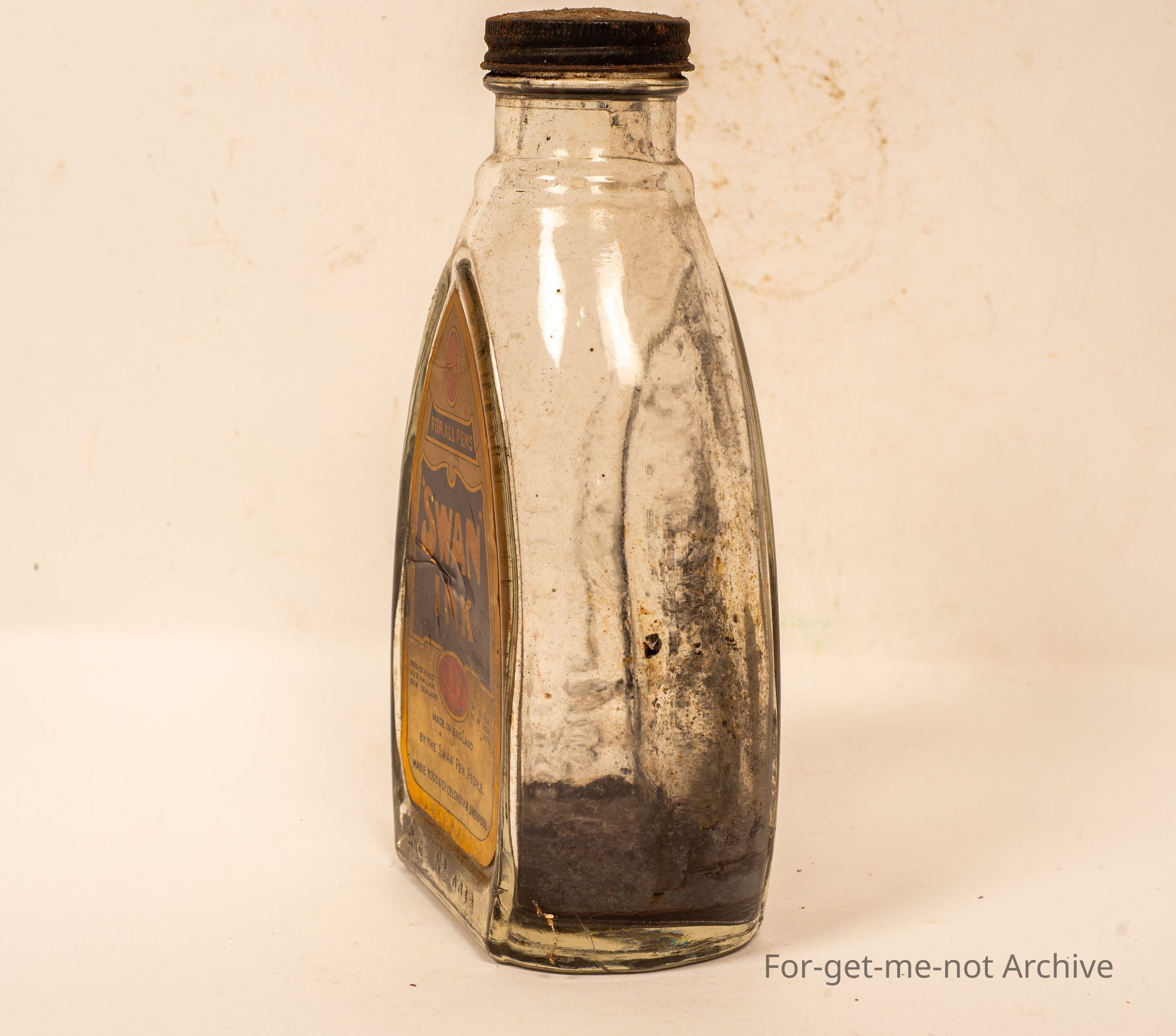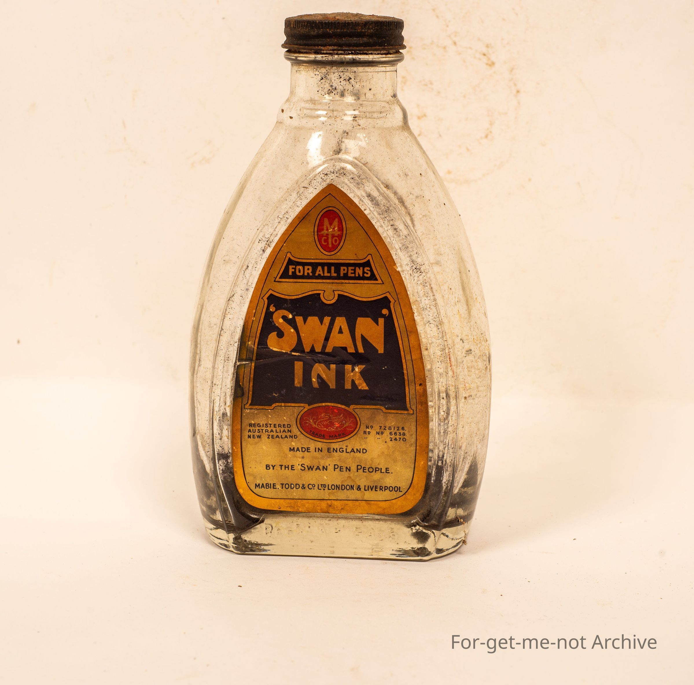 Large glass bottle of Swan ink, made in England.
