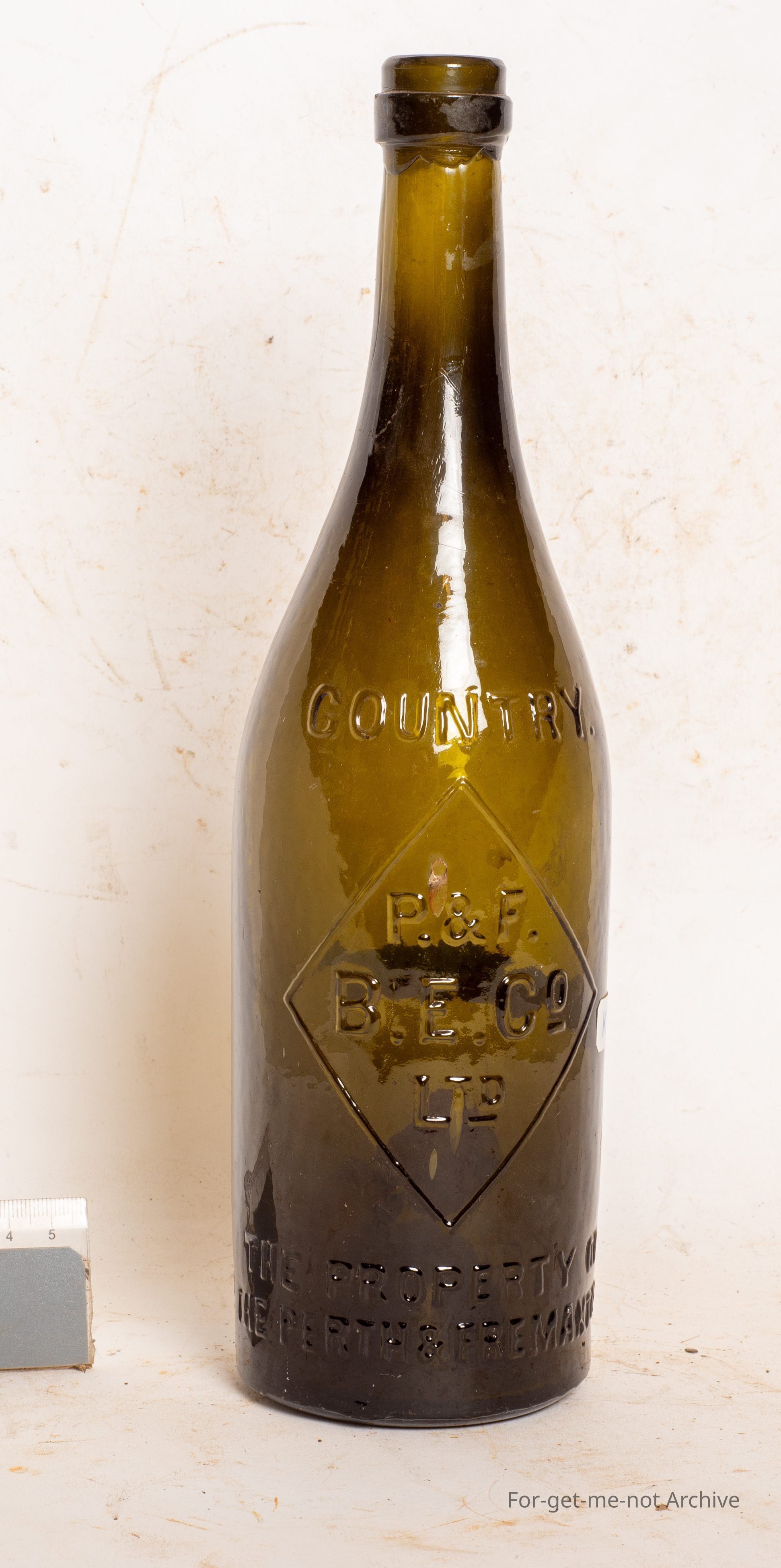 This is a pretty early bottle in beautiful condition, sort of a greenish colour, embossed. P and F BEC CO Limited. The property of Perth and Fremantle Bottling Company.