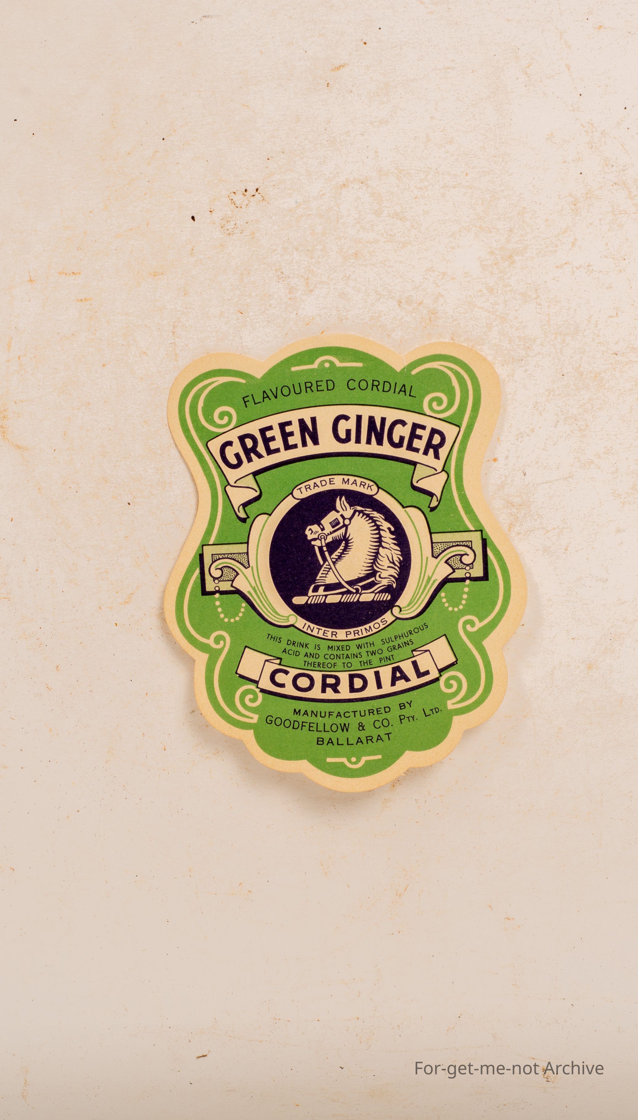 Another bottle label from Goodfellows Ballarat Advertising Green Ginger Cordial
