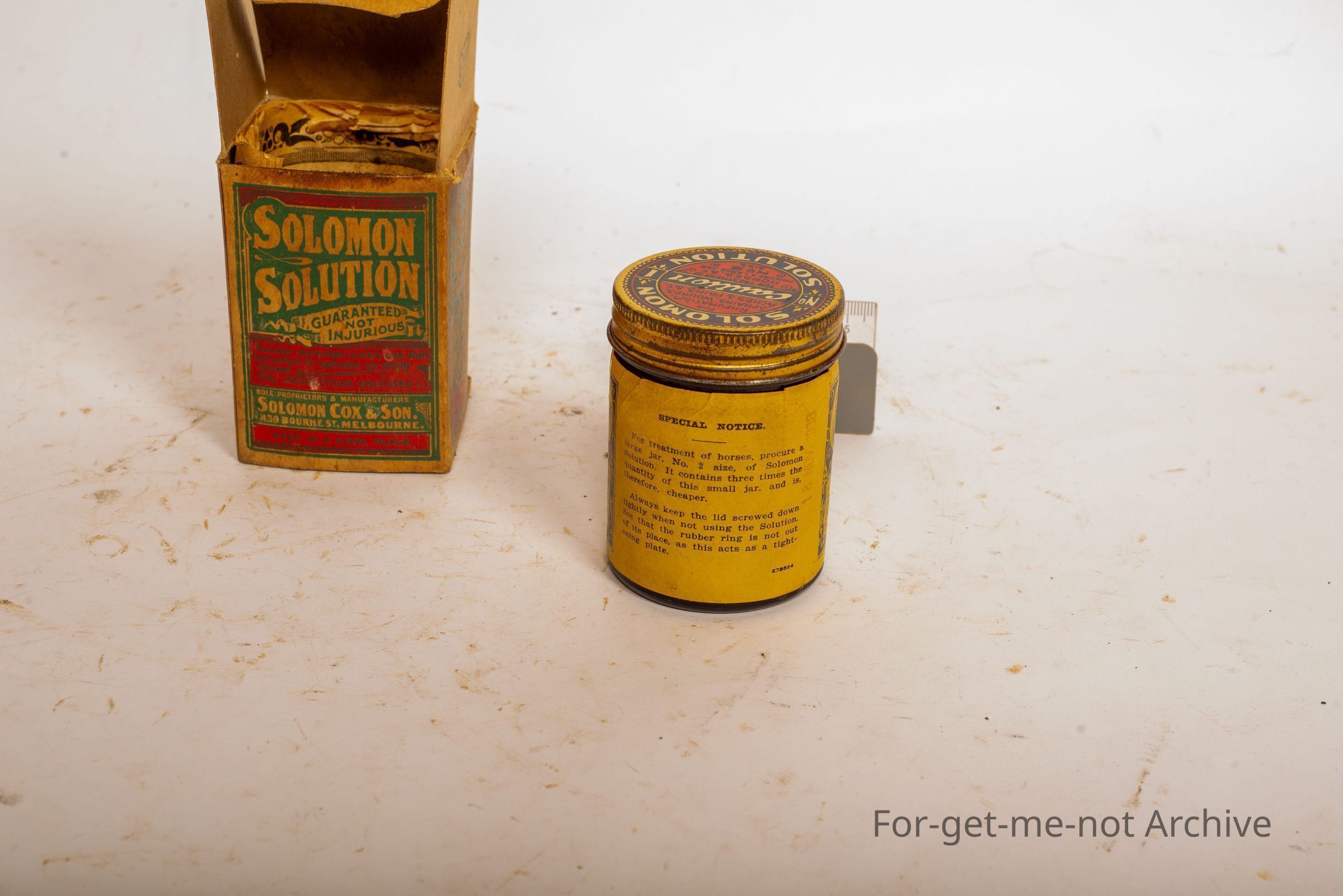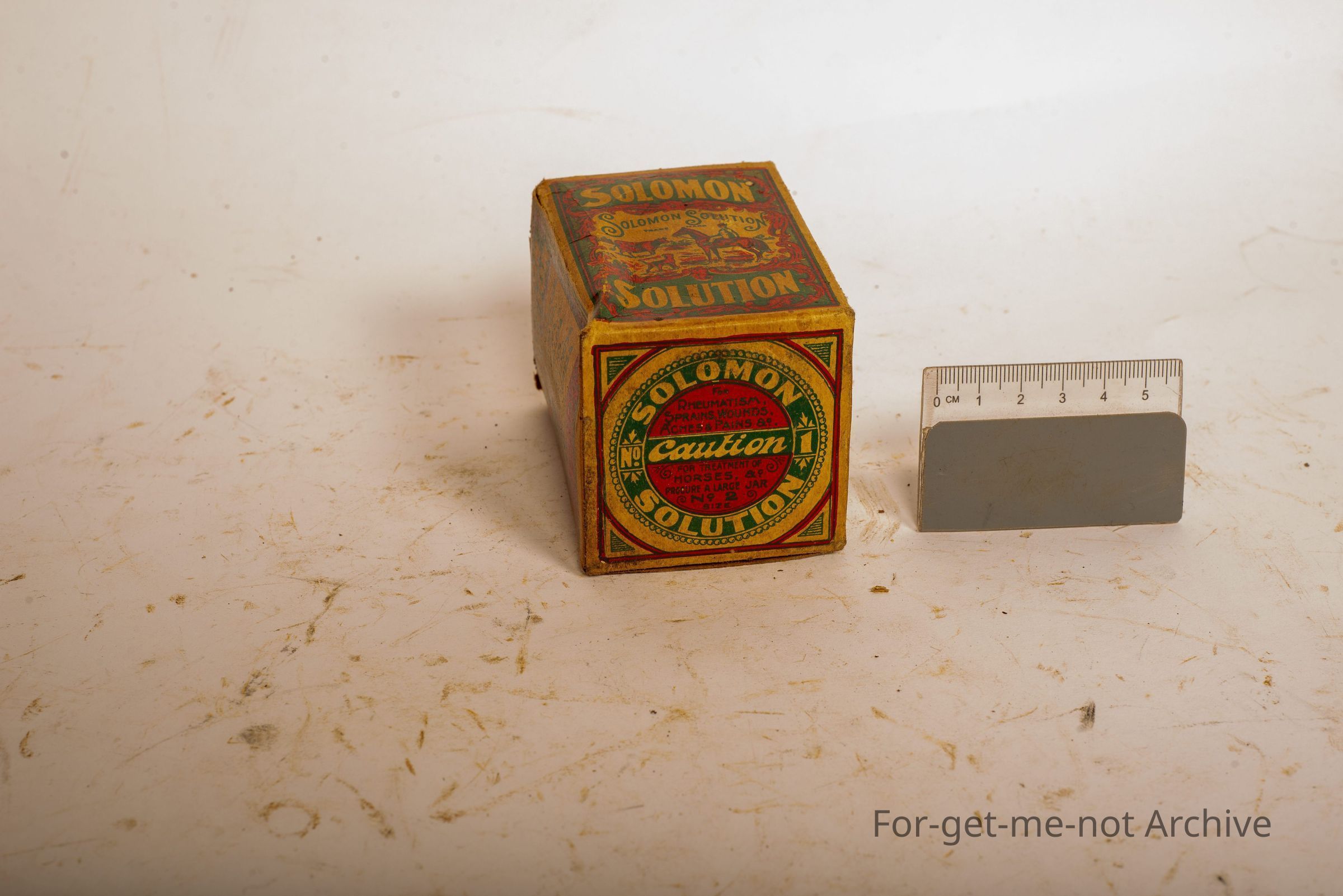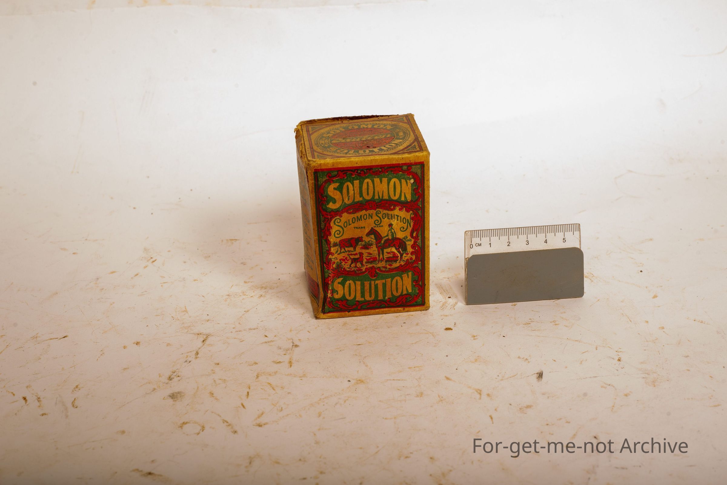 this is the packaging box for Solomon's solution. This has the full content bottle and the instructions all involved, in lovely condition, an early animal treatment.Collection