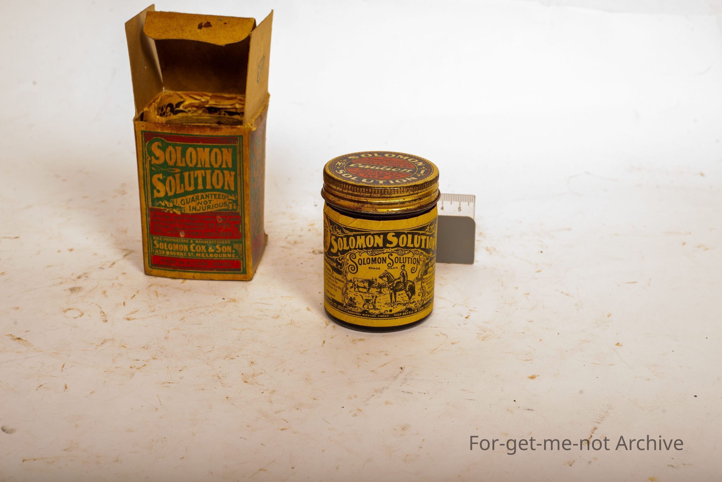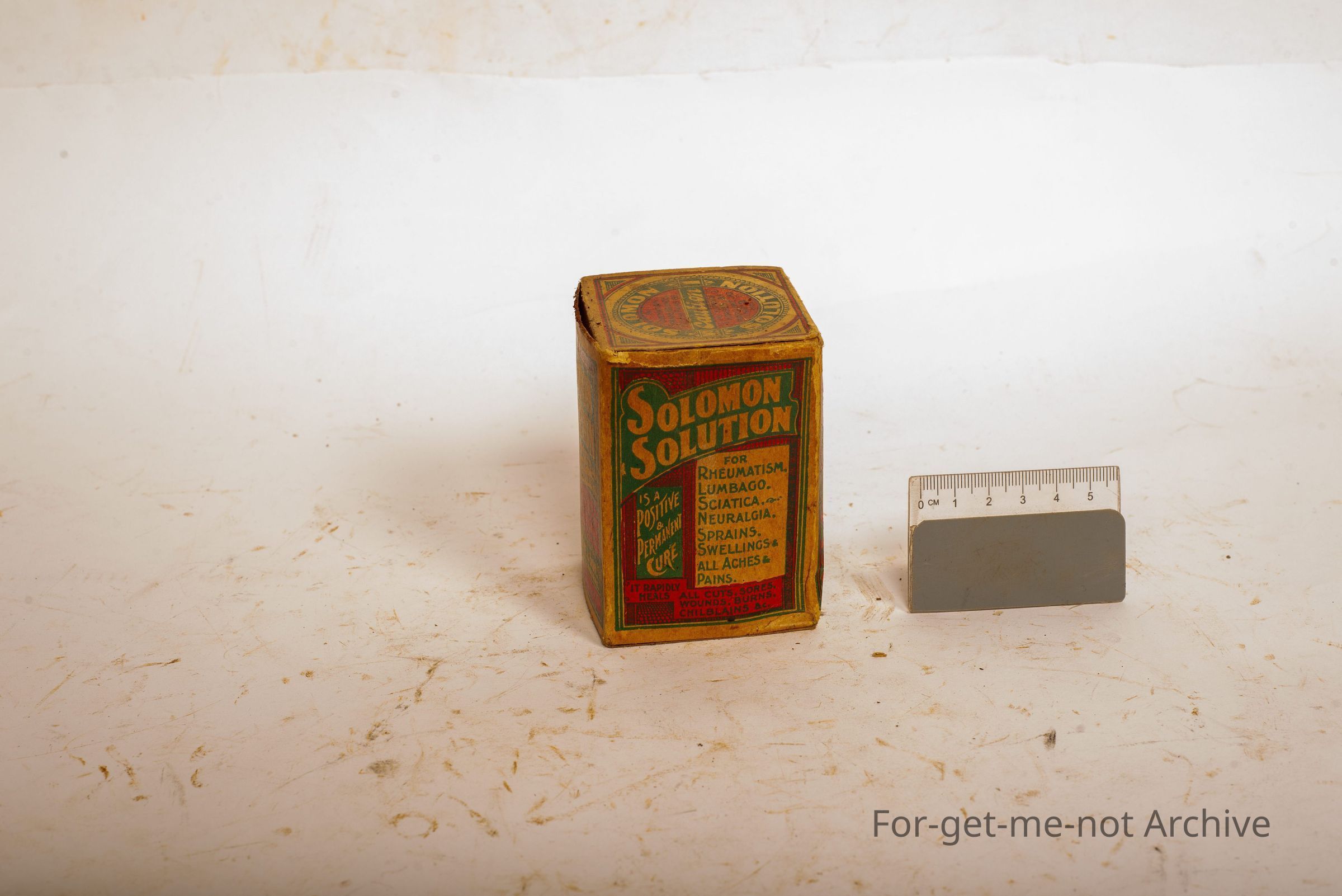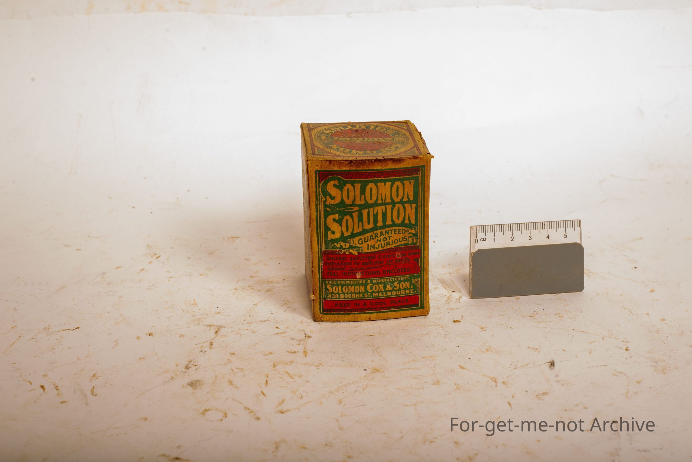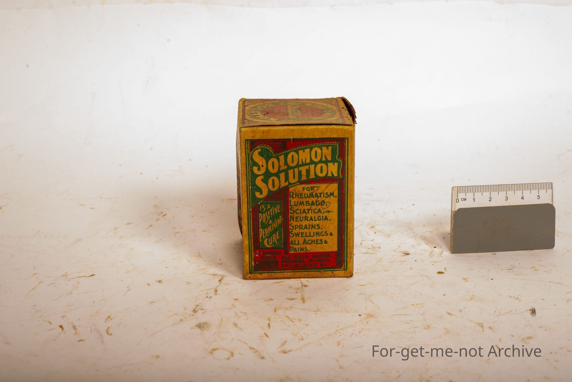 this is the packaging box for Solomon's solution. This has the full content bottle and the instructions all involved, in lovely condition, an early animal treatment.Collection