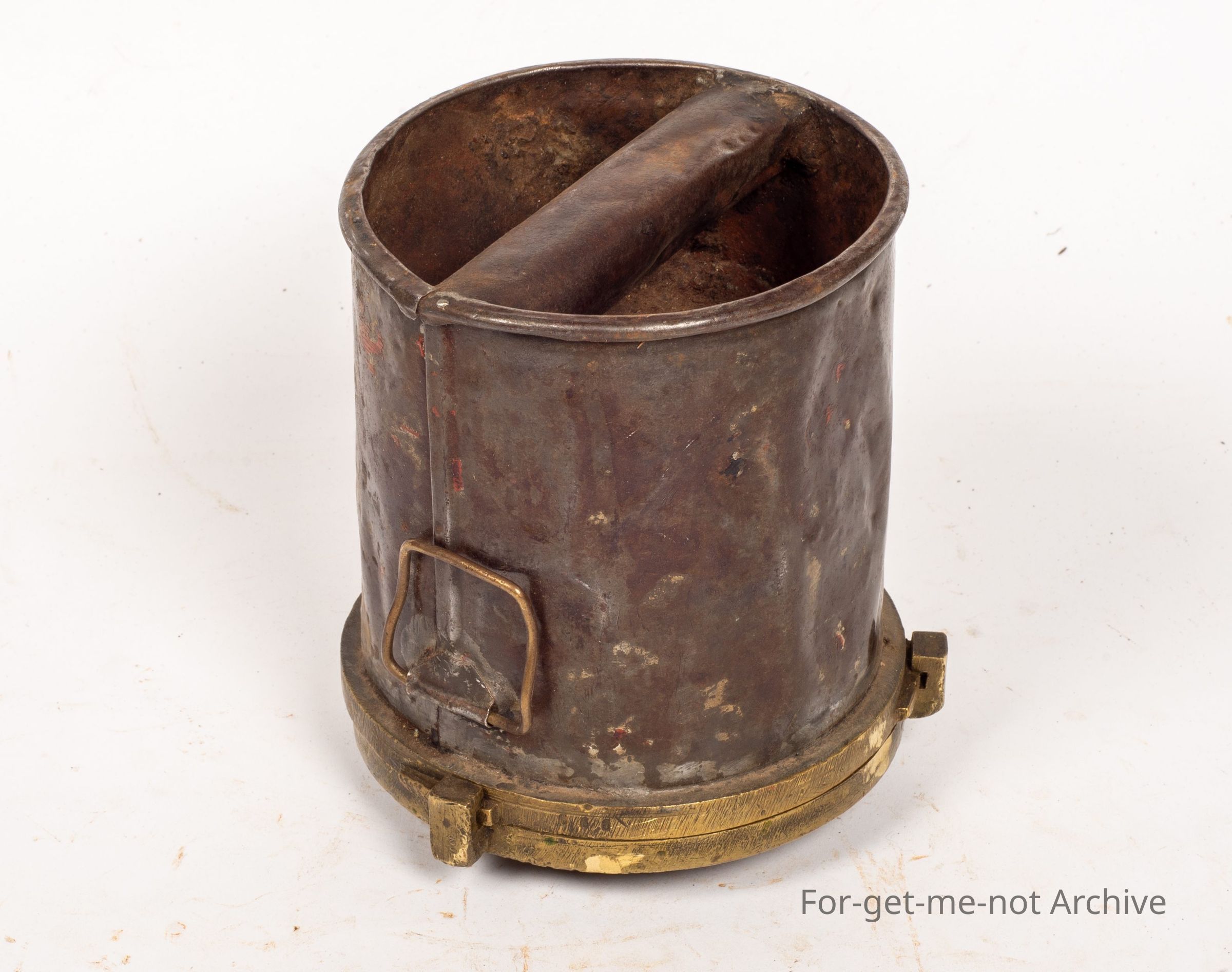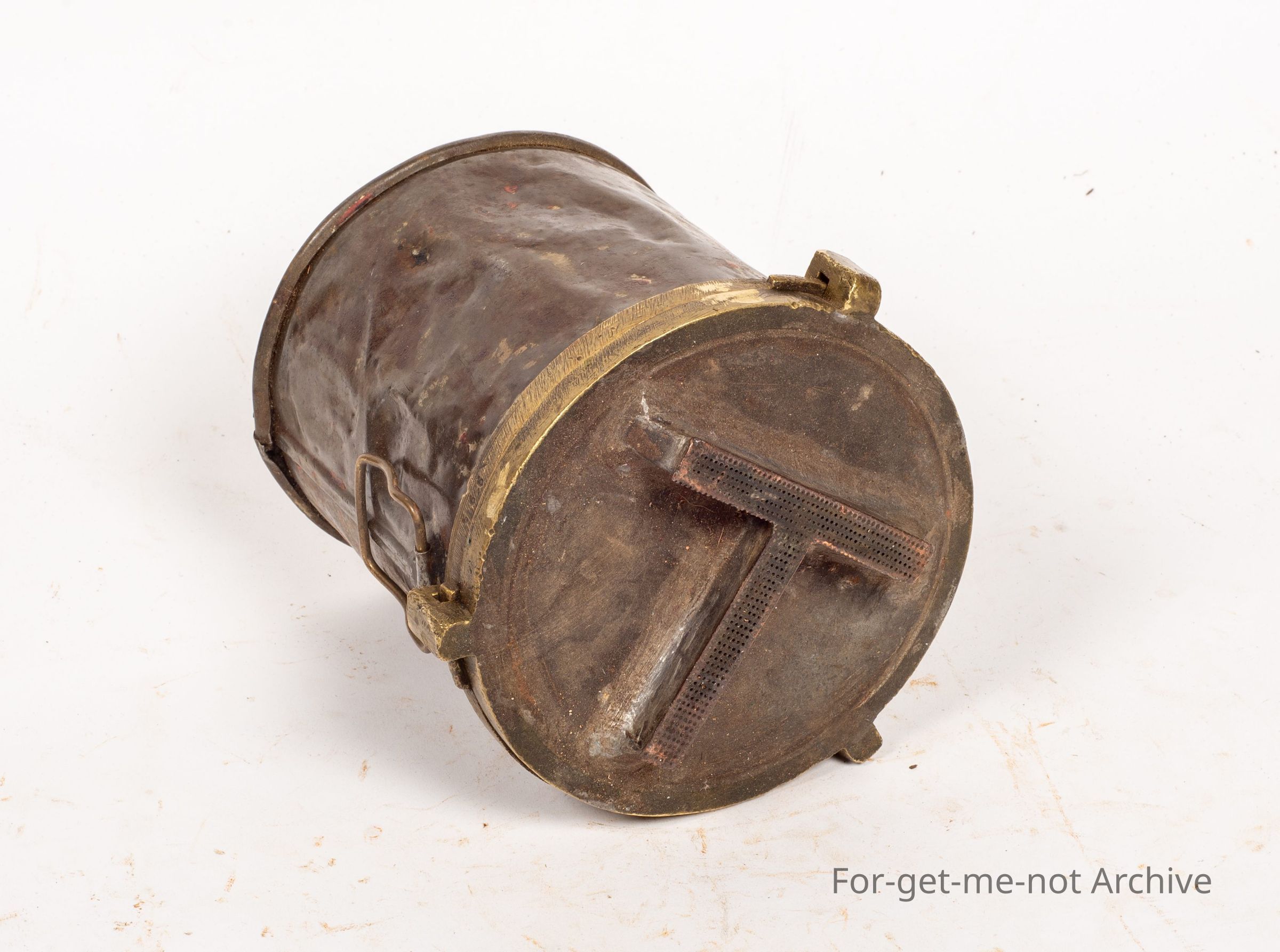 This is a canister that had a reservoir of branding fluid. It had the, the, the letter representing the owner of the stock which was perforated when it was pressed onto the Shorn sheep. It left a t. Very rare. It's still in pretty good condition.Collection