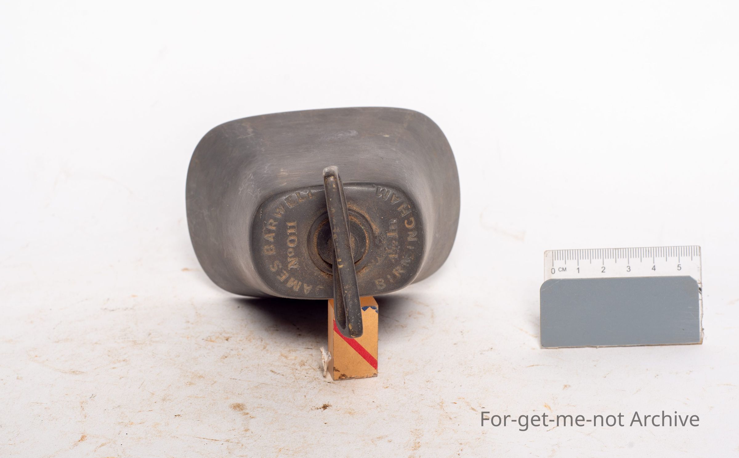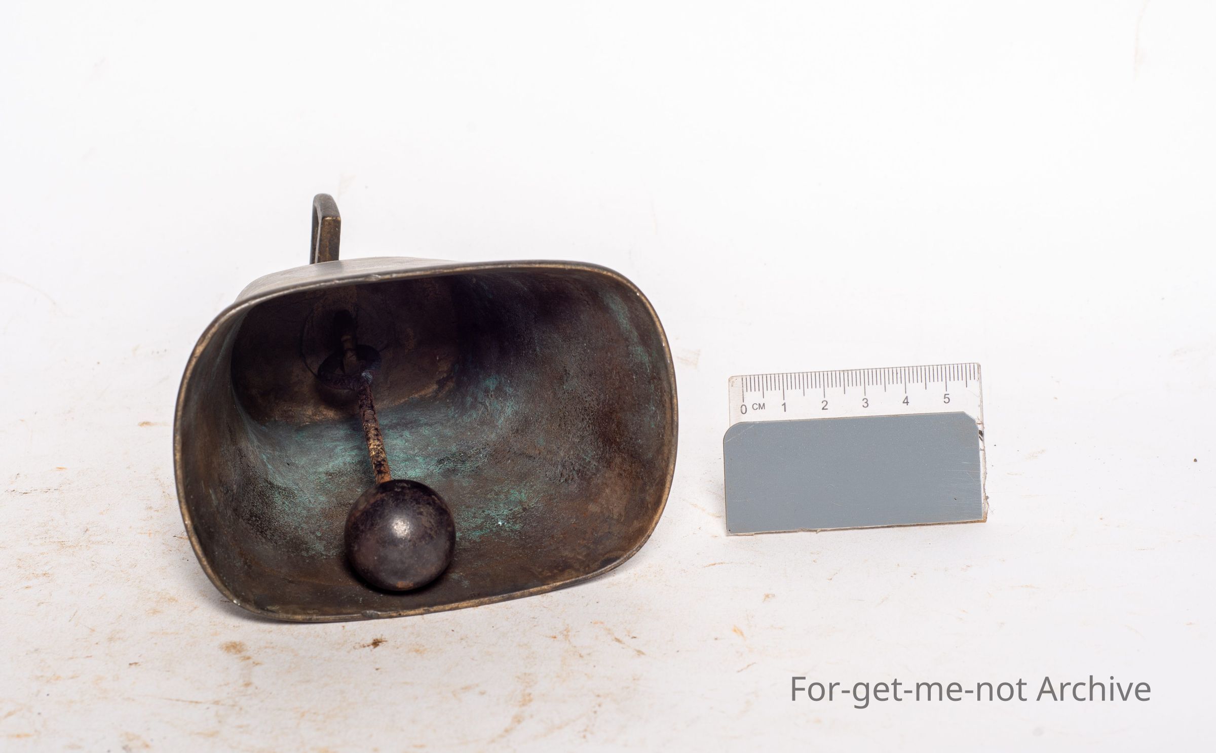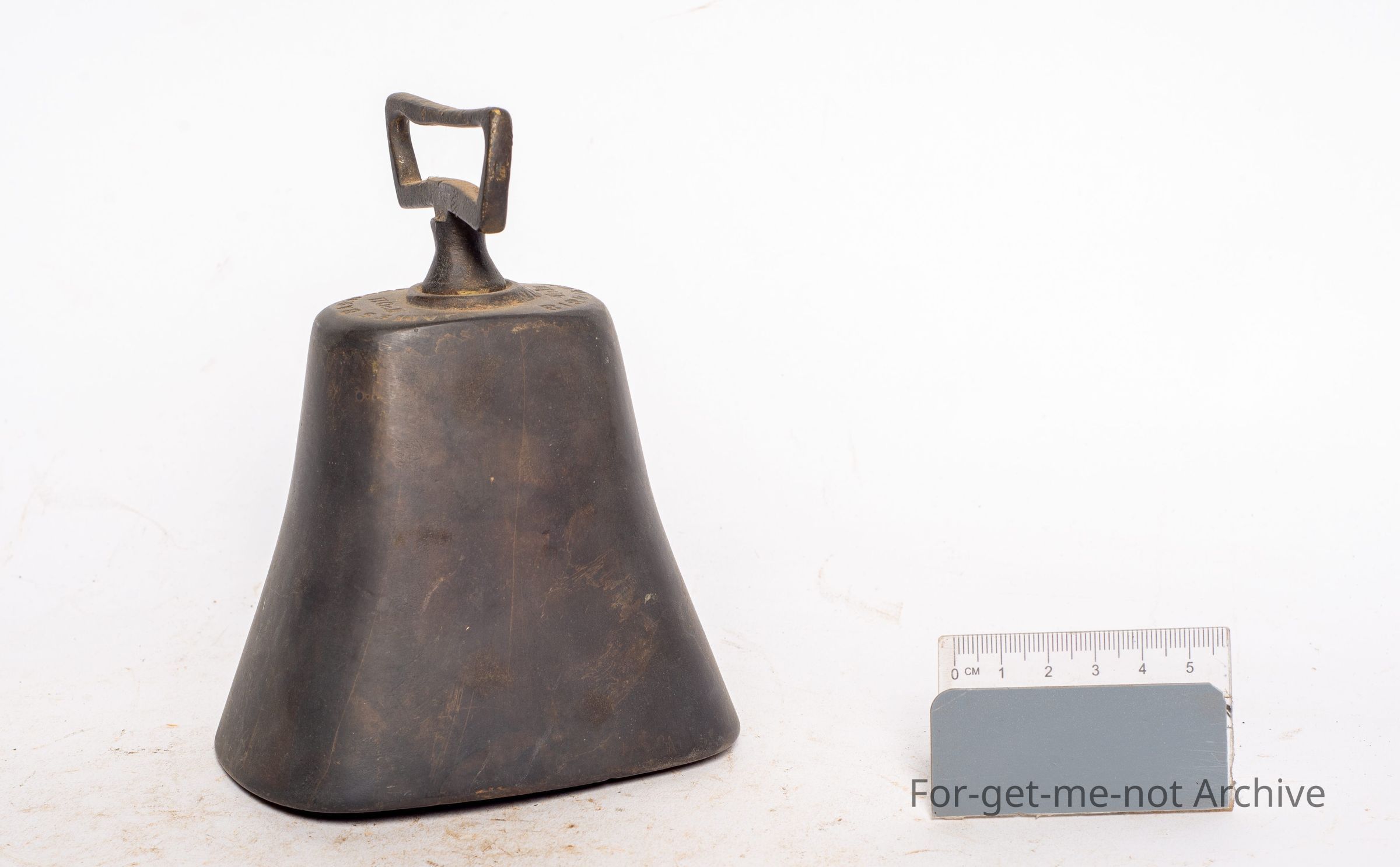Cast brass bell, made by James Barwell Birmingham. This one has all very clear information embedded in the top of it. Nice staple. No cracks or faults.