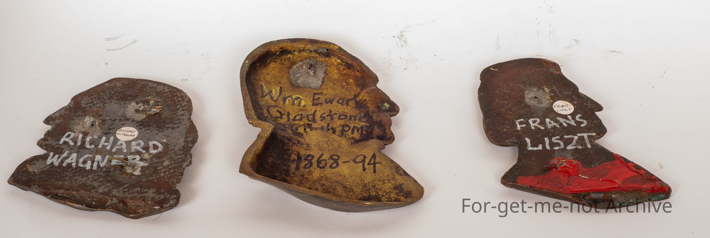 These are brass busts of prominent people of their day. First one, Richard Wagner, Hitler's Favorite musician. William Gladstone, British prime minister, 1868 to 94. And Franz Liszt, he was a composer as well. An operatic composer.Collection