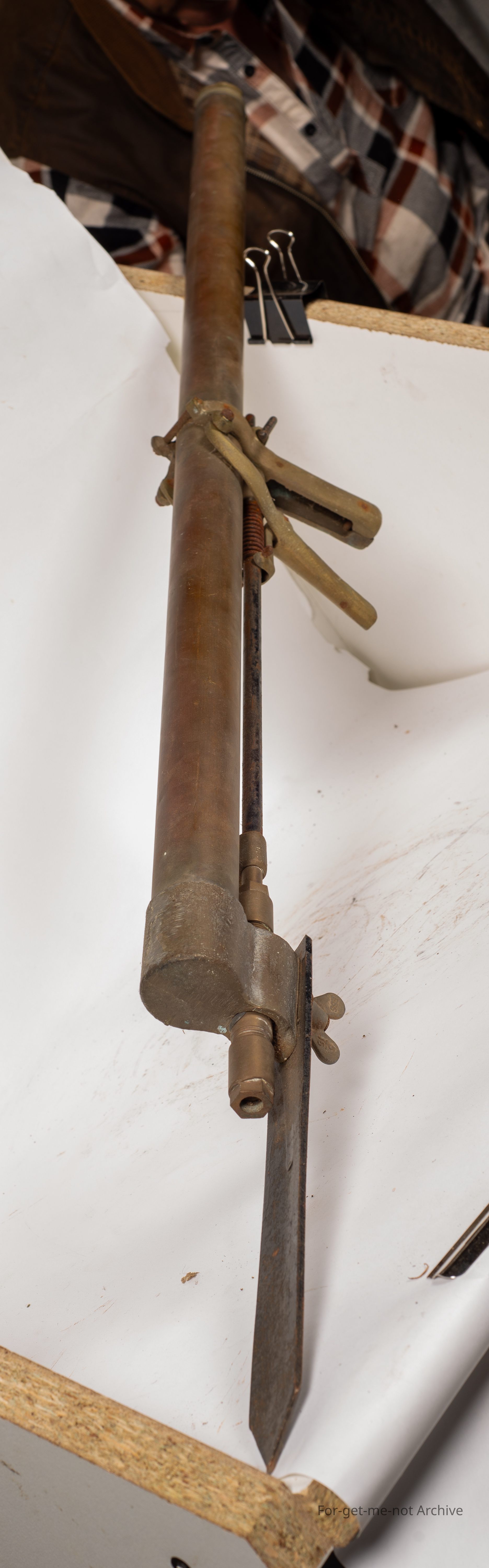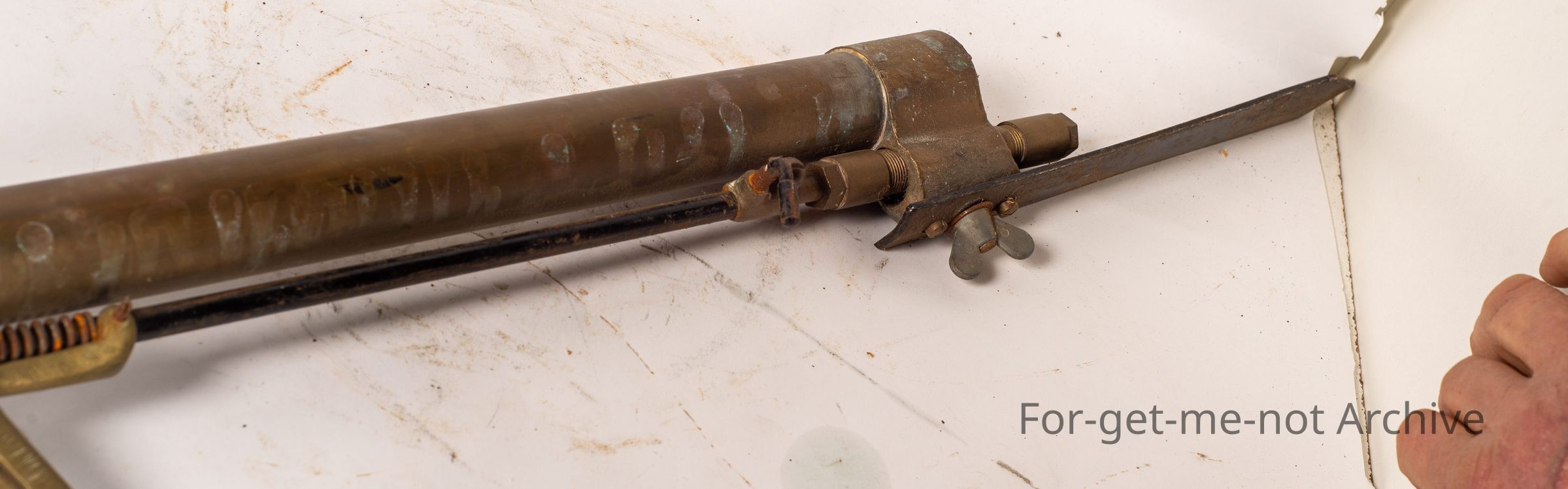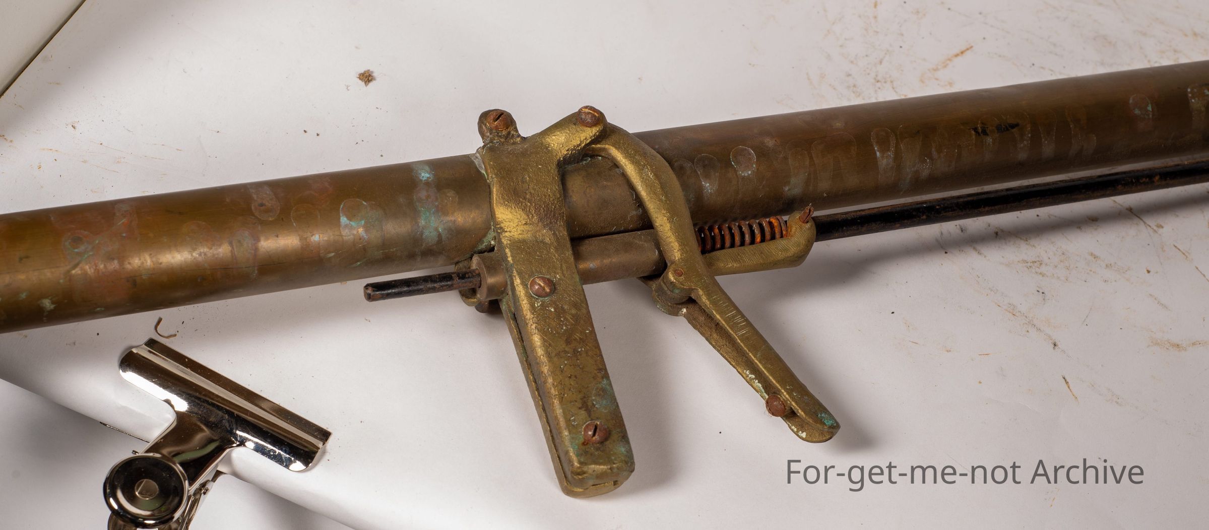 This is a Brass Pick Prickly Pear Gun from Queensland. This is the large size one which is a lot more common than the smaller one which went in a, on a horse on a saddle. This one is missing the end, but other than that, it's all complete.Collection