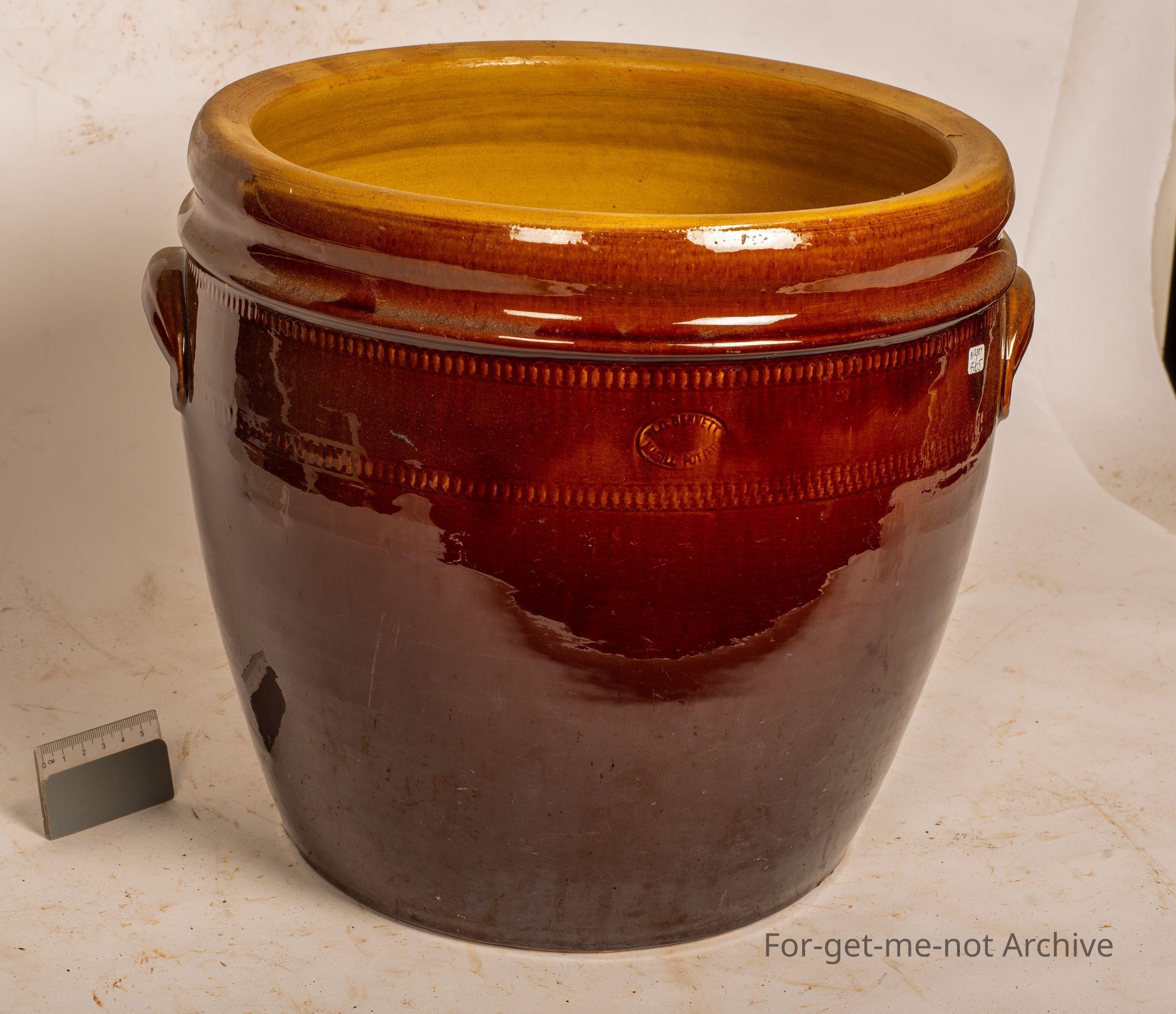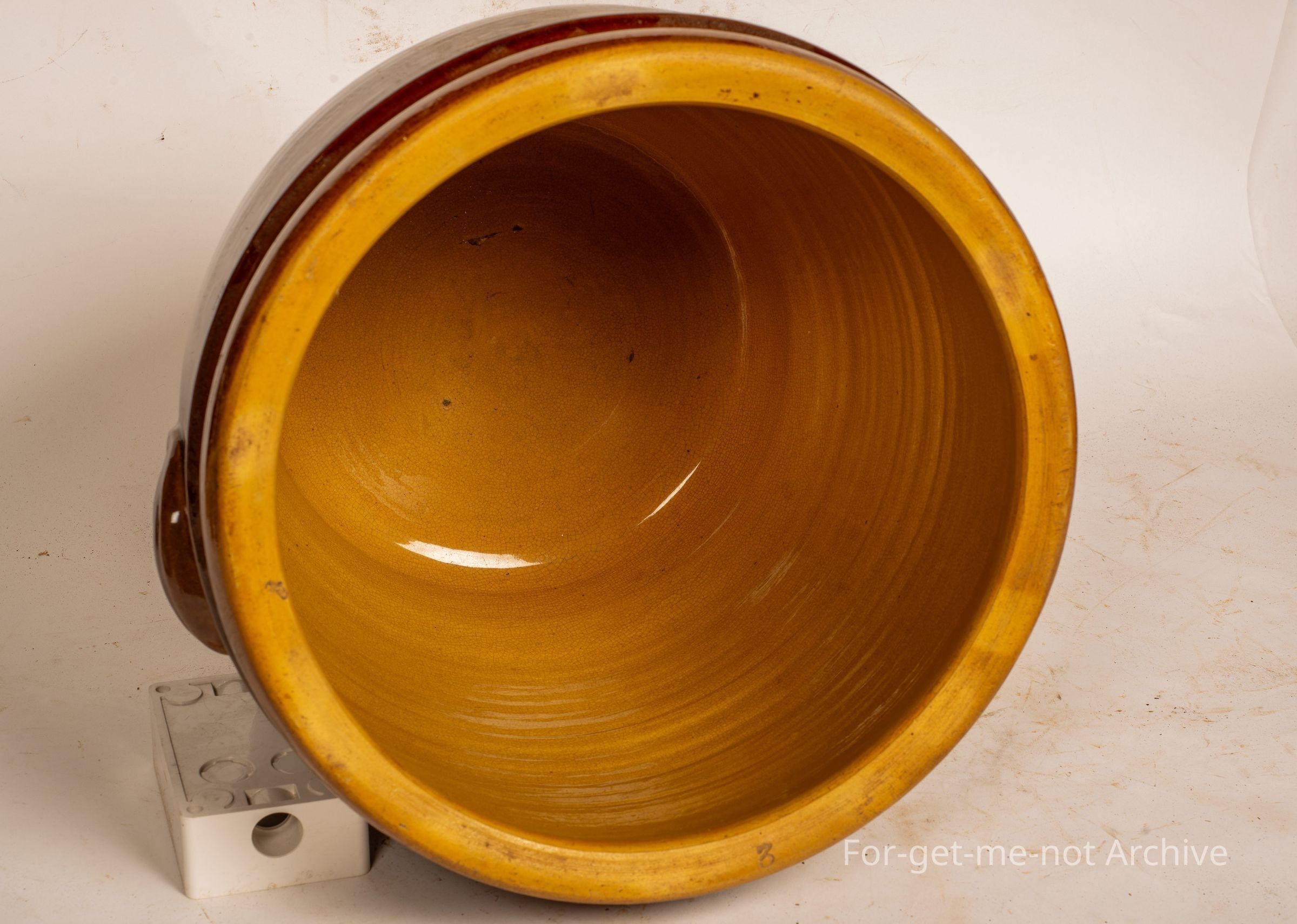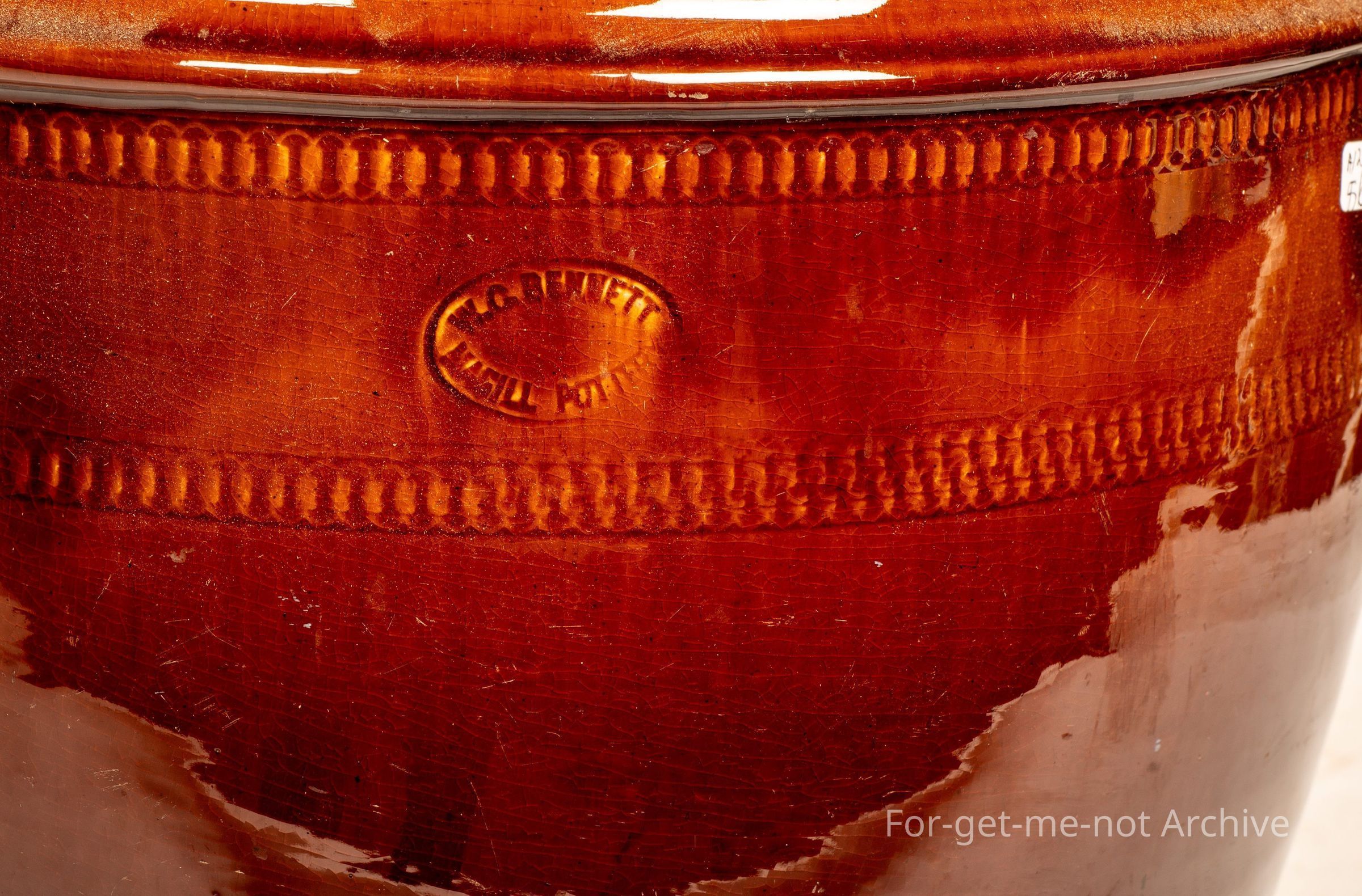 This is a large, bread crock, 3 gallon size, a beautiful majolica glaze Stamped WC Bennett McGill Pottery South Australia, in glorious condition. But no lid,