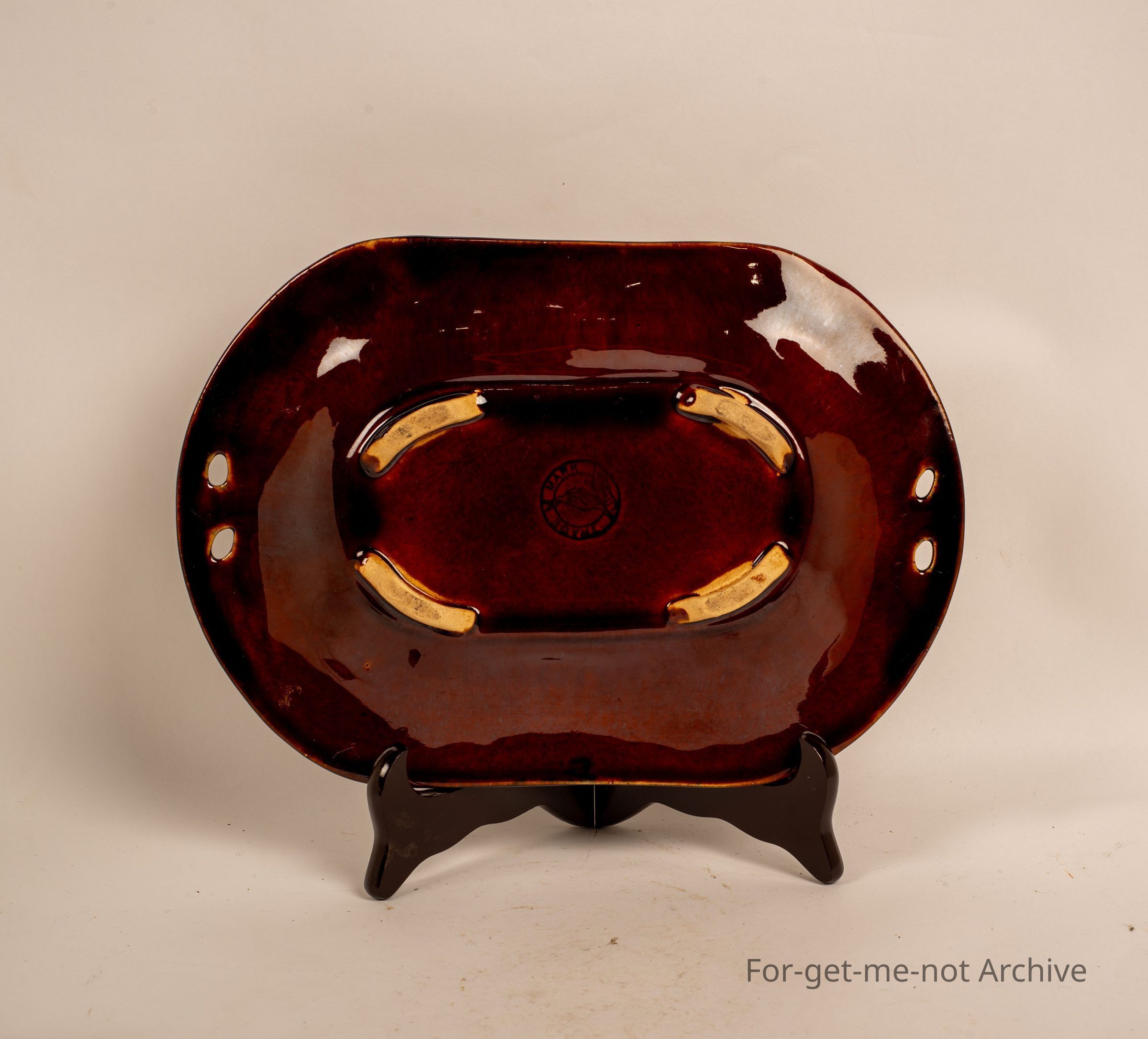 Glorious majolica grays, bread platter, stamped kangaroo, Lithgow Pottery