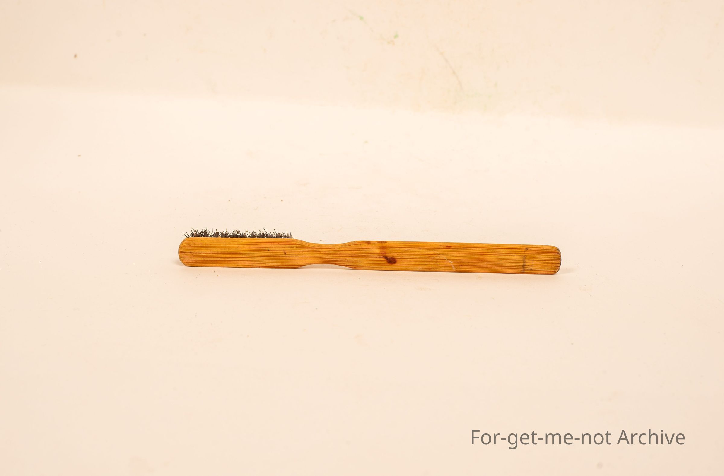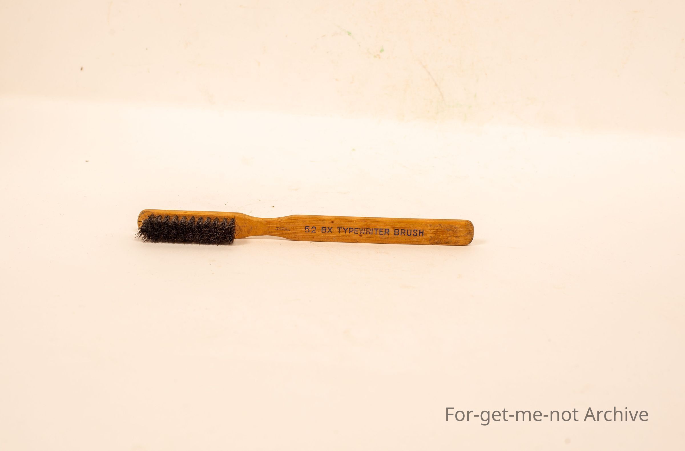 Small wooden handle brush with bristles. Purpose typewriter ribbon brush.