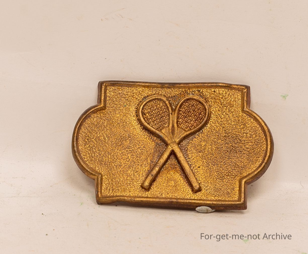 Cricket buckle, near perfect condition. This one depicts tennis rackets