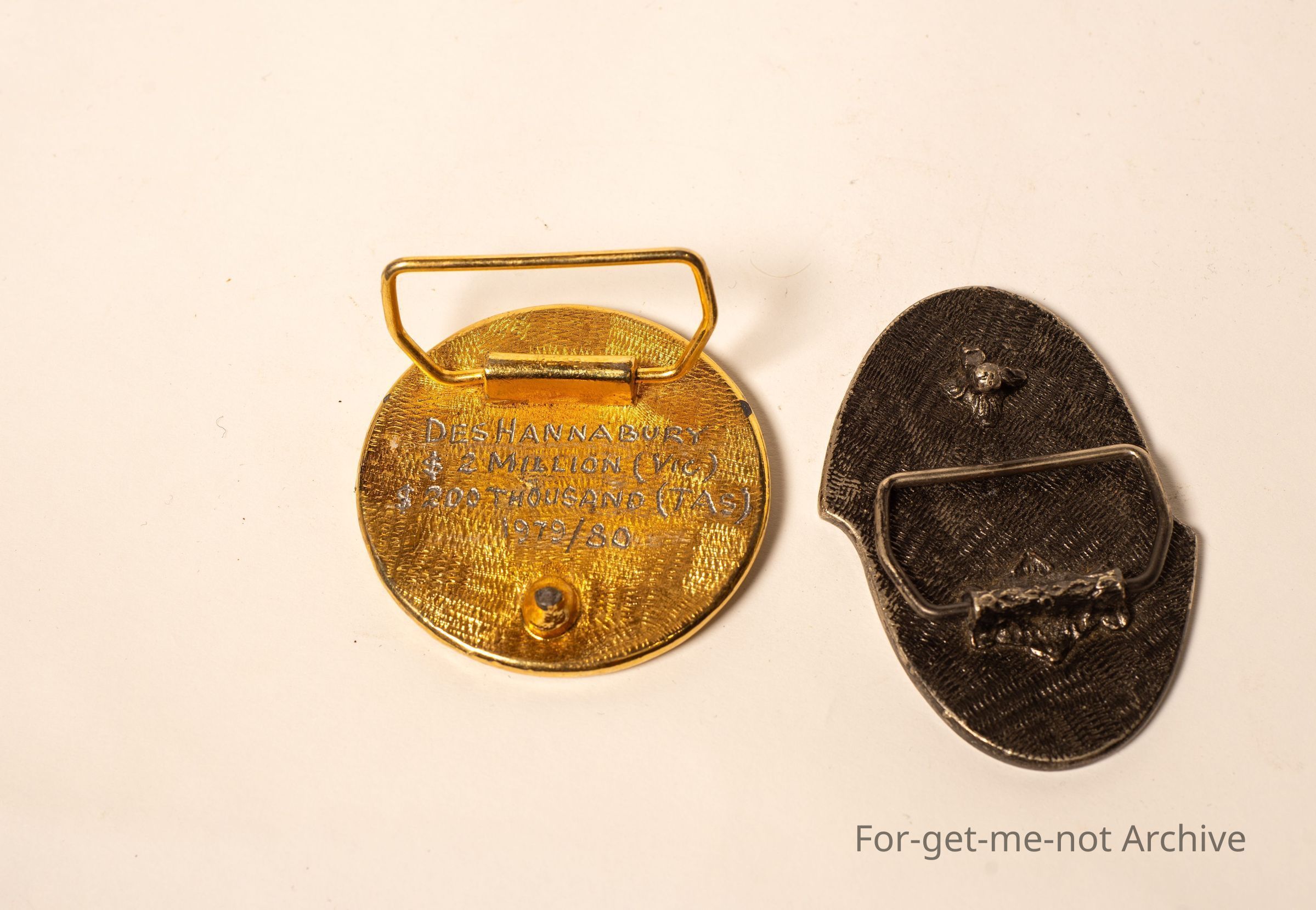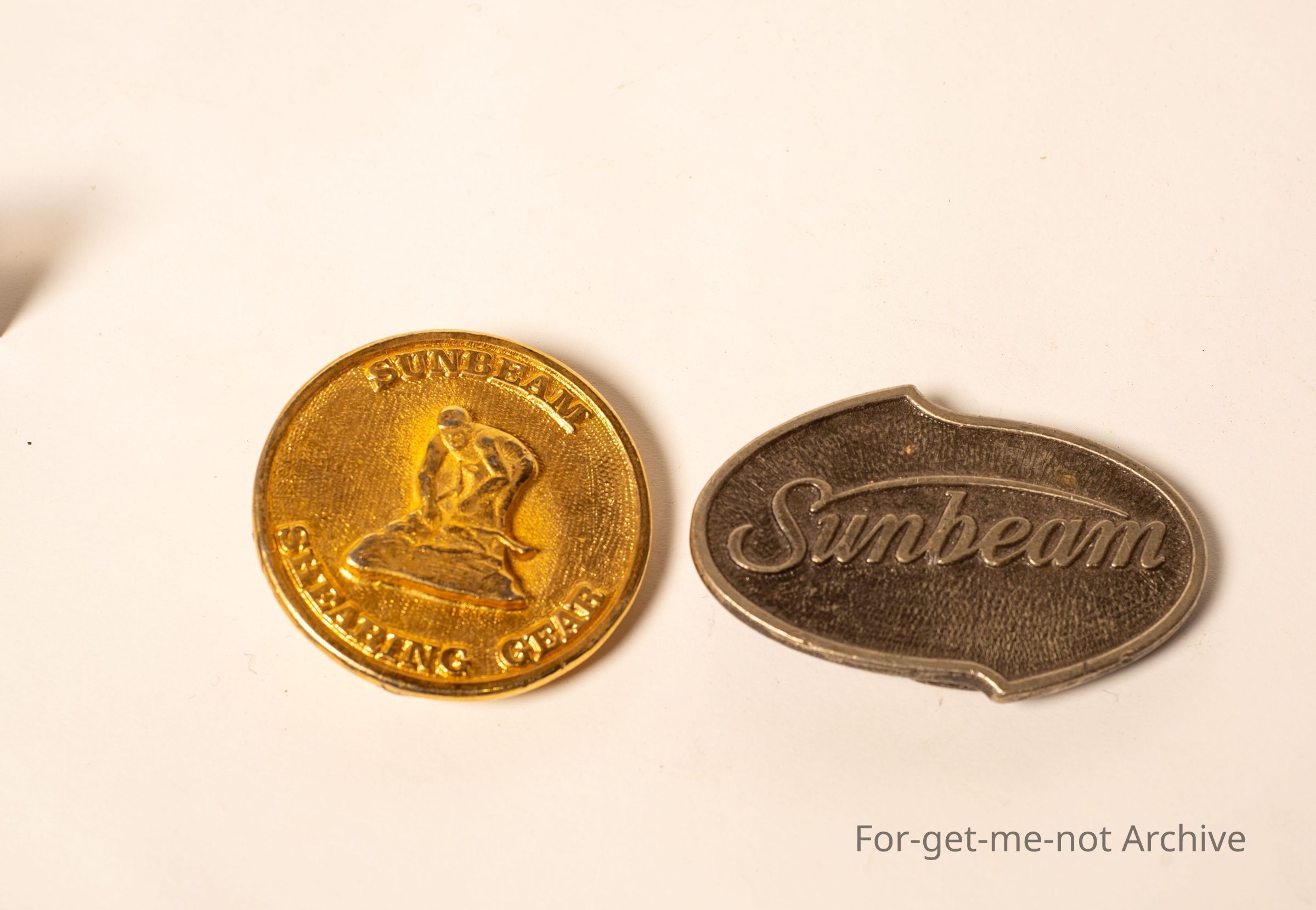 2 sunbeam belt buckles from sunbeam shearing division. One depicting a shearer shearing a sheep. The other one just says sunbeam. Both are nice things.