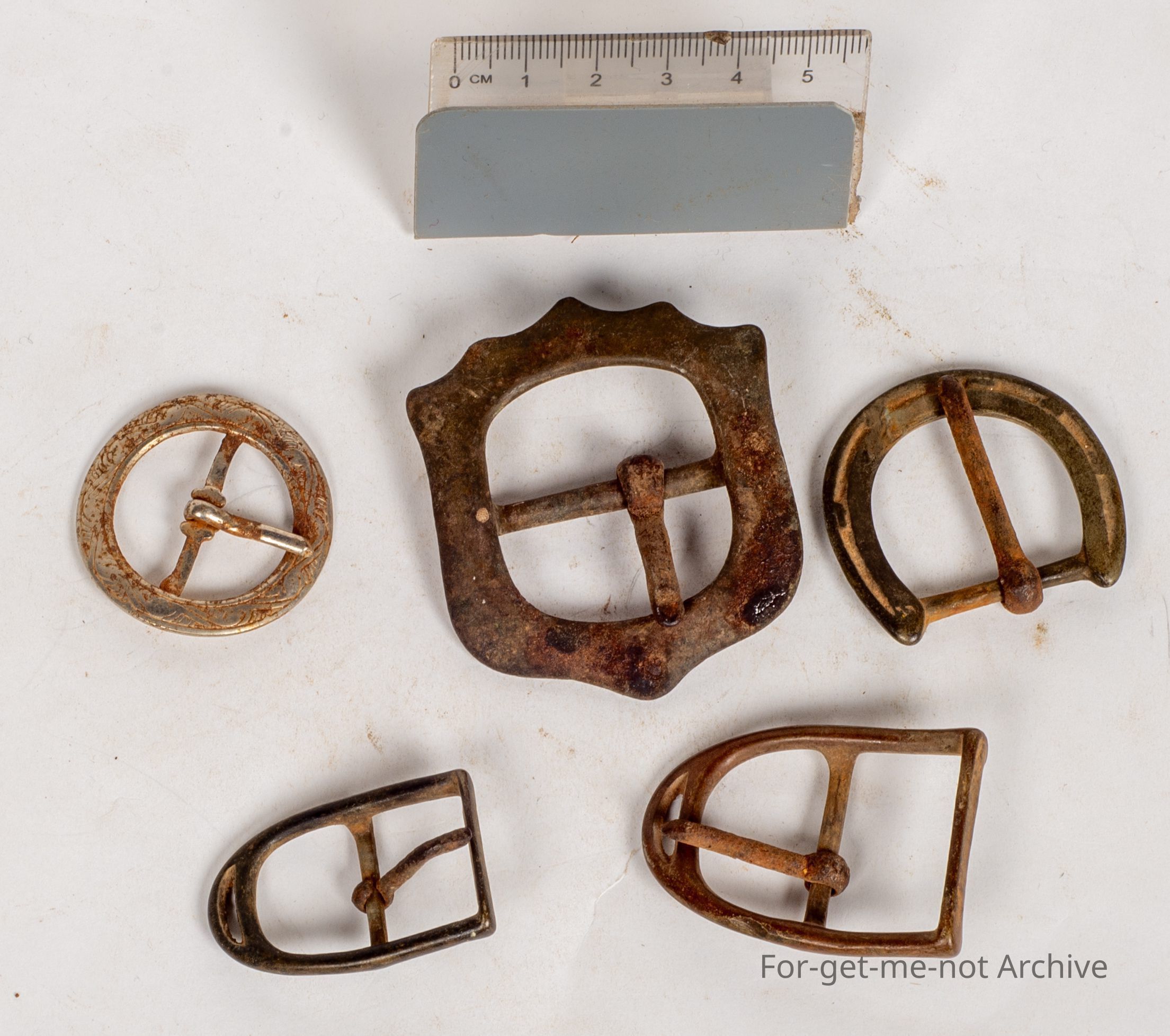 This is a little group of harness buckles in the shape of horse shoes, stirrups, crest, all beautifully made, quite decorative