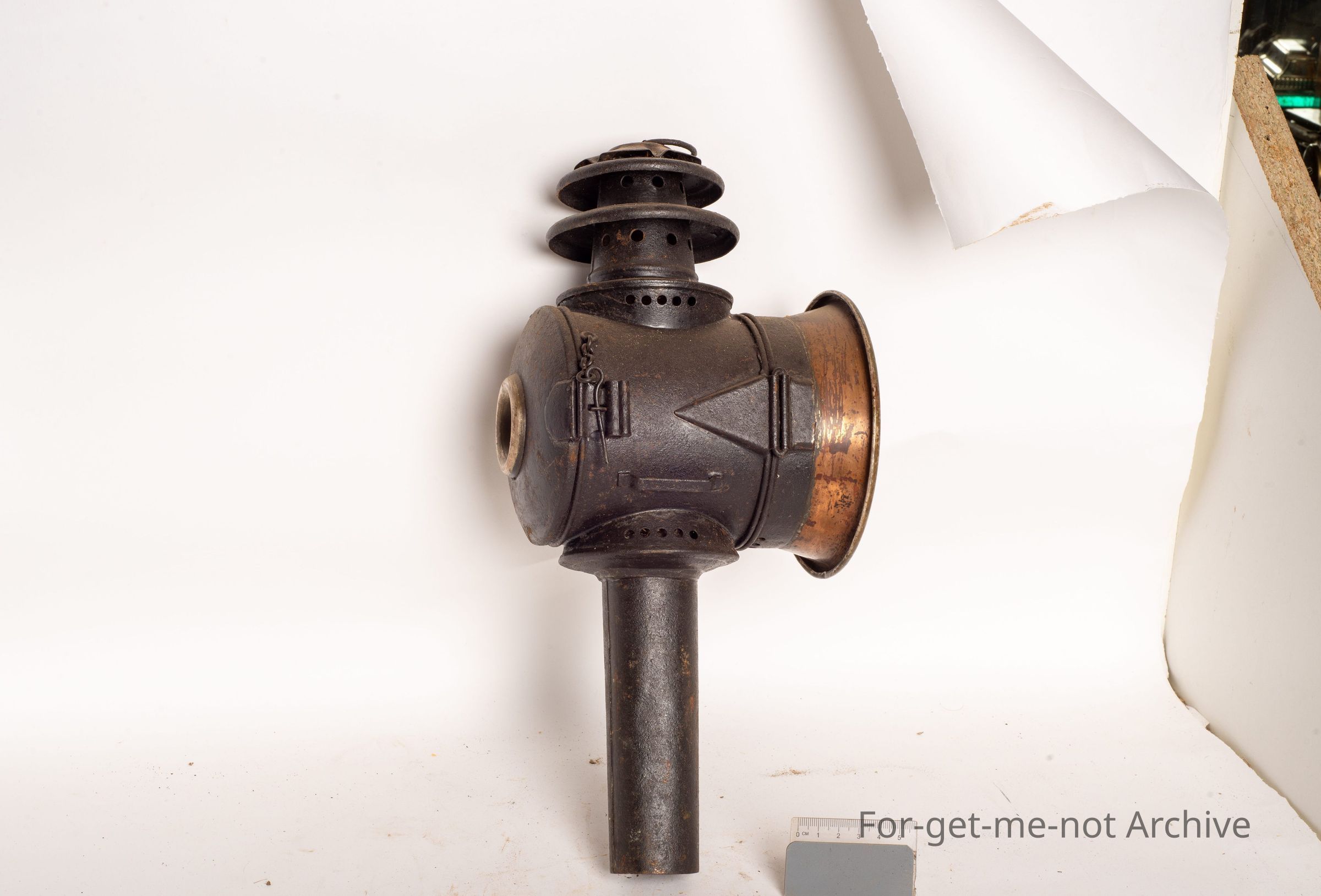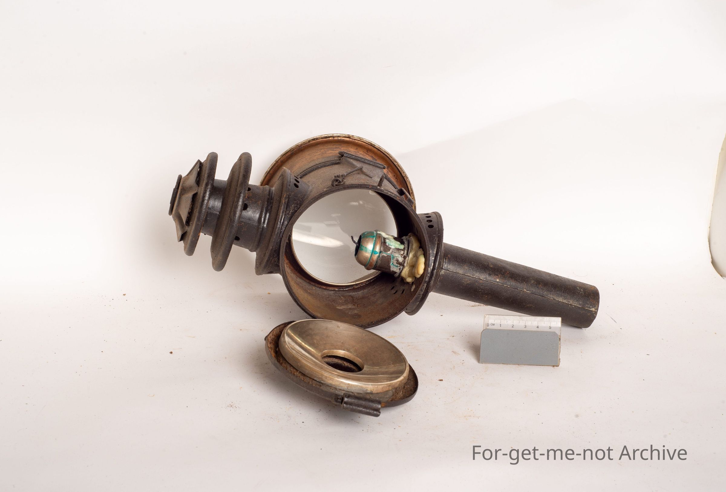 This is a candle operated lamp, red lens at the back. All in good, restored order, very early