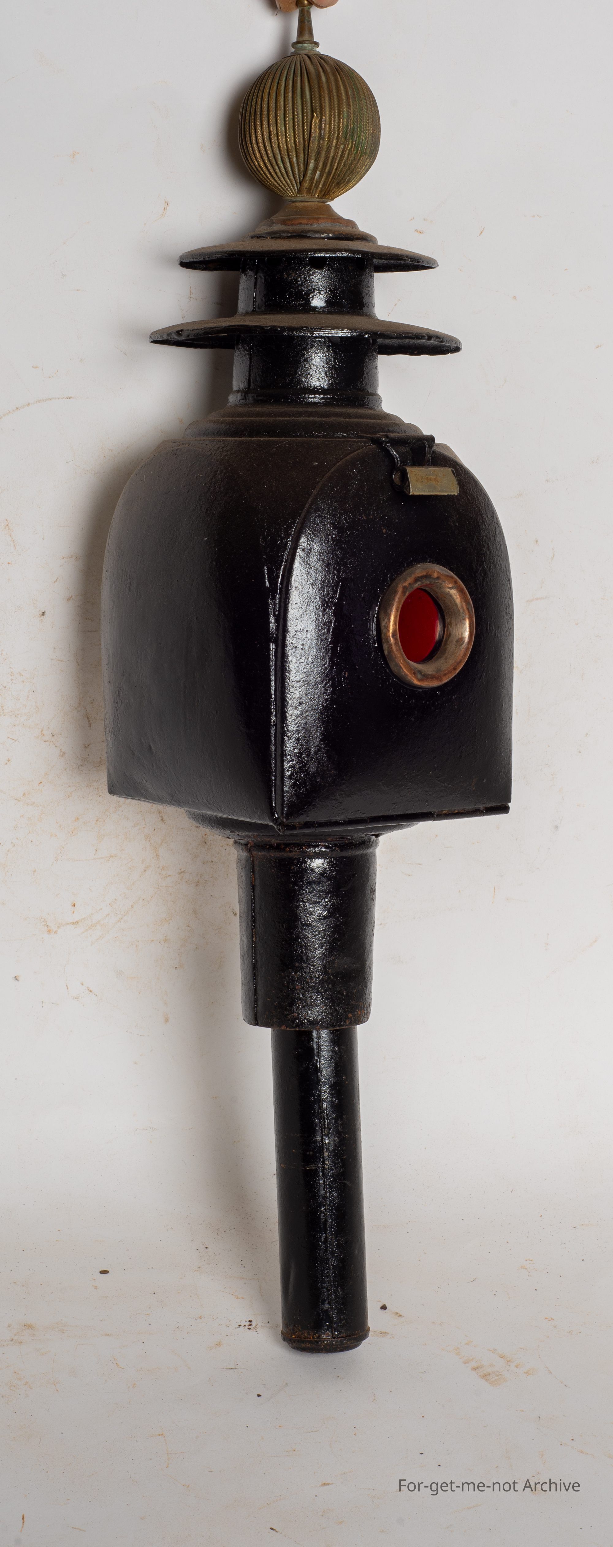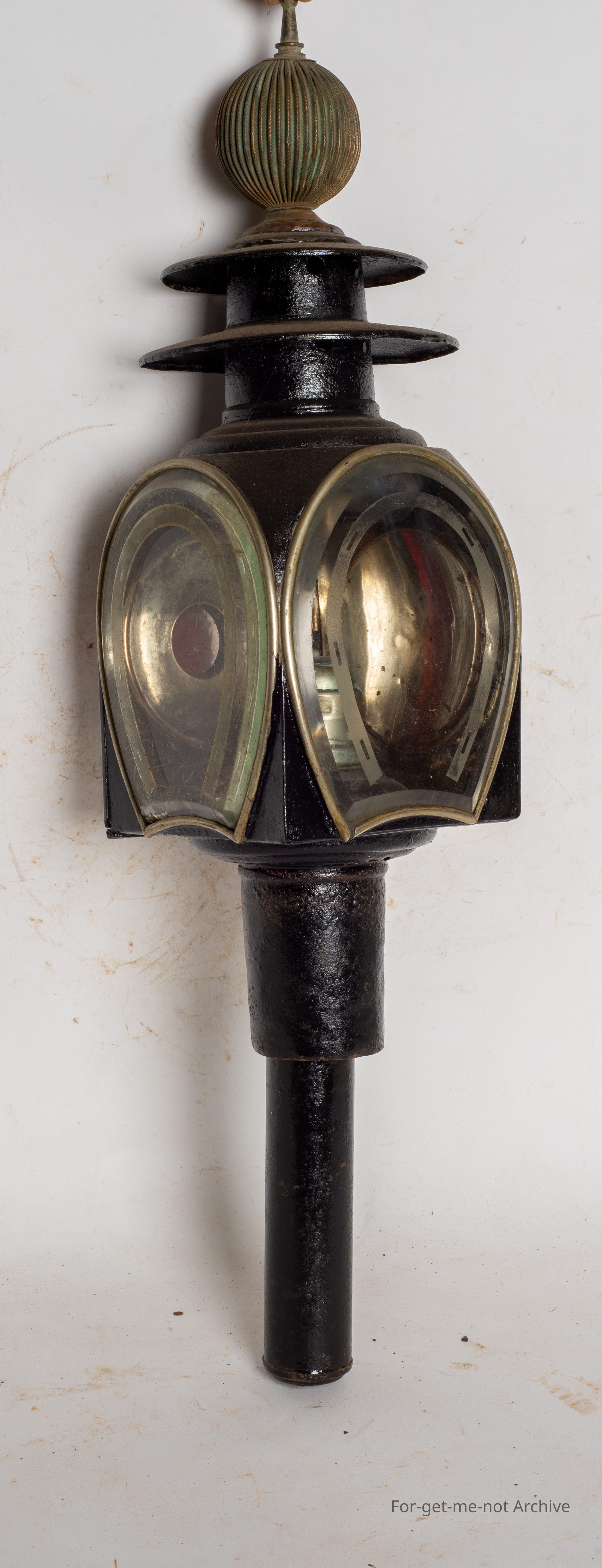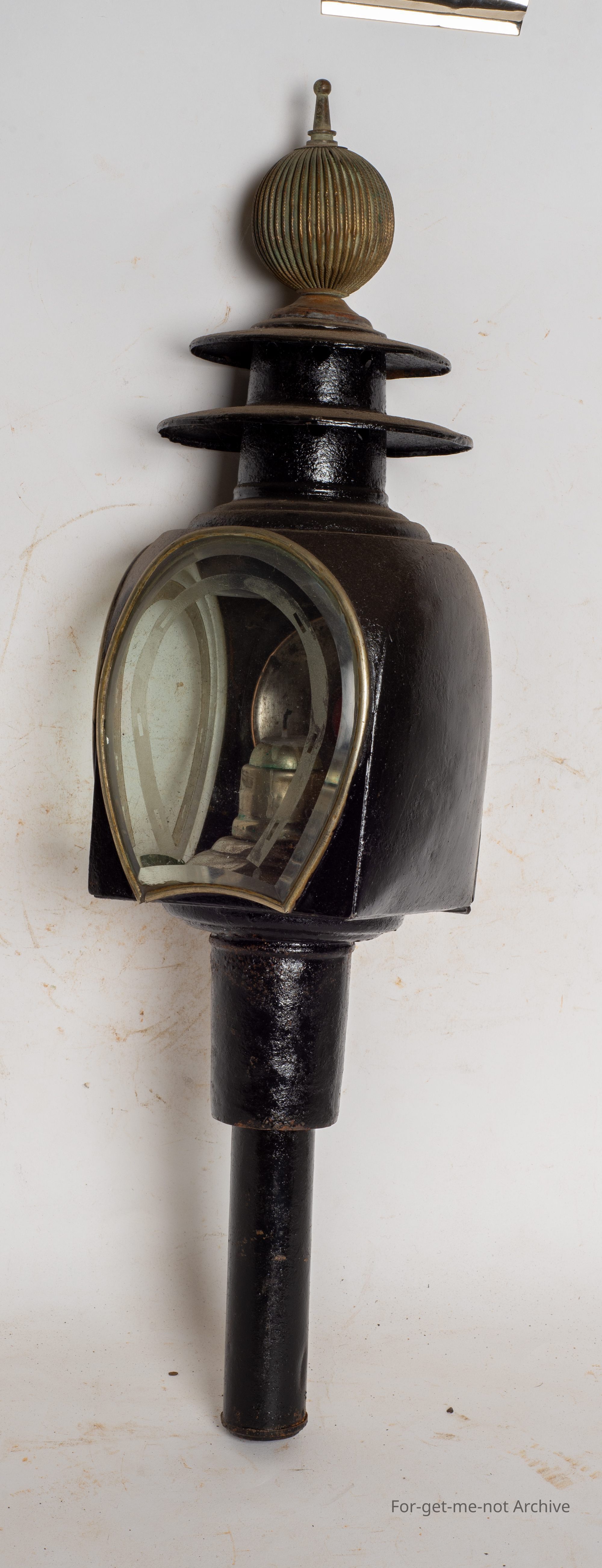 This is, a buggy light, with a beautiful bevelled curved lens, in the shape of horseshoes on two sides. It's been restored, put back to working order. This was purchased from Jim Trigger at Daylesford. Lovely early piece.Collection