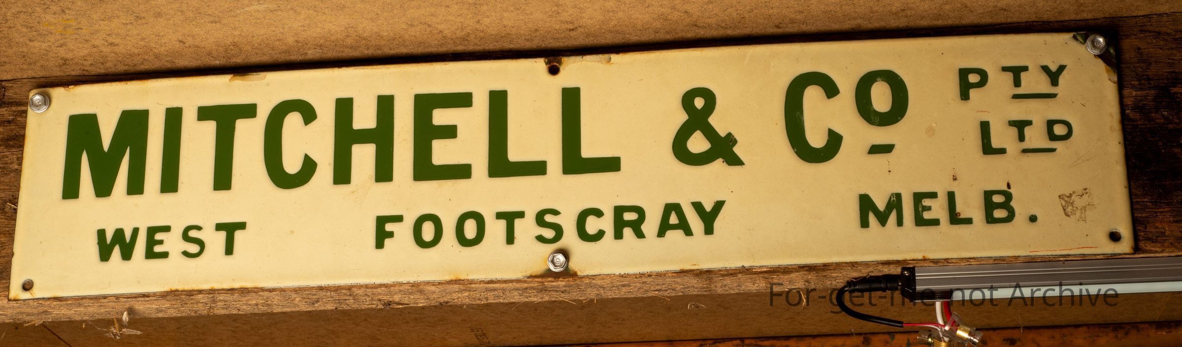 A nickel buggy plate supplied by Pass and Joyce. Coach work by Young of Bromley, probably English origin. 2. Next one is a name plaque from Barooga, New South Wales, in very good order. 3. is an another sign. Beautiful condition from Mitchell and Company, West Foot Square, Melbourne They were brush manufacturers.Collection