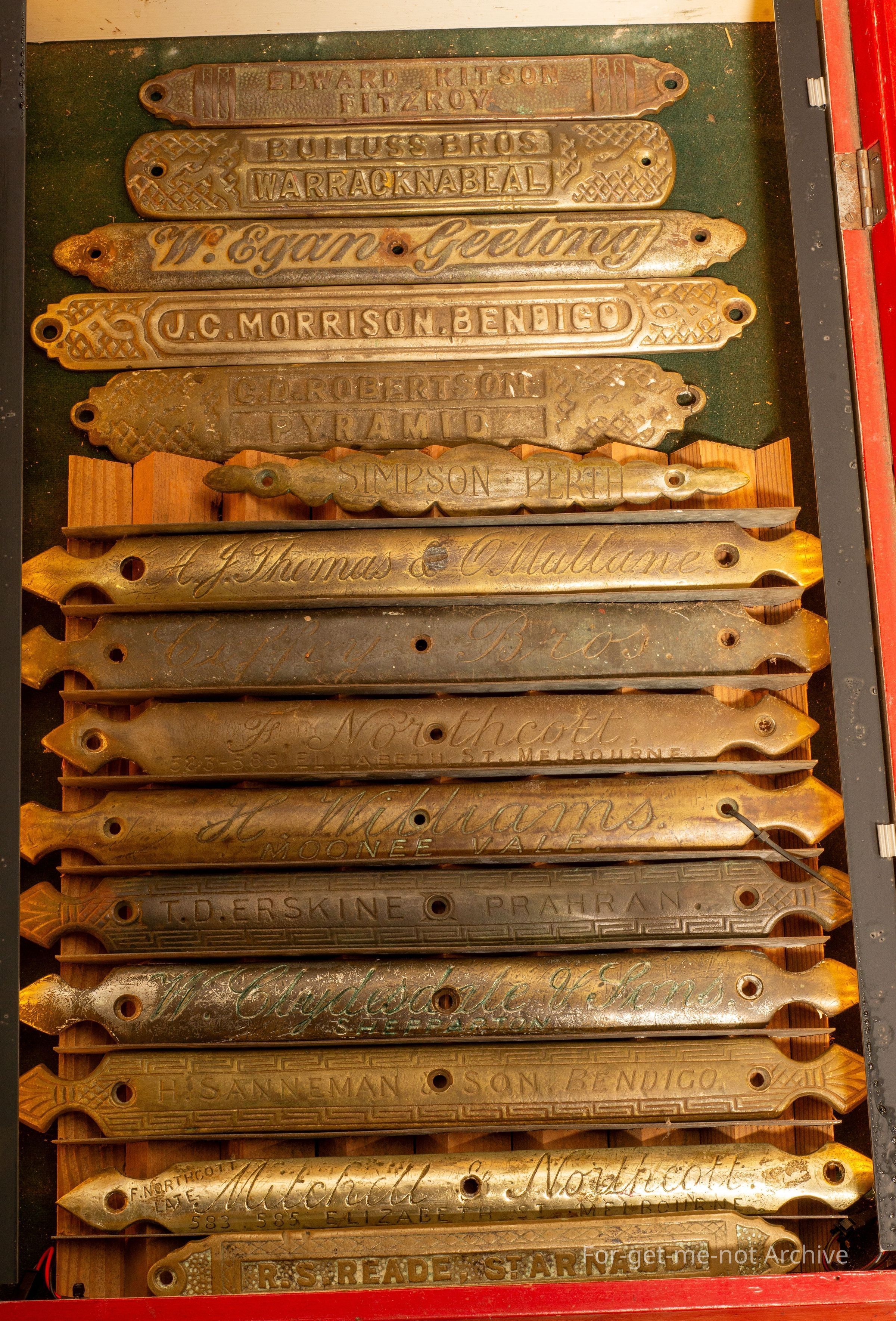 This is a group of 15 buggy plates that were put on the shafts of buggies.
