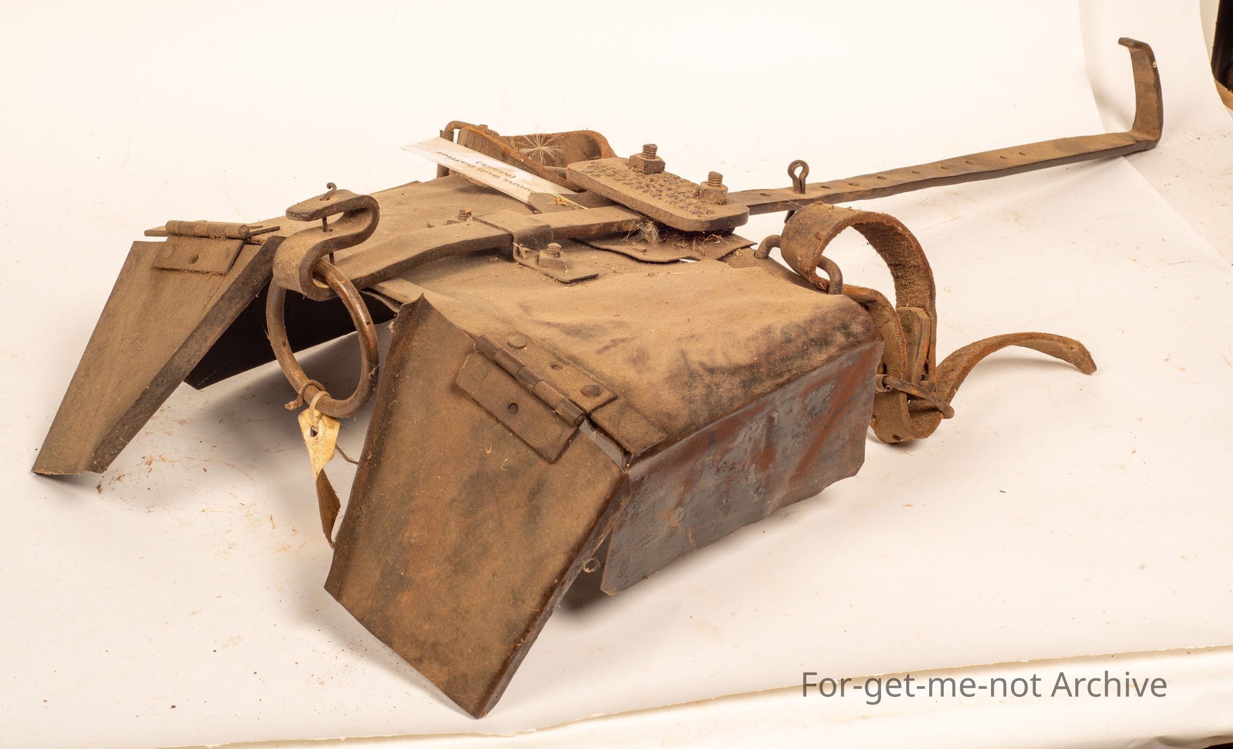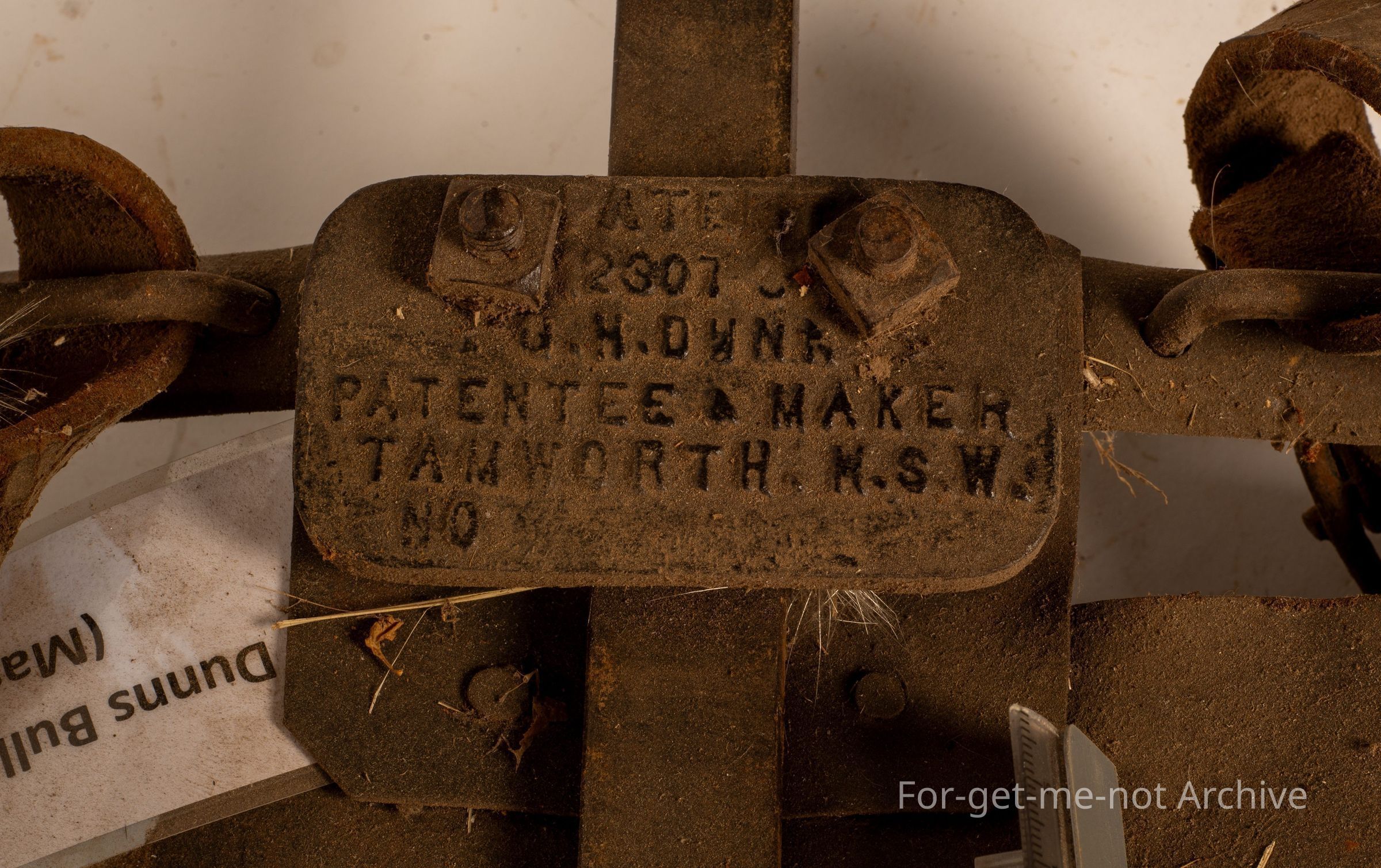 This is a bull, a Fence guard. This went on the head of the bull with tin flaps to cover the eyes. They were made by Dunns Engineering in Tamworth, New South Wales. This one is complete with the maker's plaque, the ring for the bull's nose, very good order, quite a rare thing.Collection