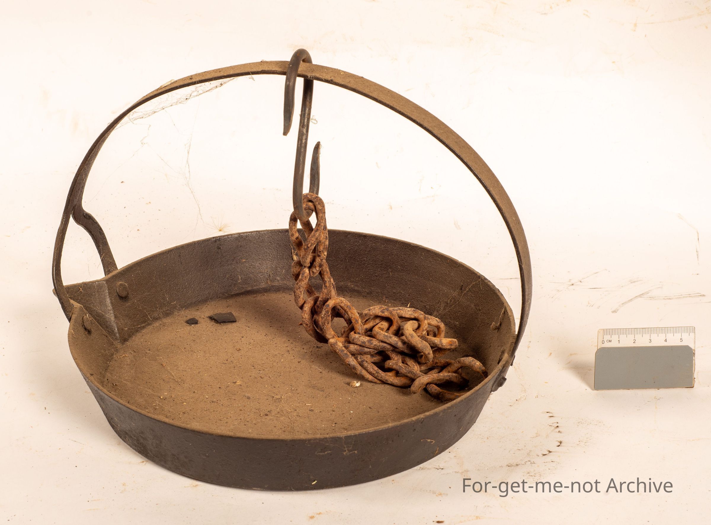 A core on it, heavy handle. These would have hung, from a trammel above the fire. Beautiful bit of non tangled chain with it