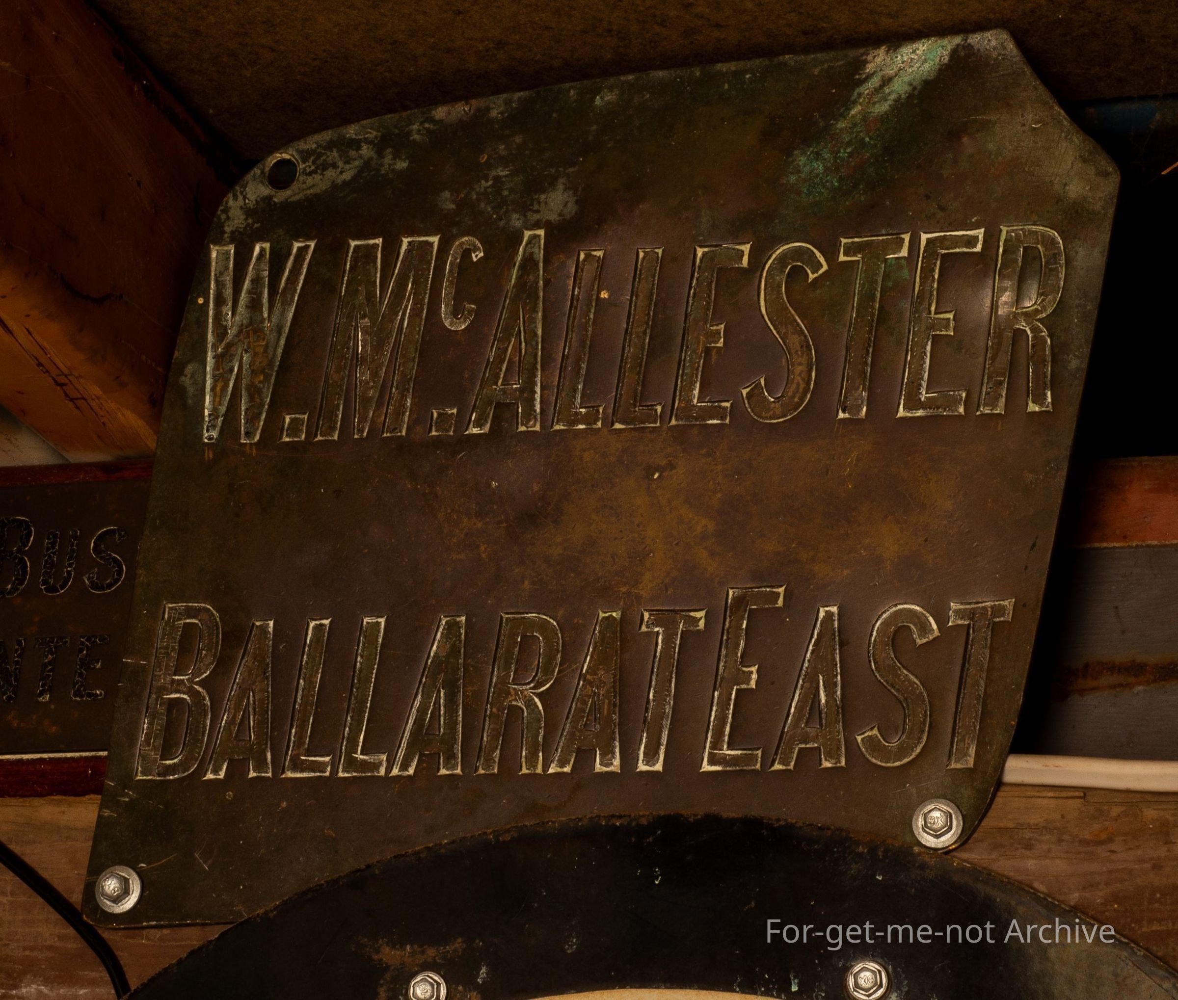 This is a plaque, on copper, advertising the business of W McAllister. who was situated in, the top end of Victoria Street in the early days of Ballarat. He was a general merchant. A rare piece of early Ballarat history.Collection