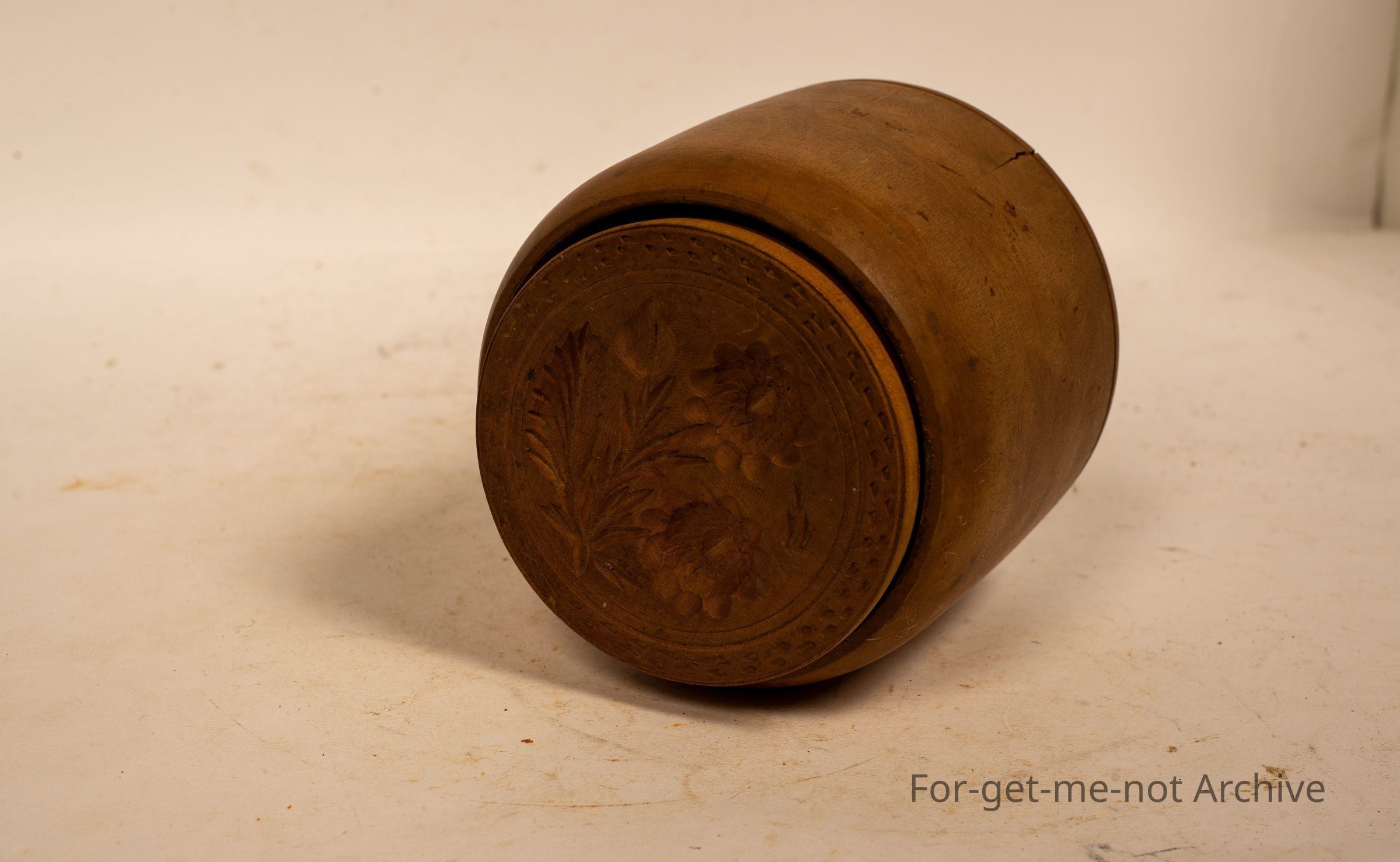 is a wooden butter press. This is a circular one. You see 10 square ones to 1 circular one. A lovely thing.