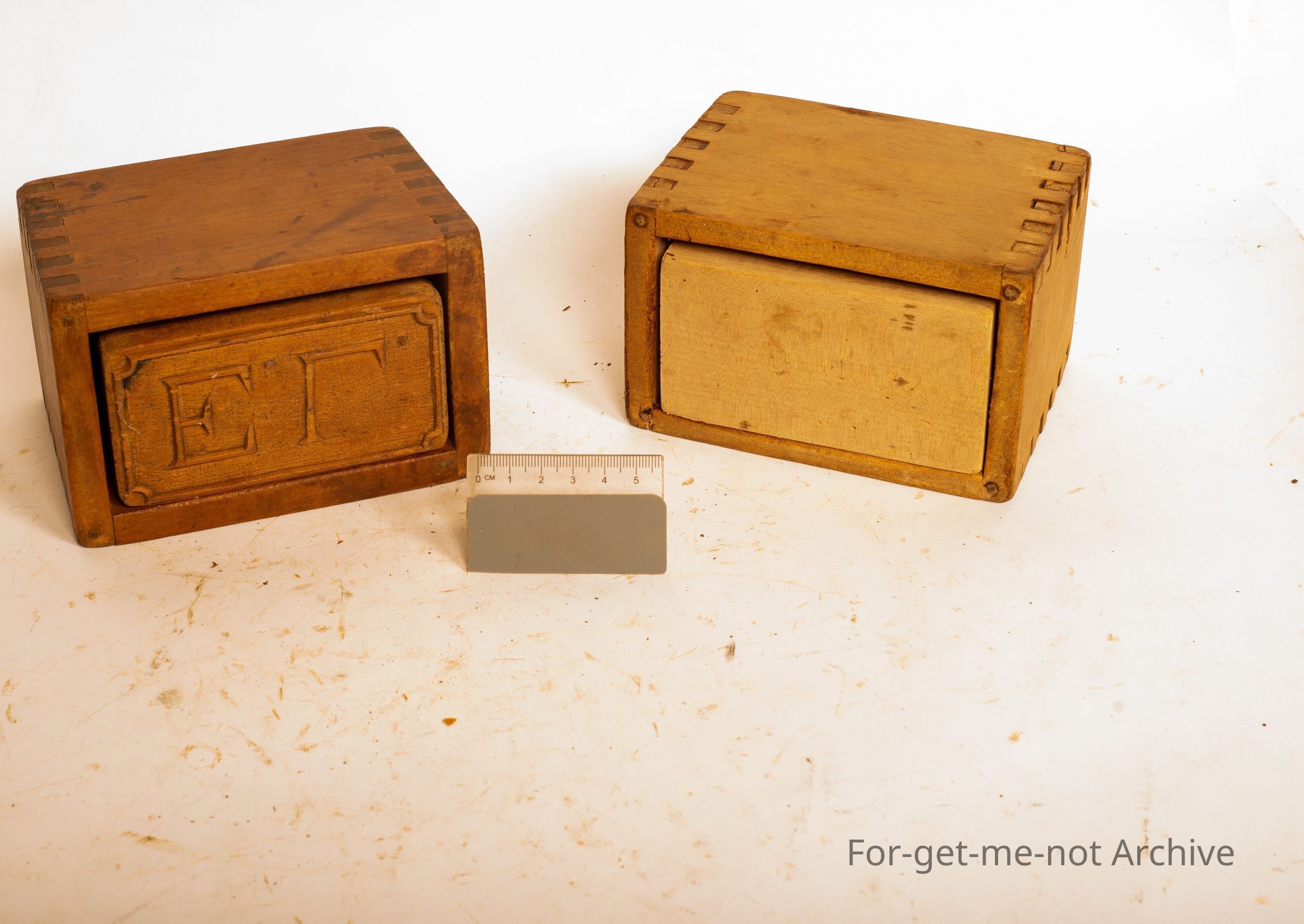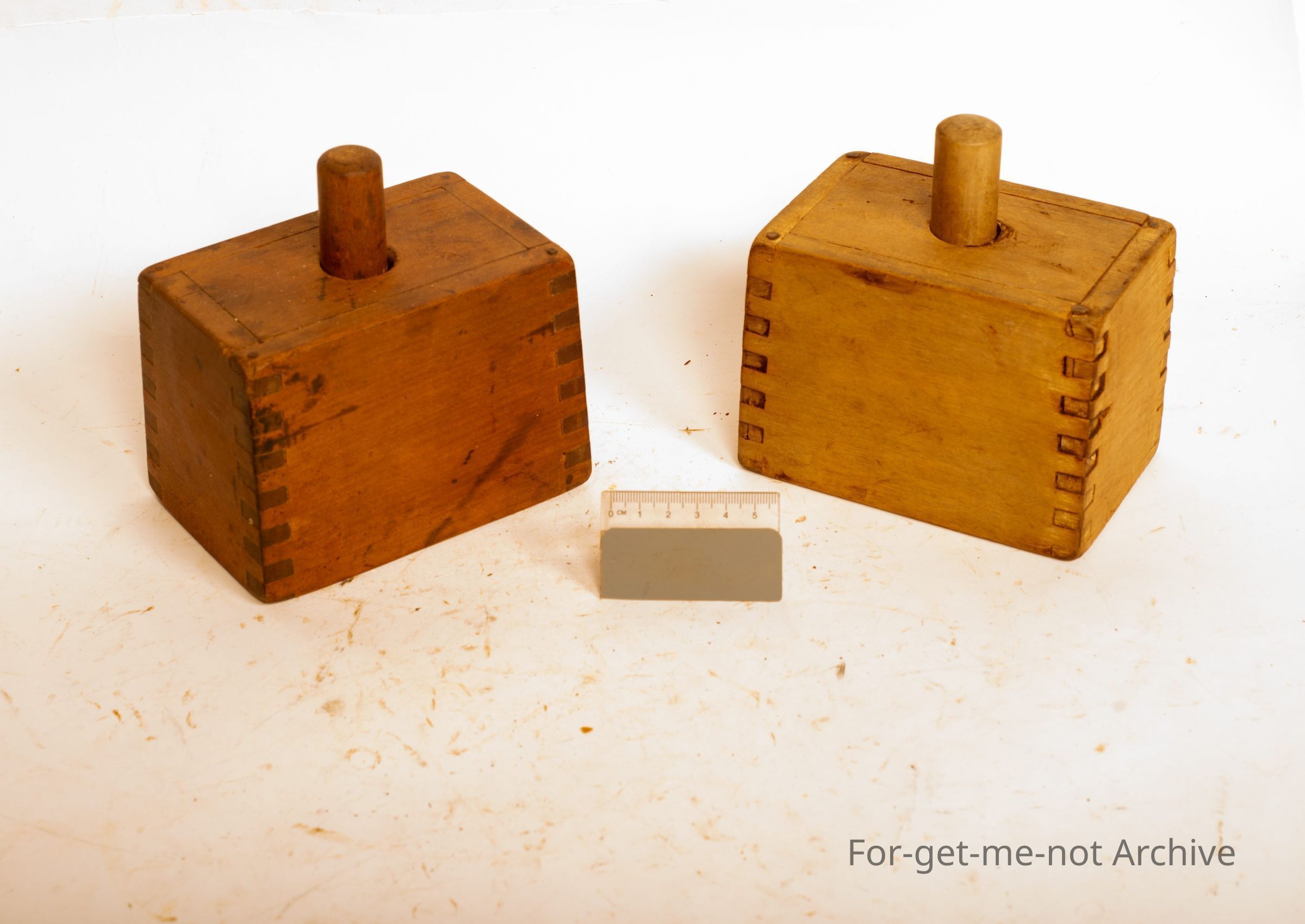 These are 2 butter presses, made of wood. Rectangular ones, all dovetailed. Beautiful condition. Both in the same good condition,
