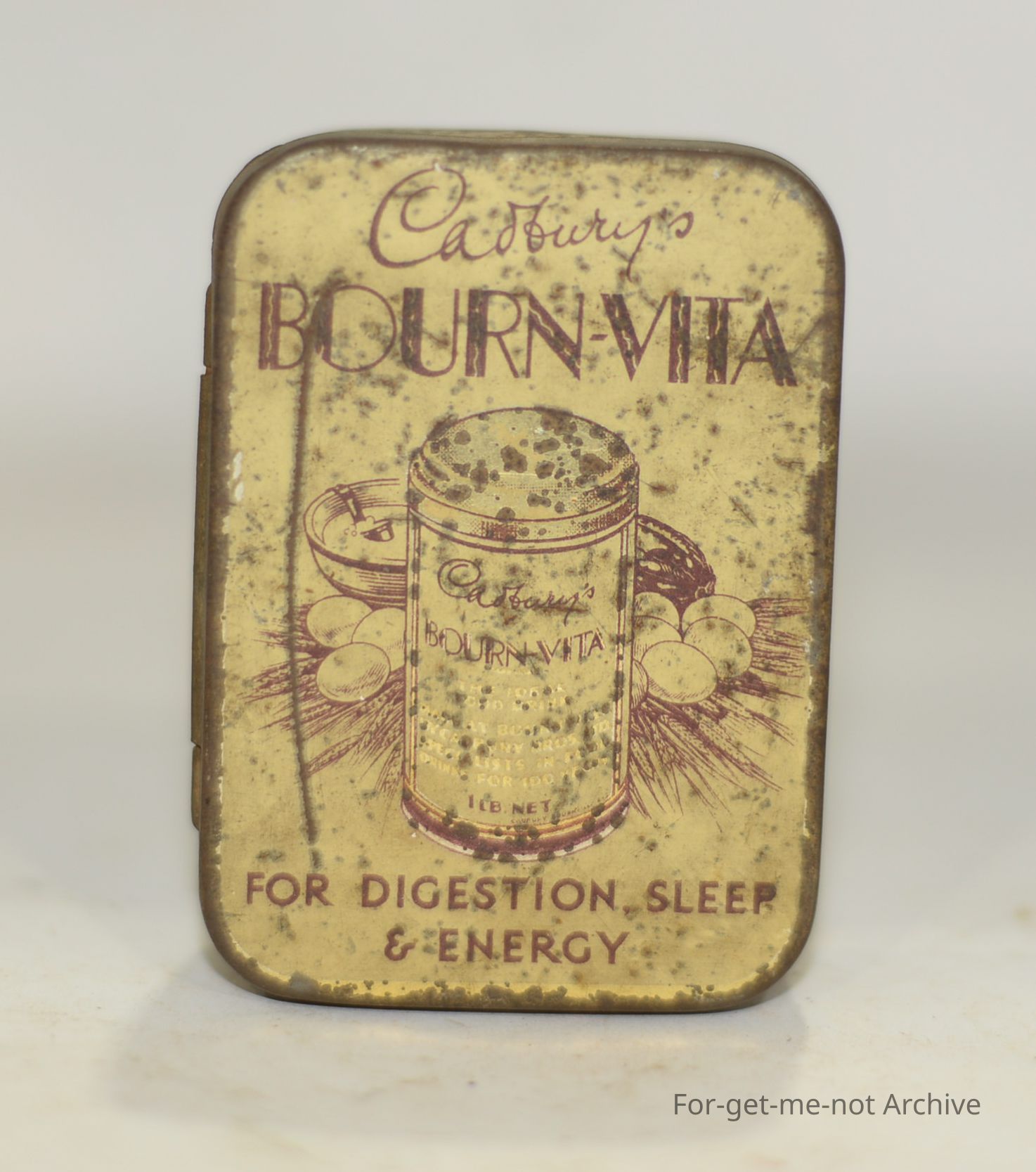 Cadbury's Bourn-vita for digestion Sleep and Energy. Good possibility it’s a sample tin