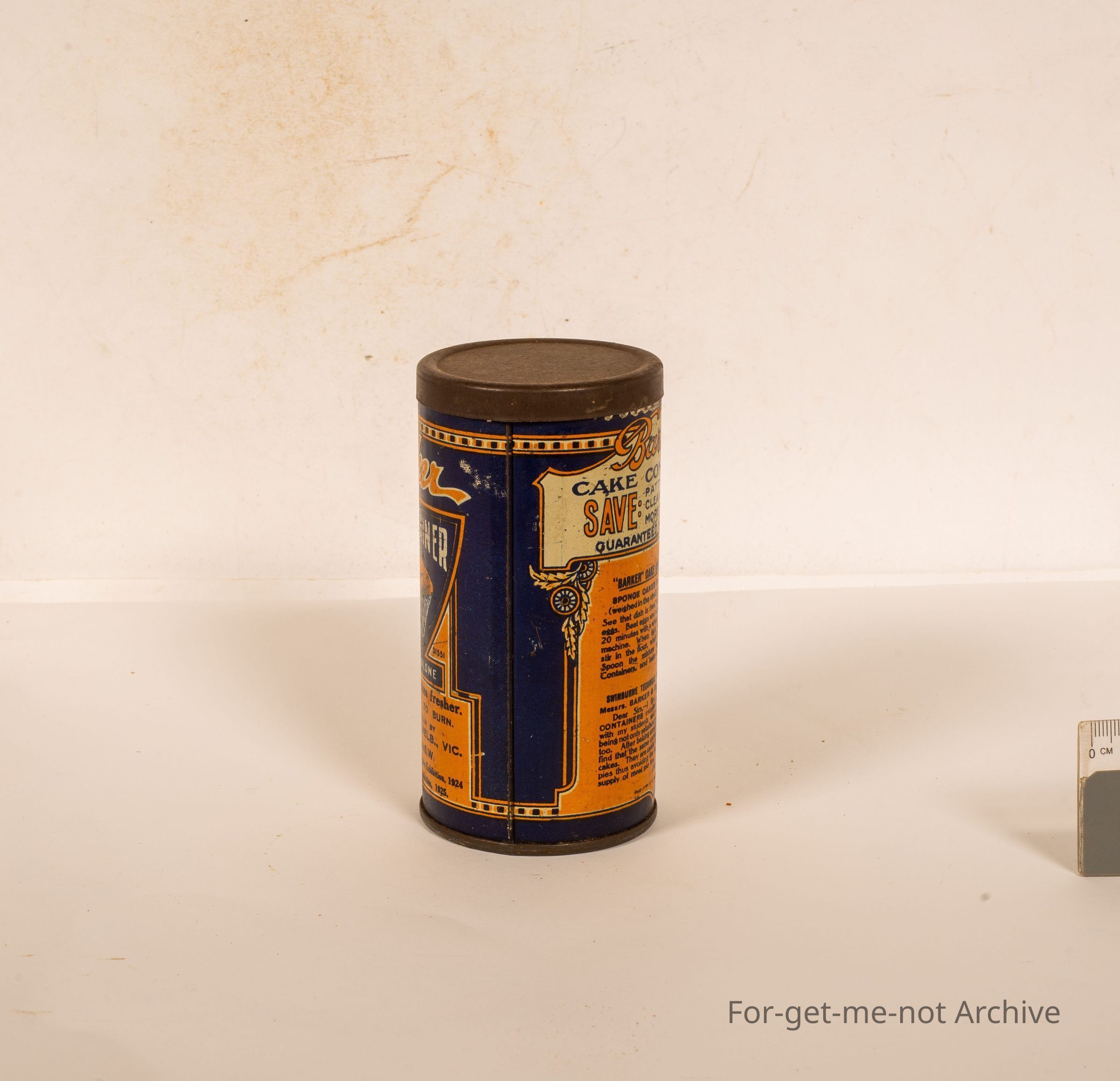 This is a tin, of cake containers, from Barker. This is, Barker and Co Melbourne, Sydney. This is in beautiful condition. The graphics are wonderful. Probably early, not at all common,Collection