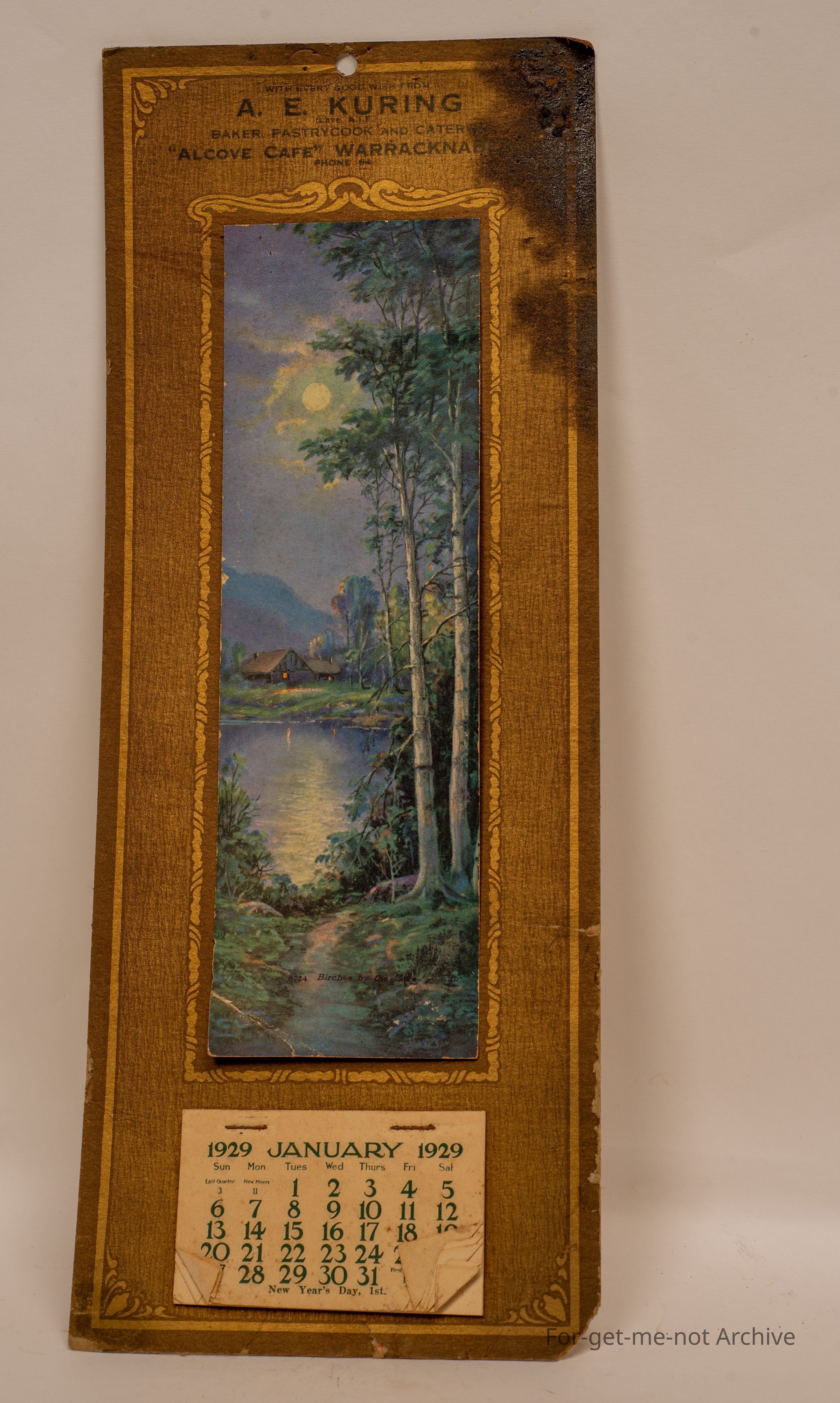 Calendar, 1929 from A E Kuring, baker pastry cook, catering, Warracknabeal