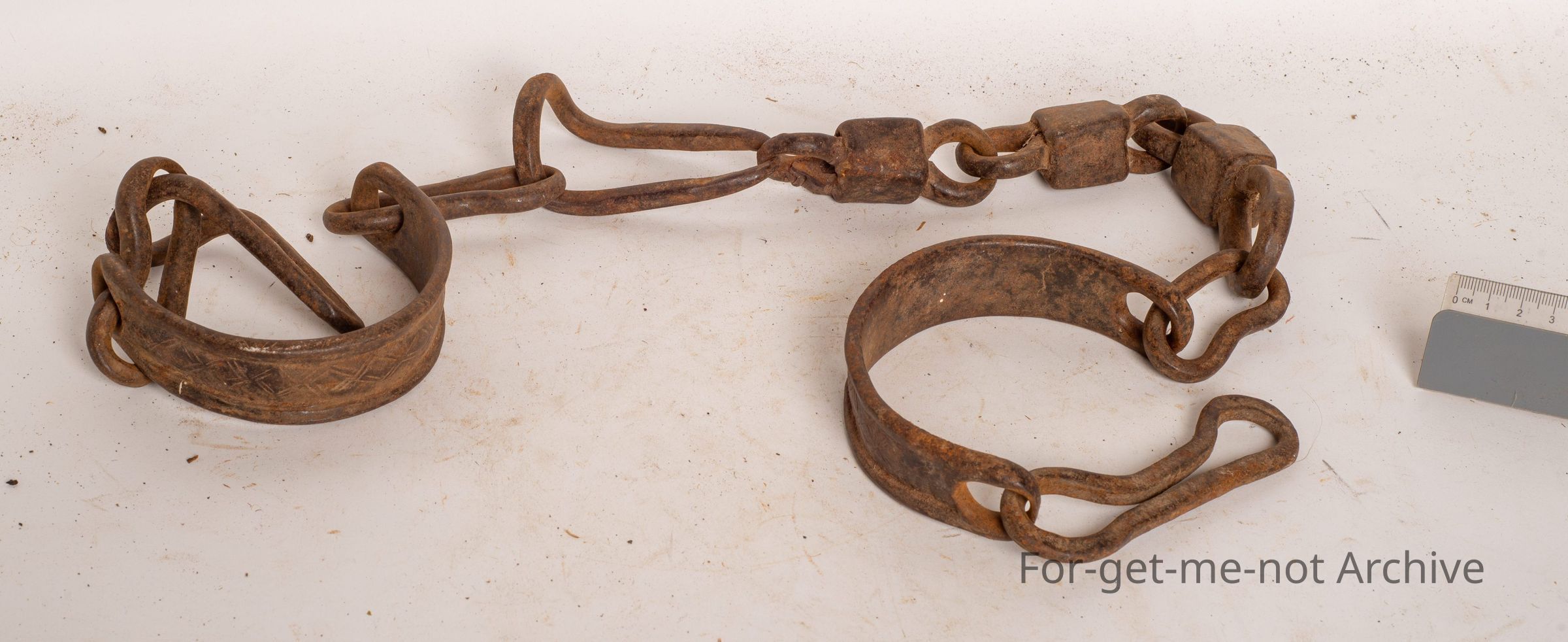This is a pair of iron camel hobbles, an unusual locking system. This is a very lightweight pair, probably for a female, not a bull