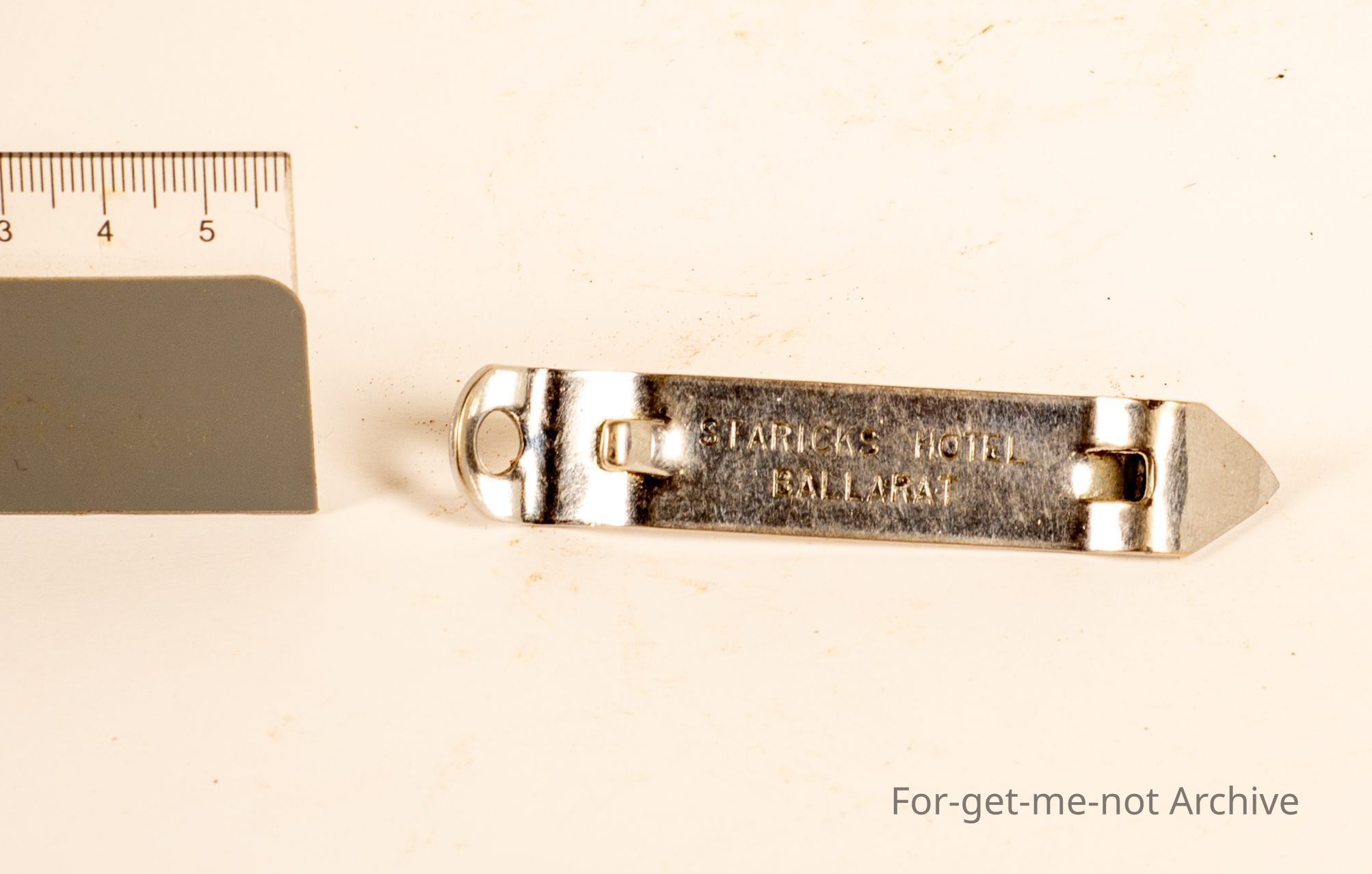 Metal crown seal and tin beer can opener of advertising Starrick's Hotel at Ballarat, which were in Mair St cnr Lydiard ( Sporting Tavern )