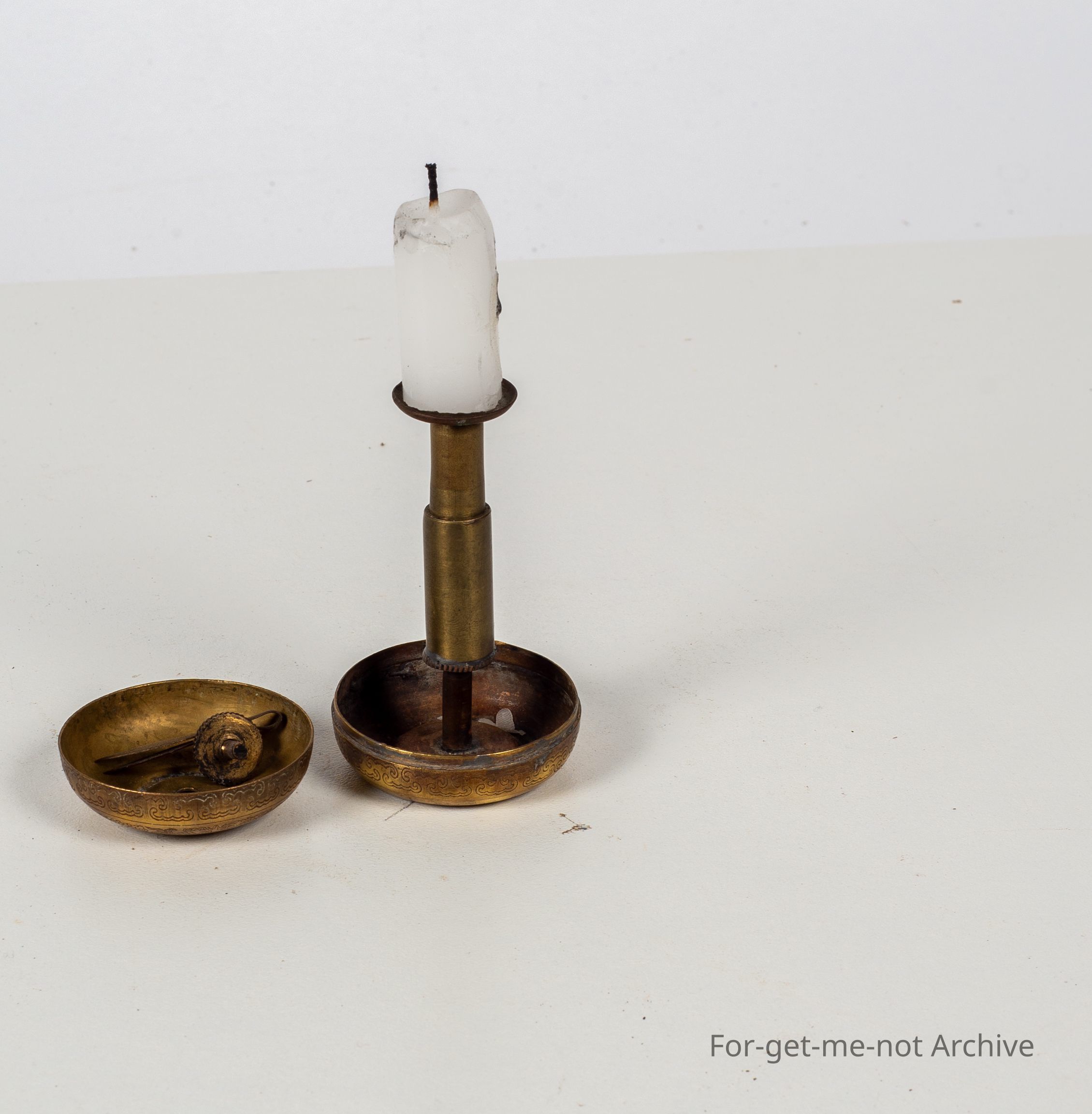 From Japan. Folds up into a small brass container.