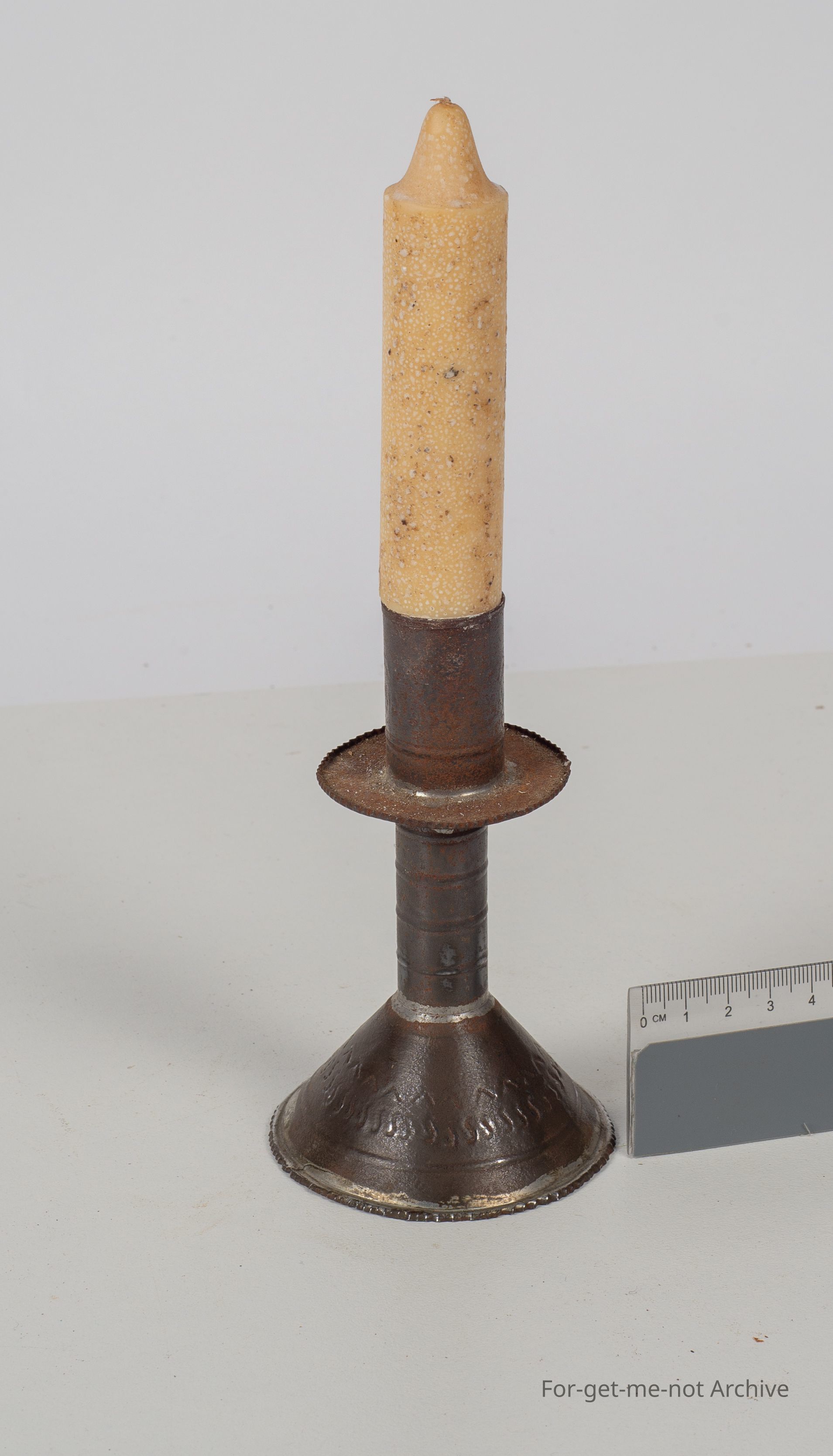 Small tin candle lamp with very old candle