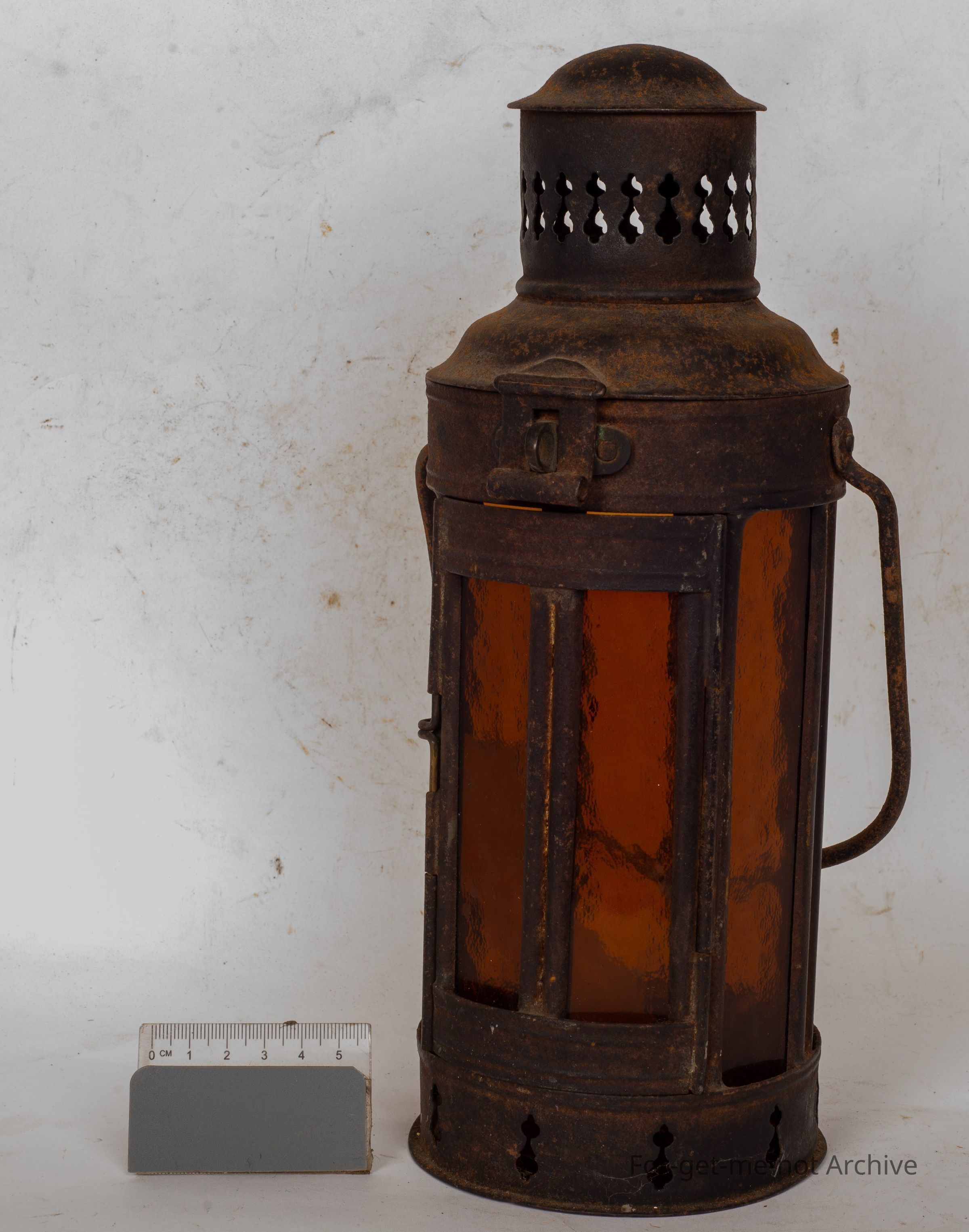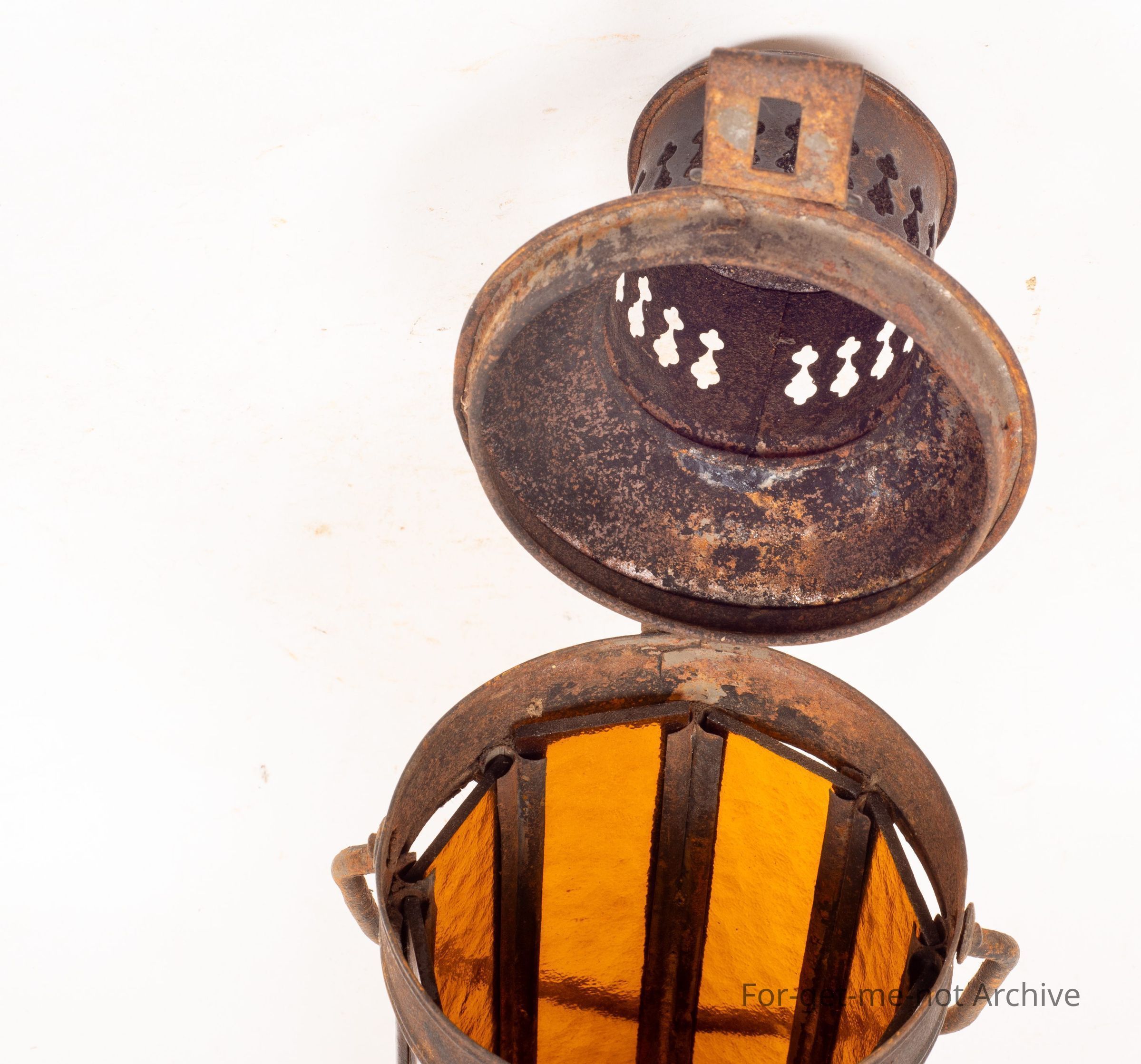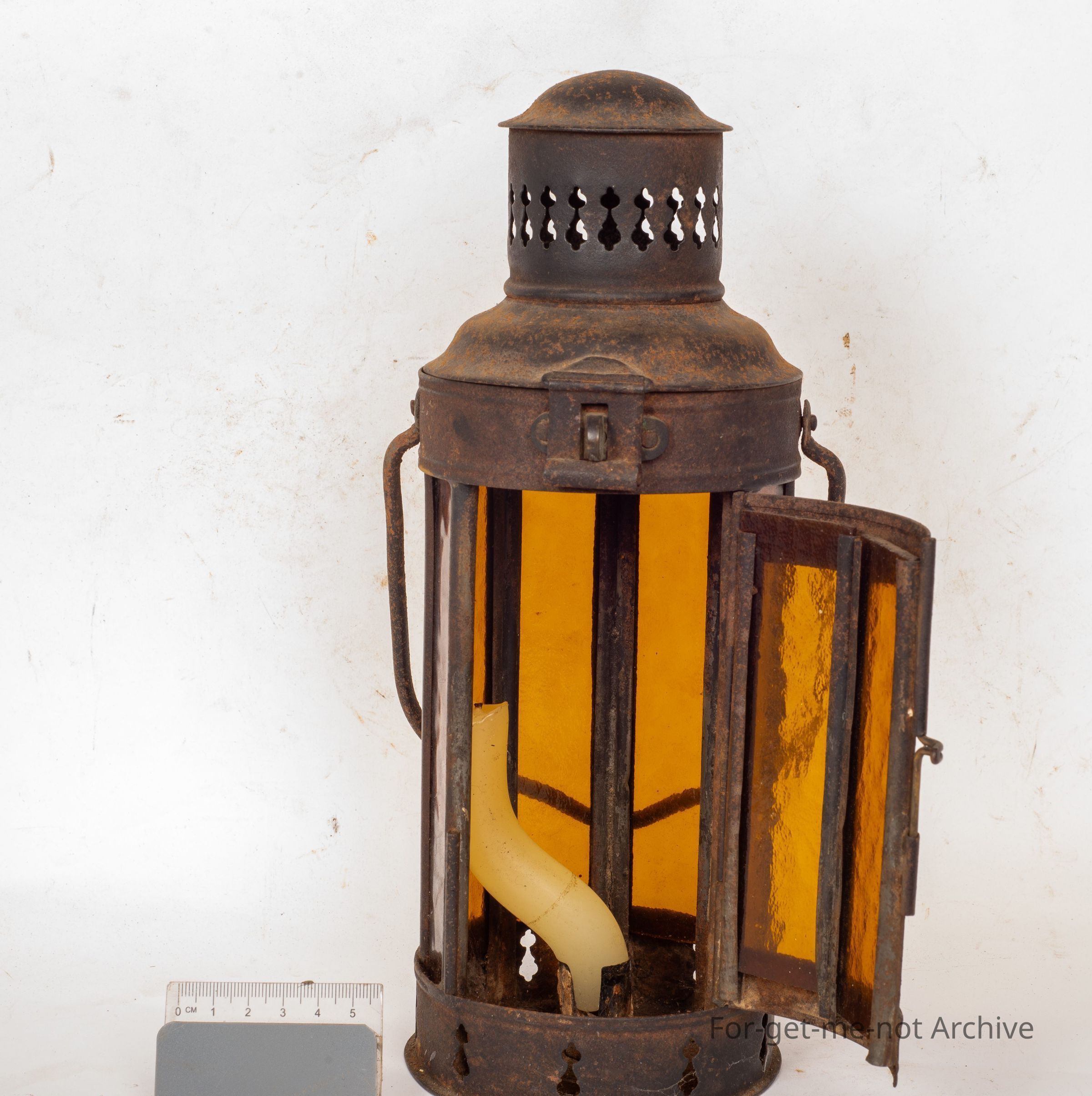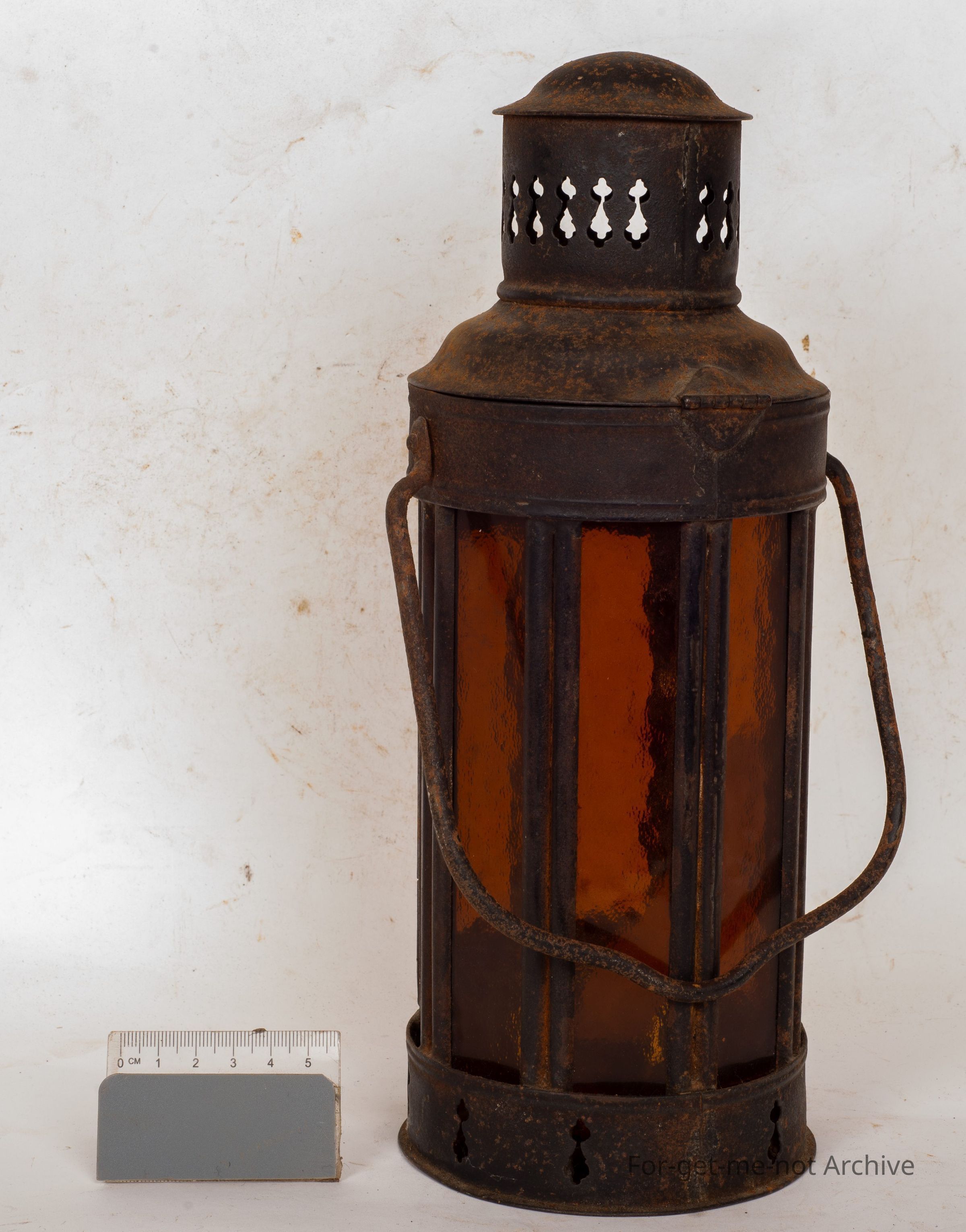 This is a rather a tall, early oil lamp. The whole cylindrical piece is panelled with amber glass, a bit of decorative stuff on the bottom. This would be a candle lit lamp, not fuel. Has candle in it. Nice decorative chimney.Collection