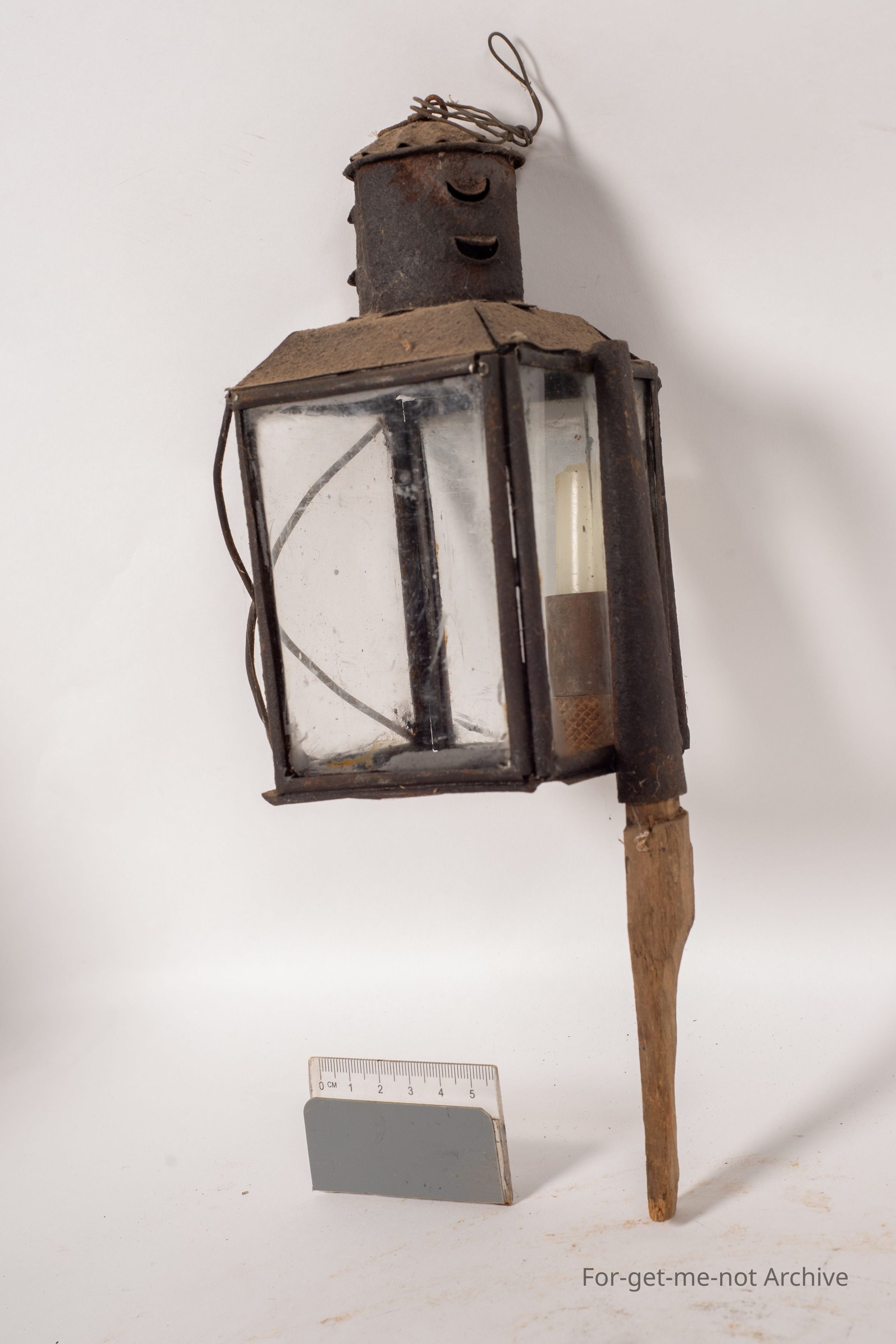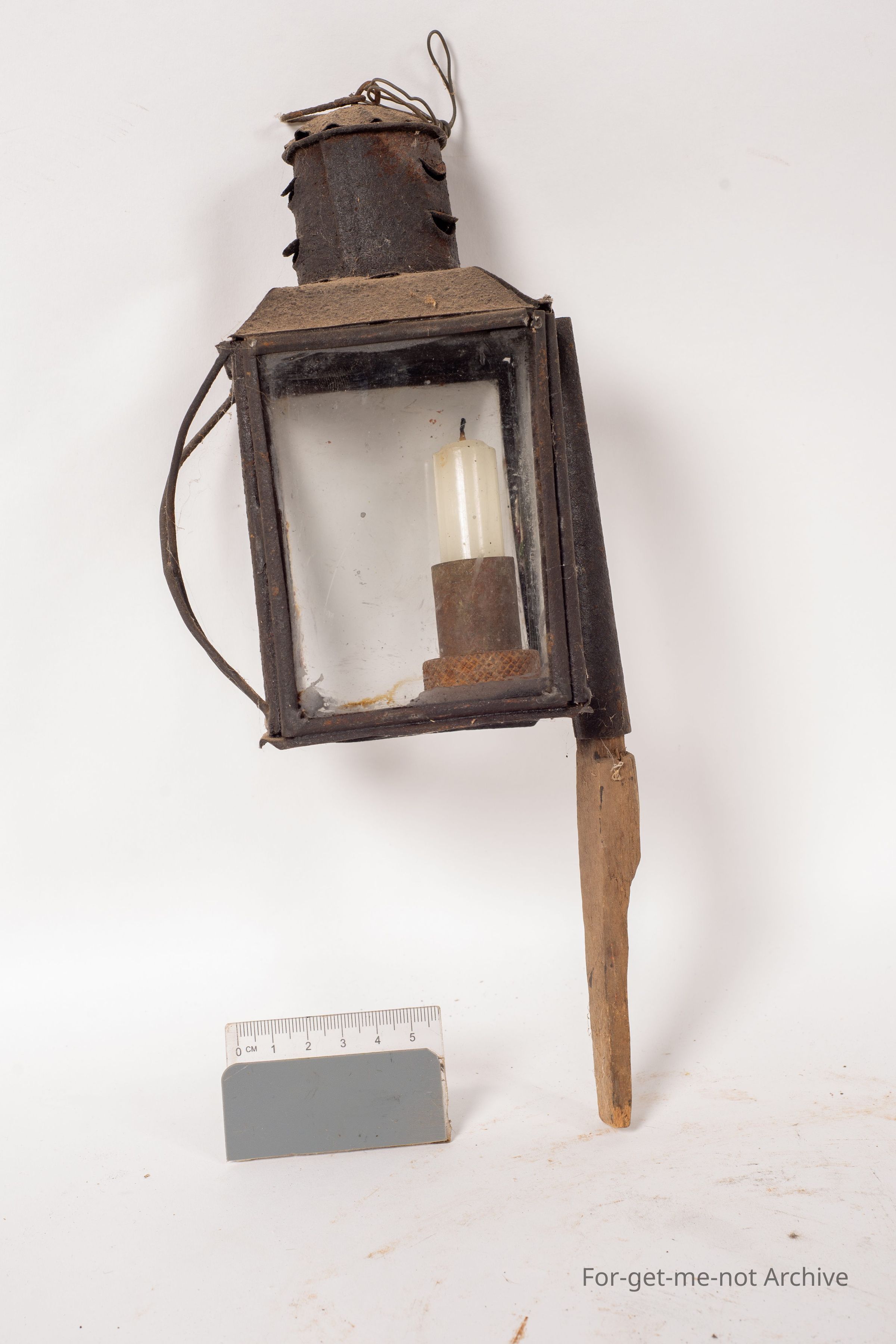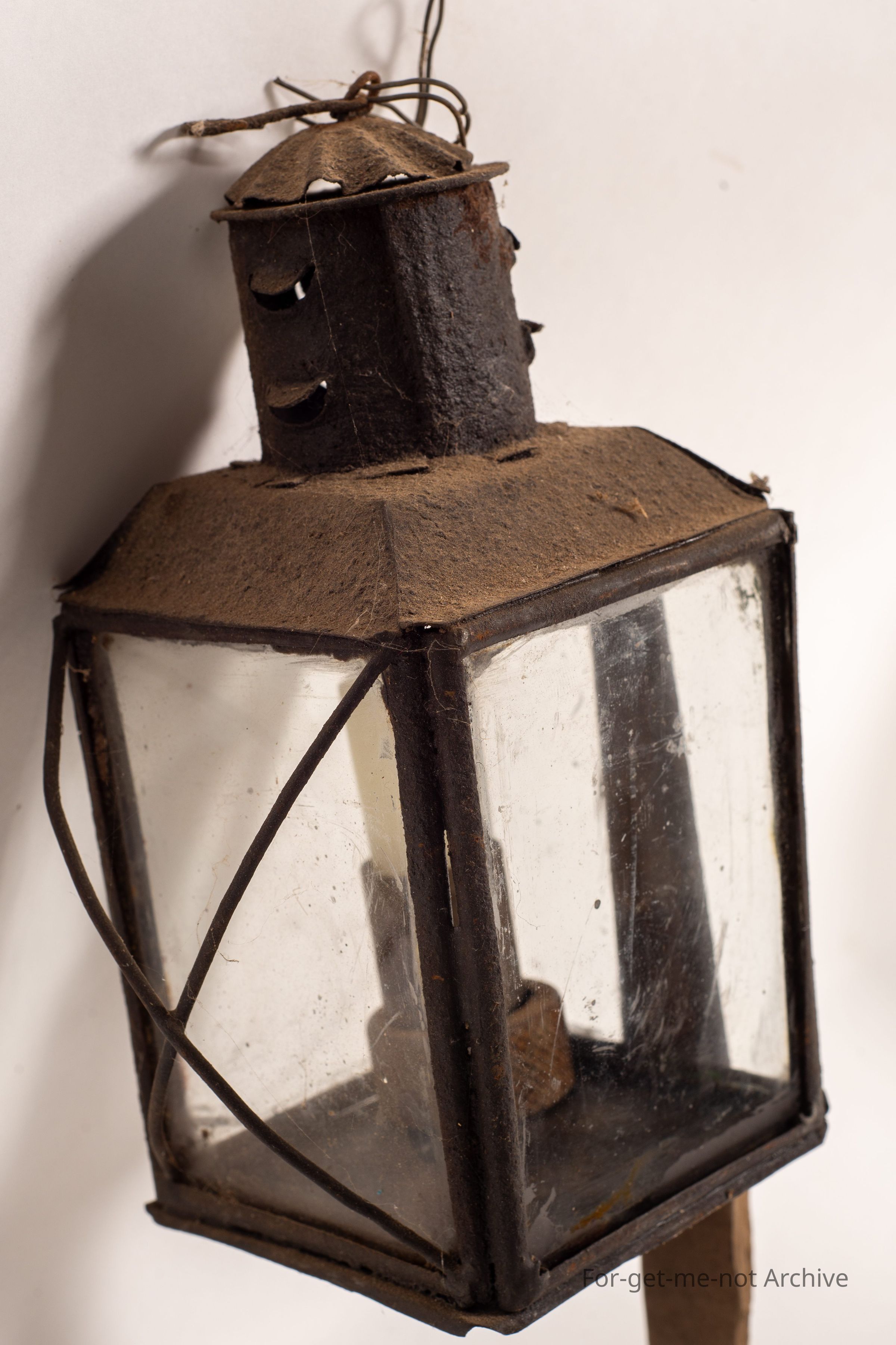 This is a very, very early, lightly made tin candle lamp. Has a hole in the back with a segment of timber to hold it on the wall or wherever. Glass all intact. Beautiful little vent on the top of the chimney.Collection