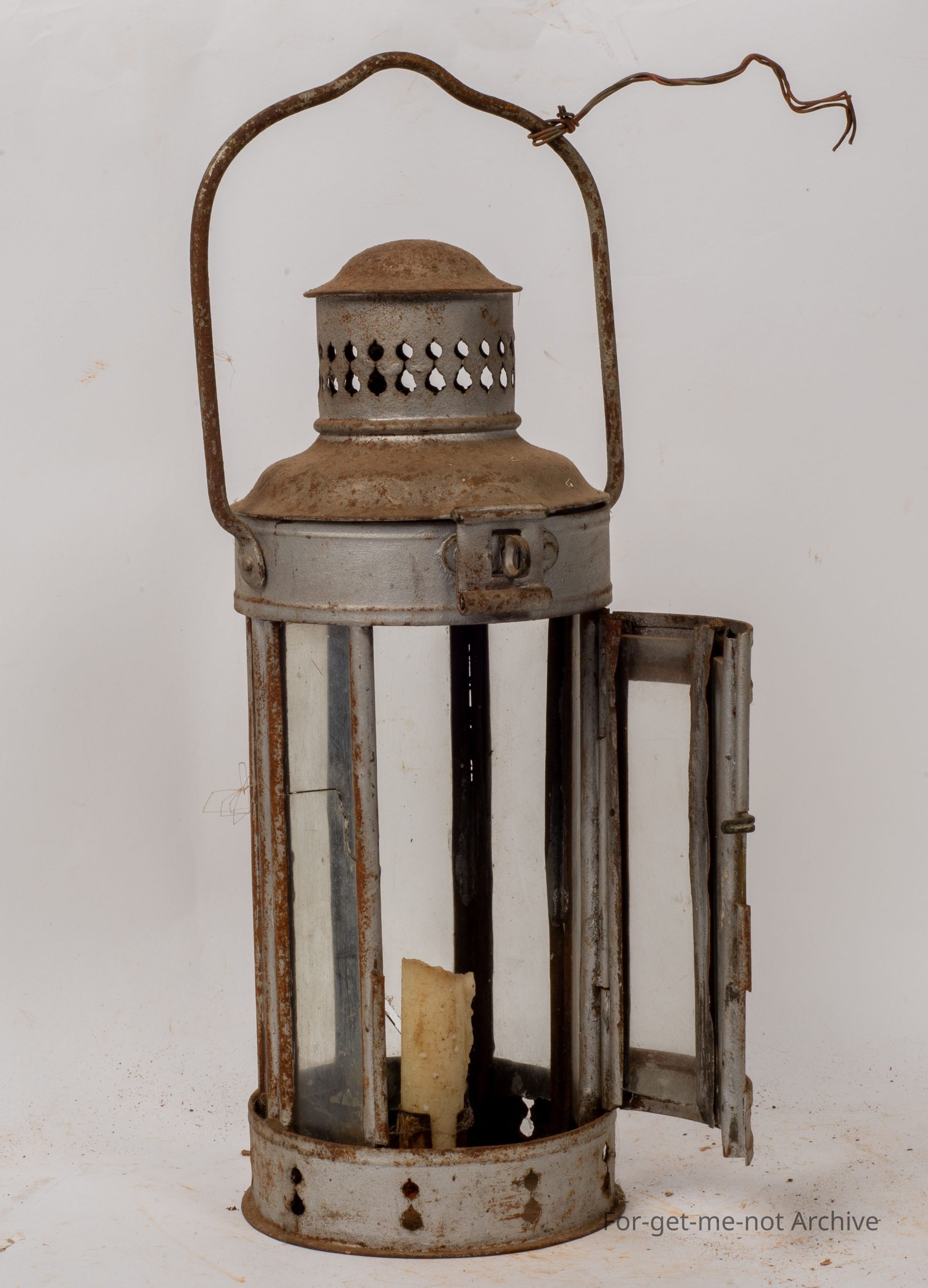 Is an early 1920 30 candle lamp. This this is quite a tall lamp with a vented top. Has a door for lighting or replacing the candle with glass panels that, go right around the lamp. This type of a lamp is usually known as a stable lamp because they didn't throw shadows to spook horses. Beautifully made,Collection
