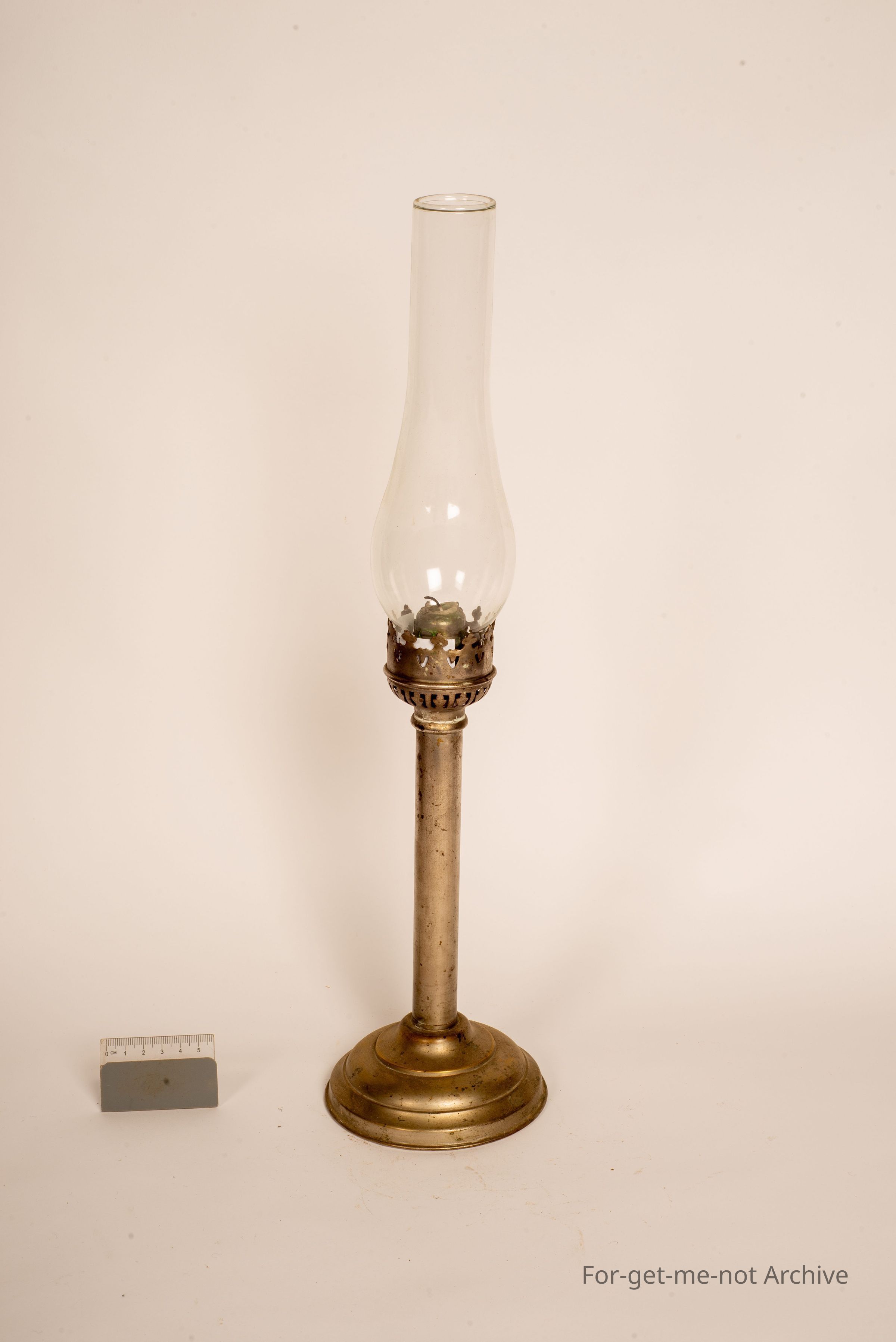 This candle lamp is on a long raised column, spring loaded to keep the candle pushed up, chimney candle all in good working order.