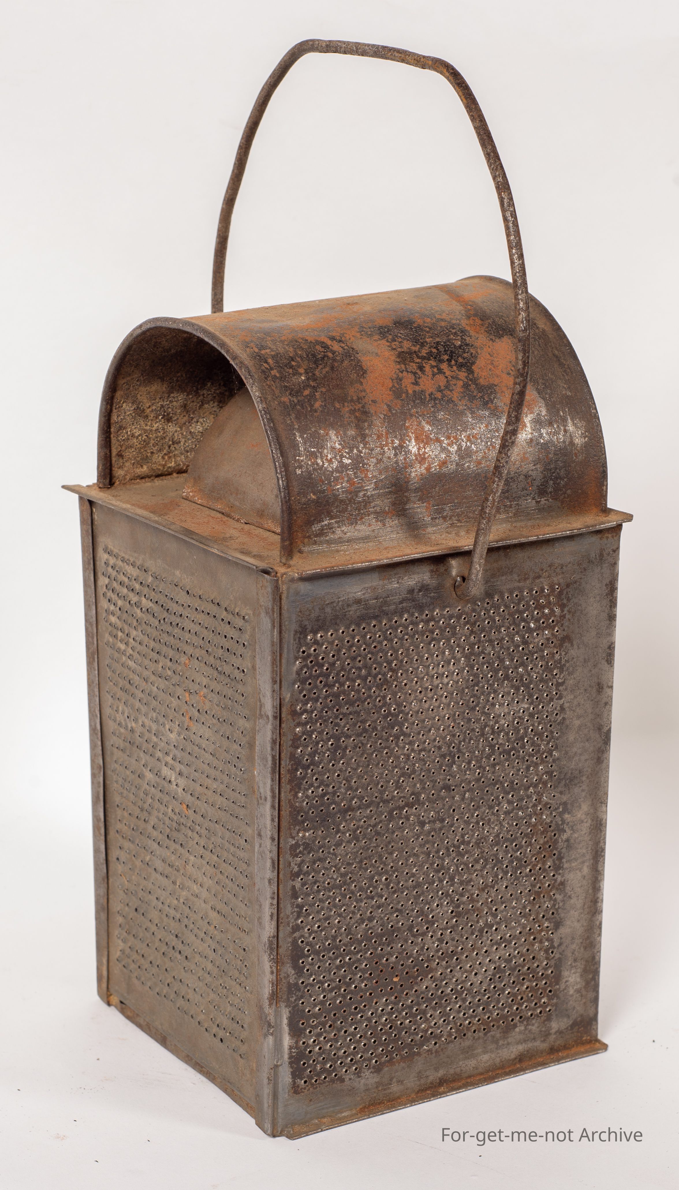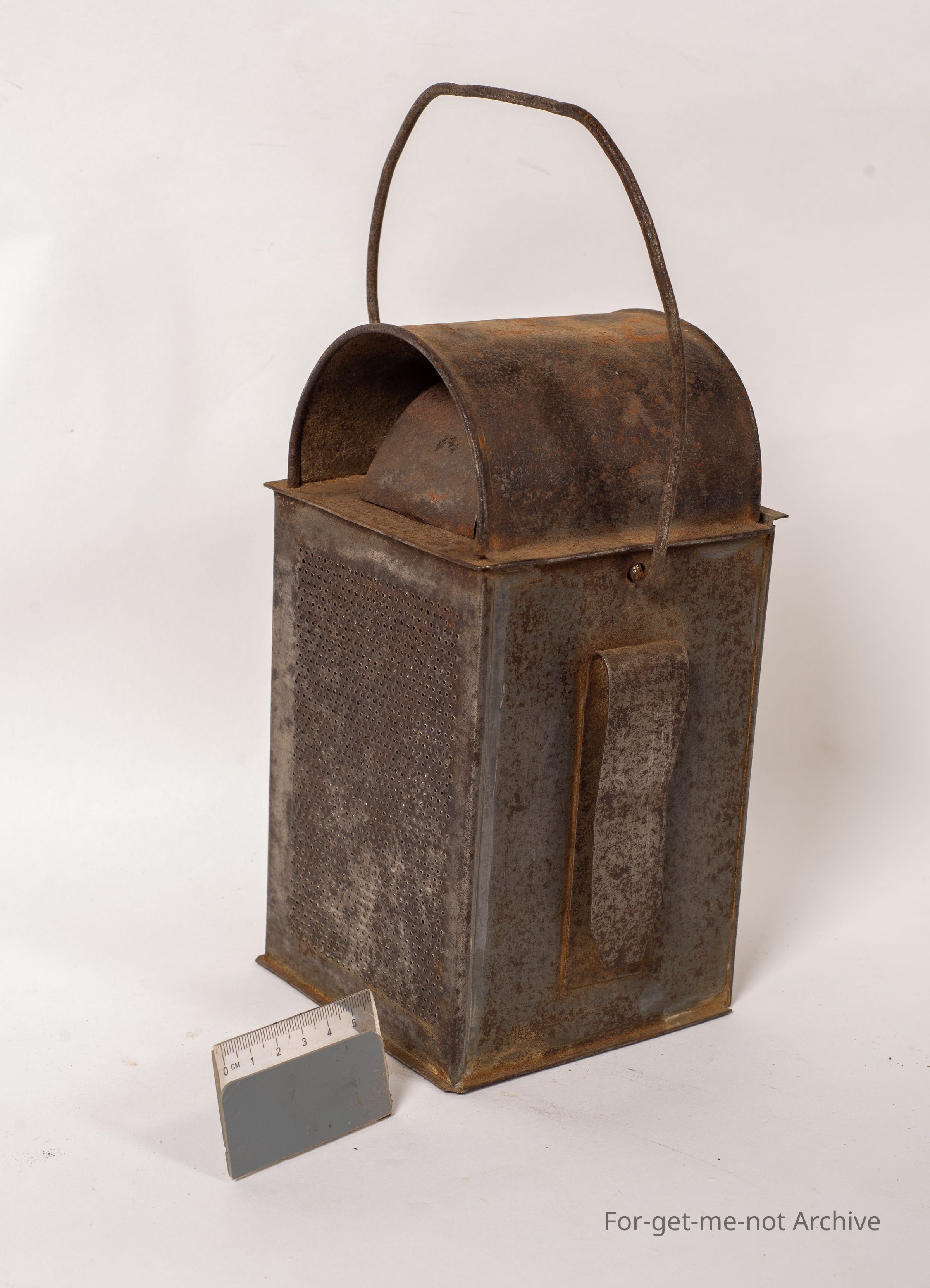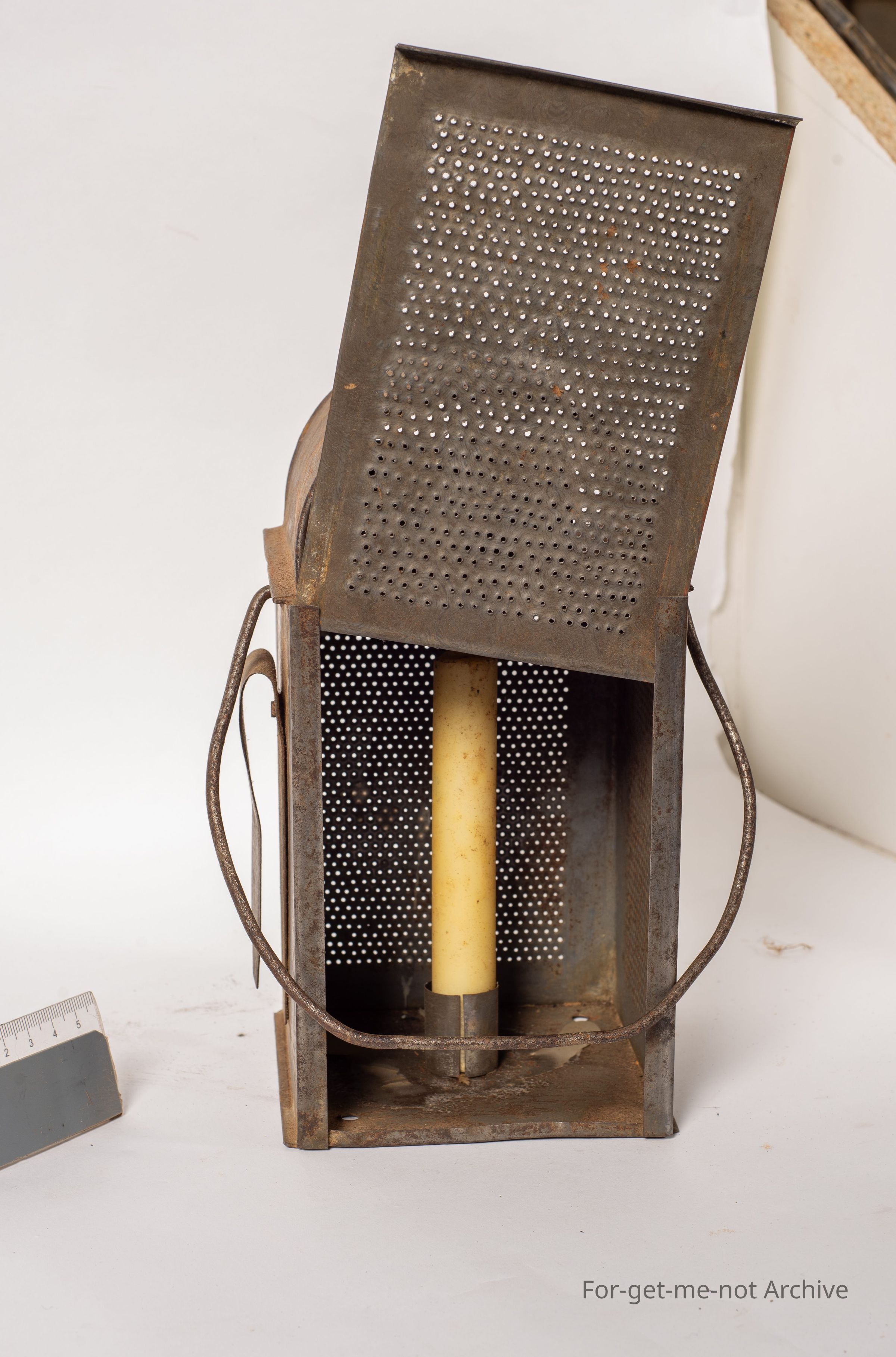 This is very lightly built burner with perforated sides. No glass, handle lit. Has a slider on the back, so it fits, on a wall or something. Bit of a mystery about this one.